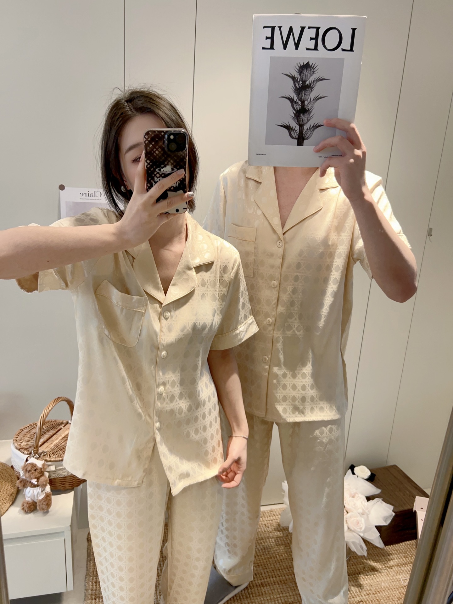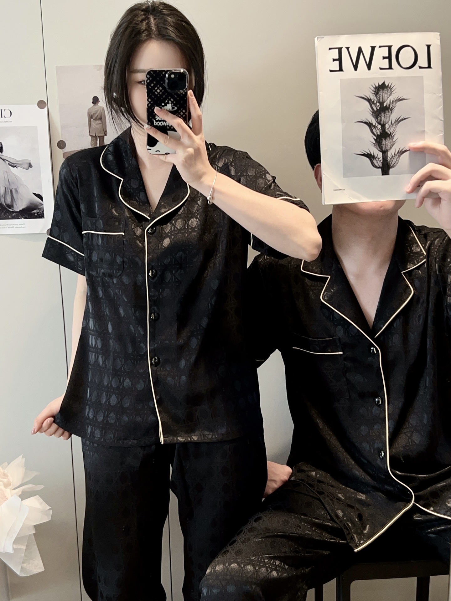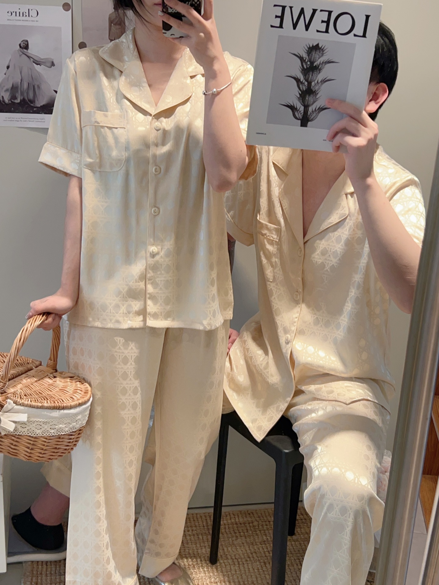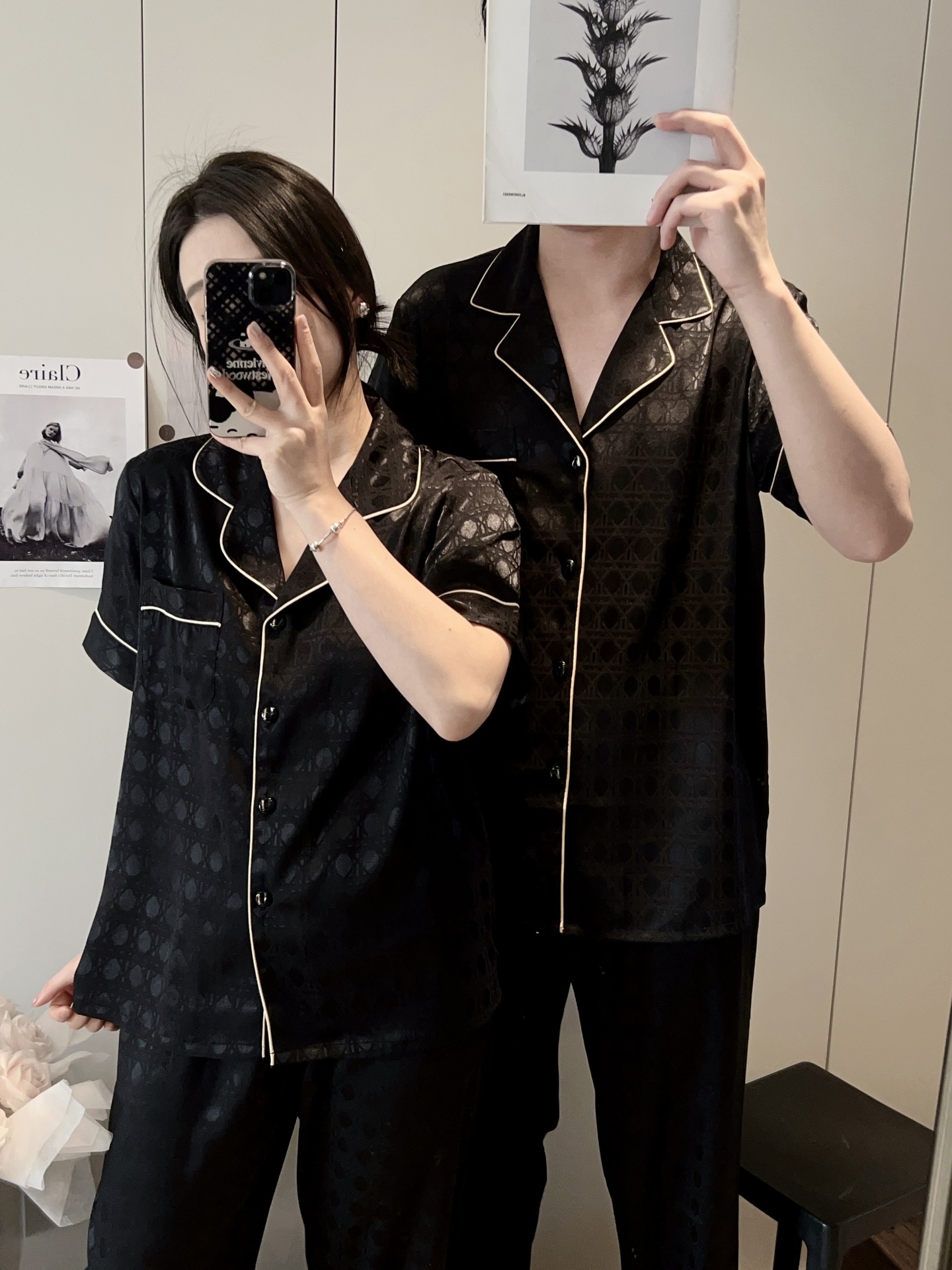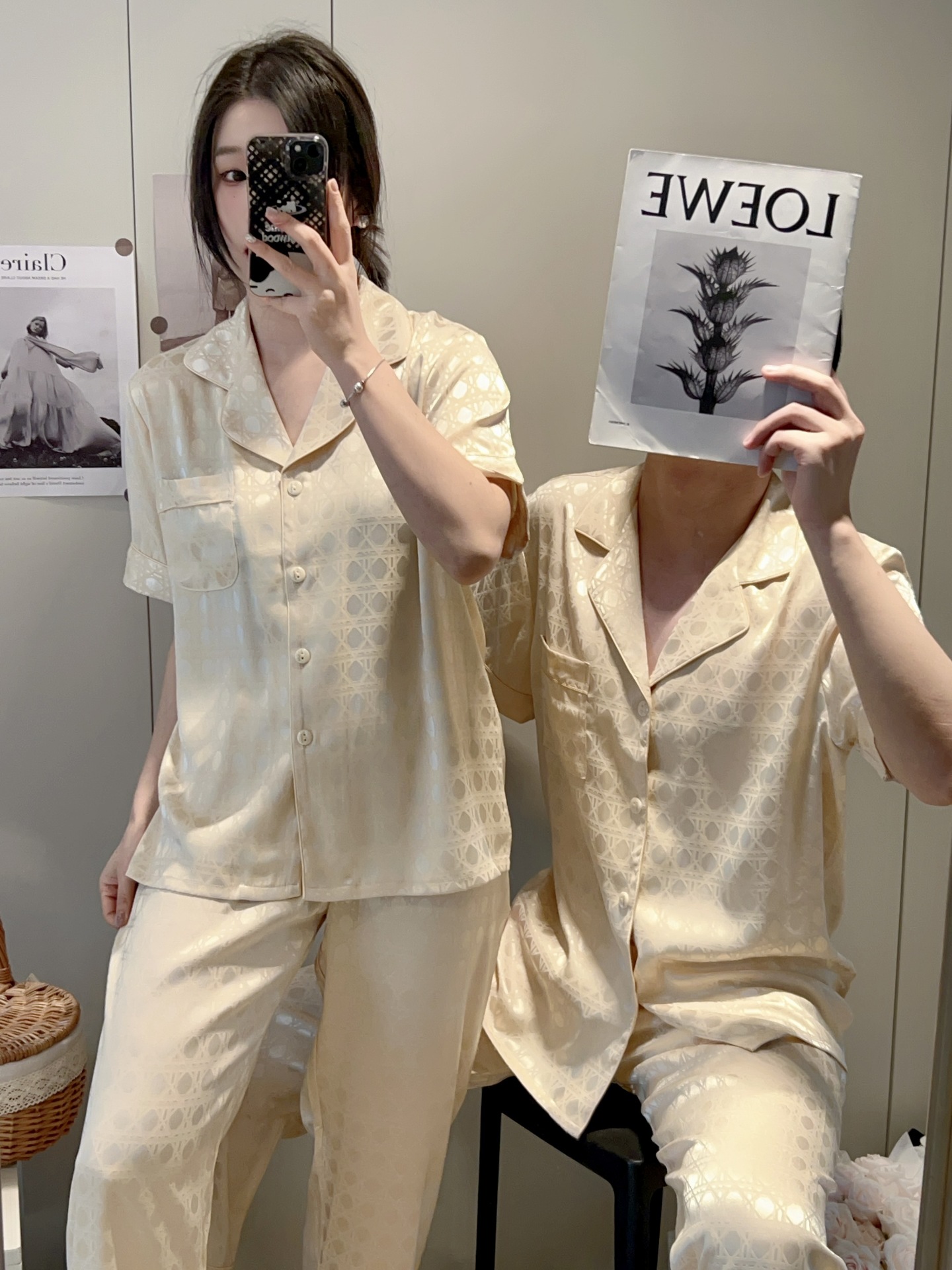 [커플] 한국 캐주얼 헐렁한 남자 플러스 사이즈 반팔 눈 비단 집 옷 세트 여성 부부 생활 년스토어 가기
