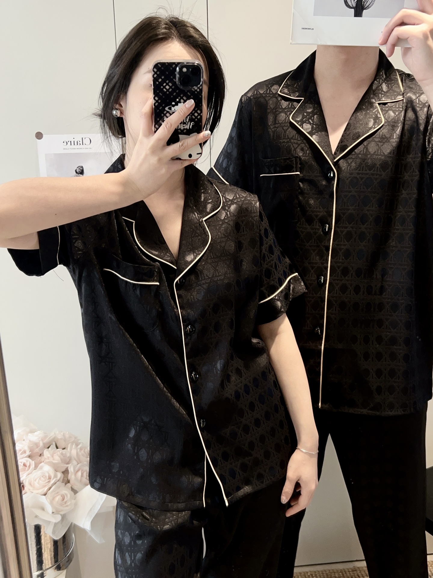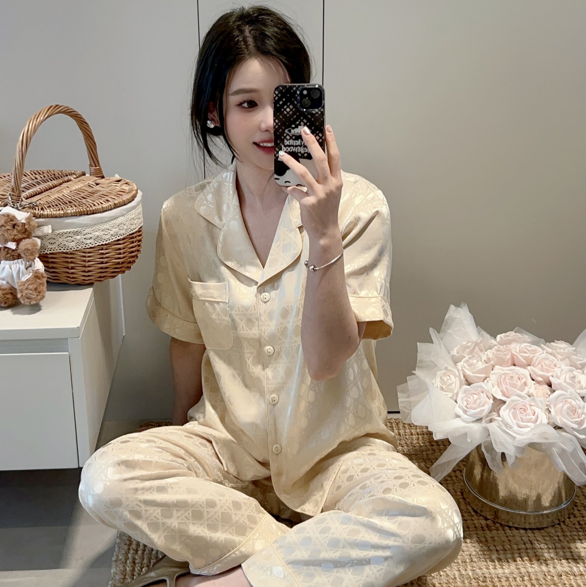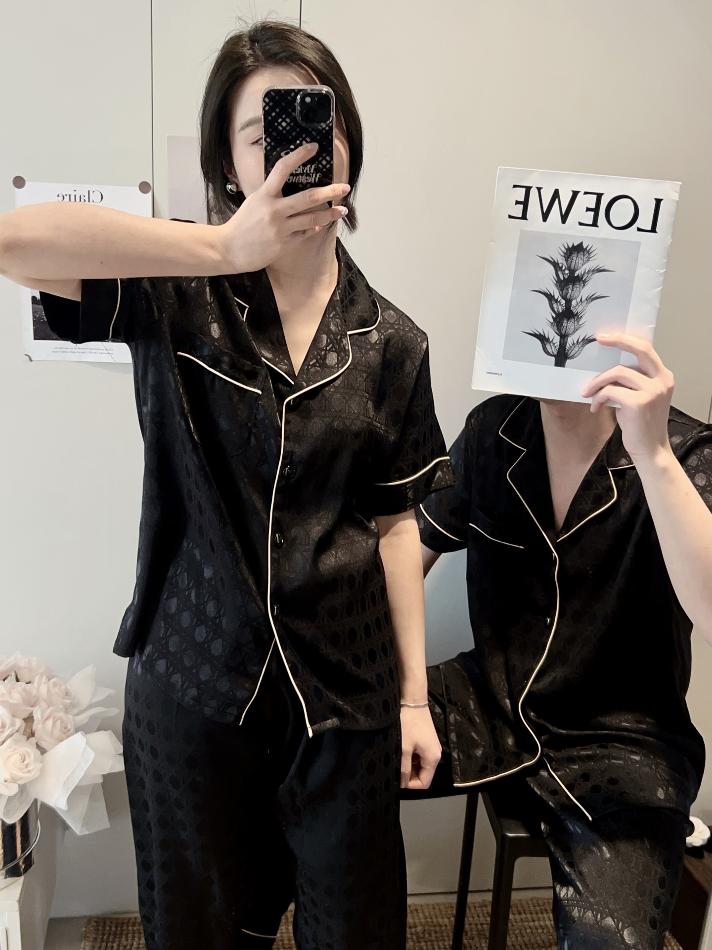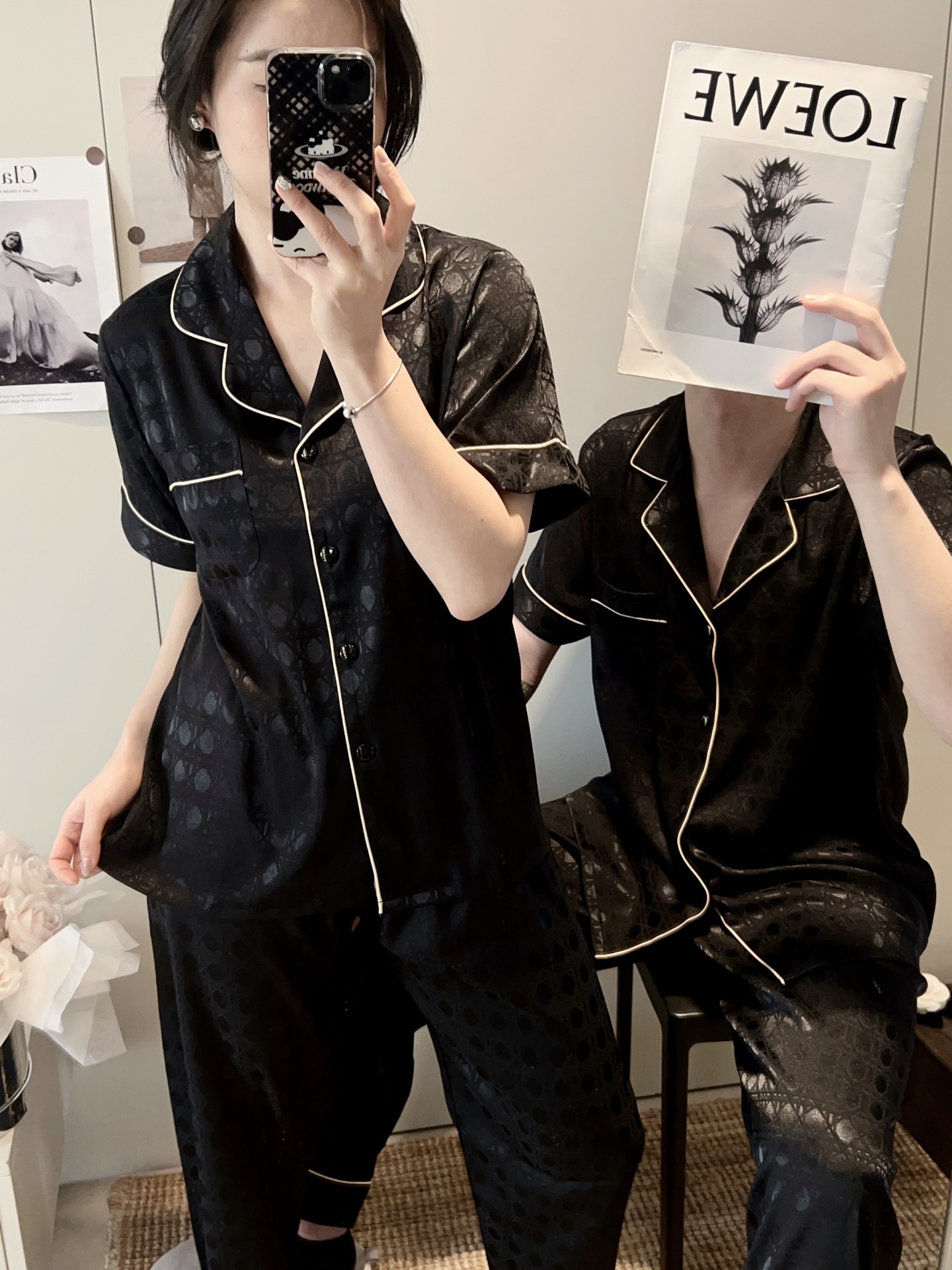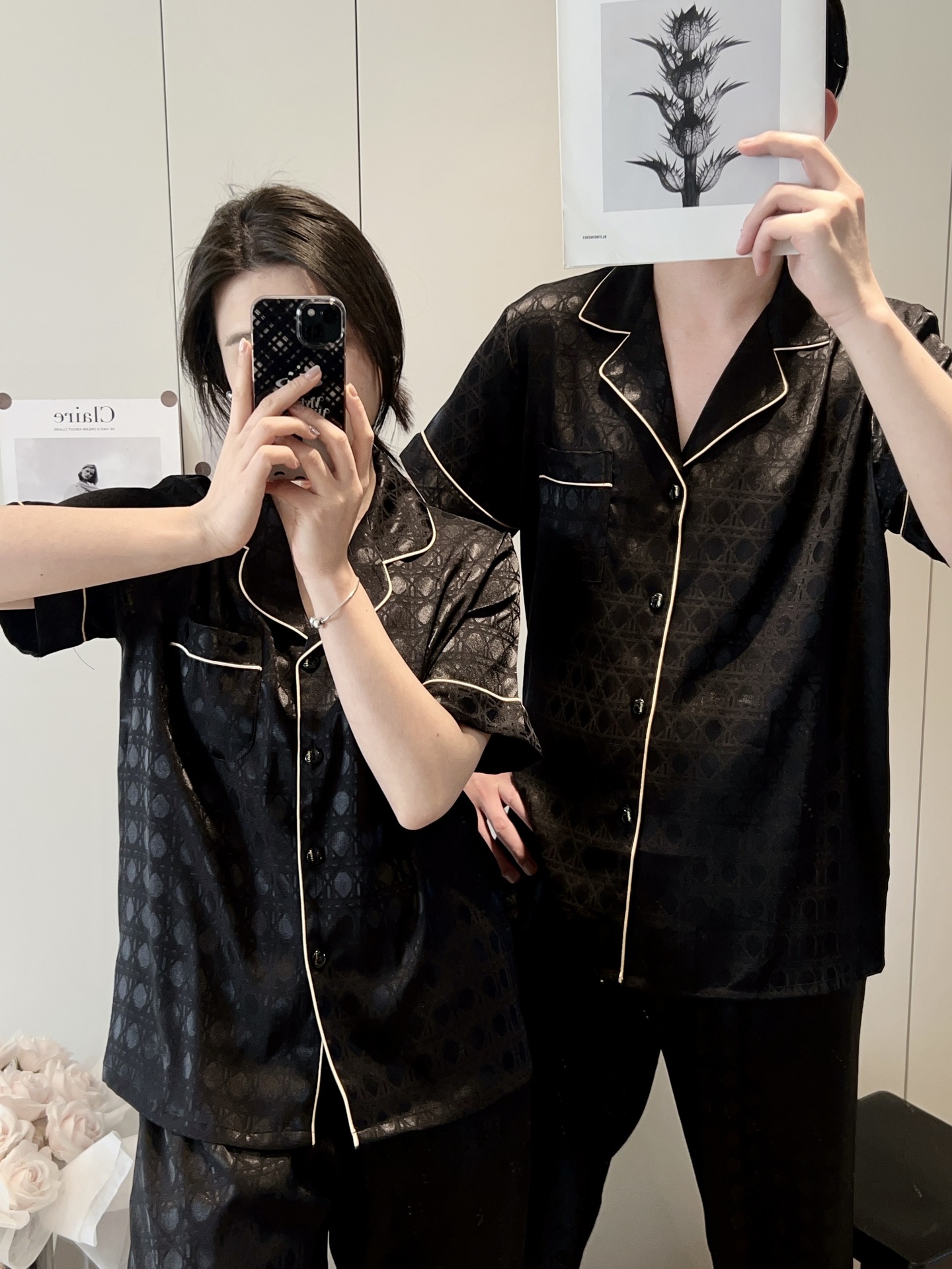 [커플] 한국 캐주얼 헐렁한 남자 플러스 사이즈 반팔 눈 비단 집 옷 세트 여성 부부 생활 년스토어 가기