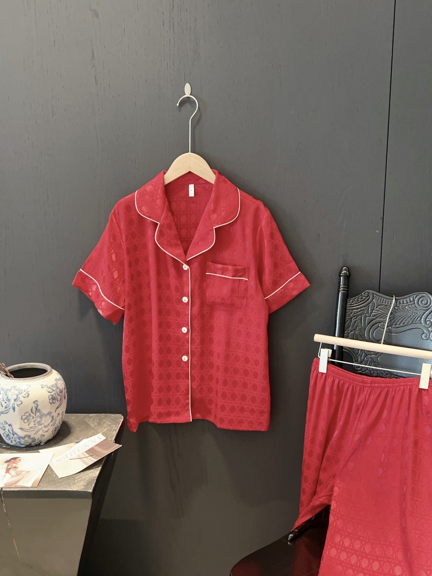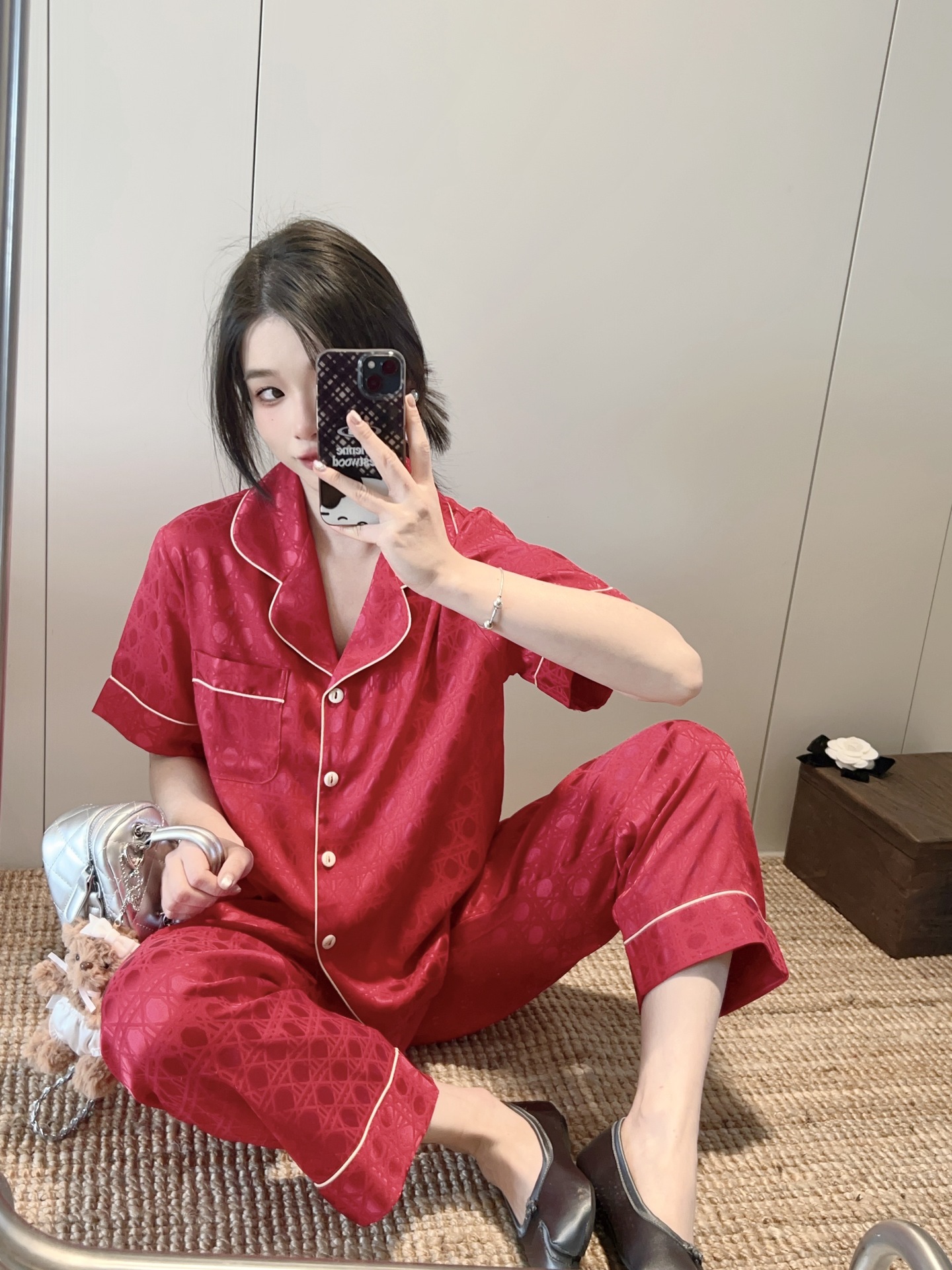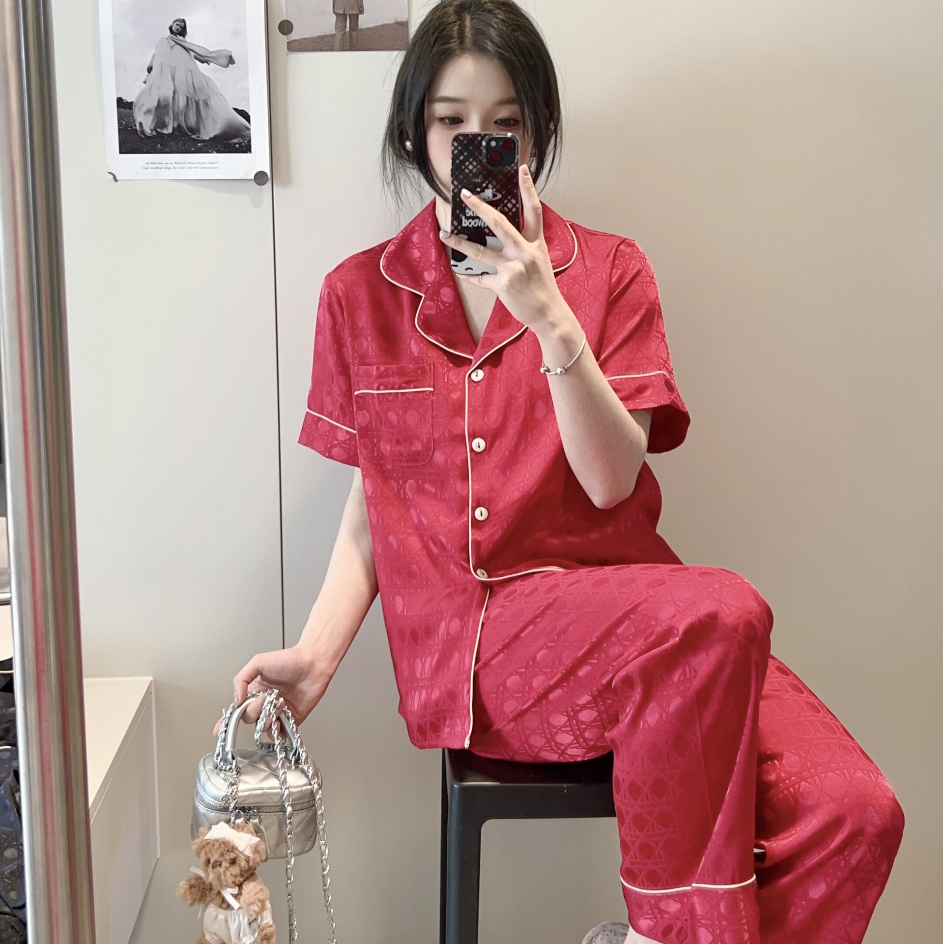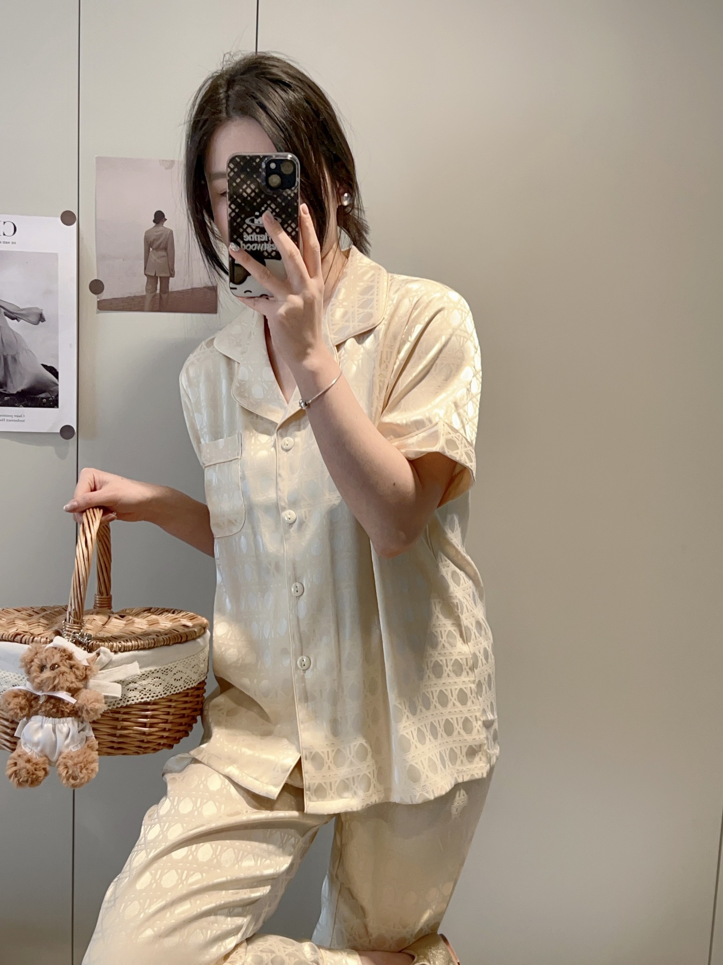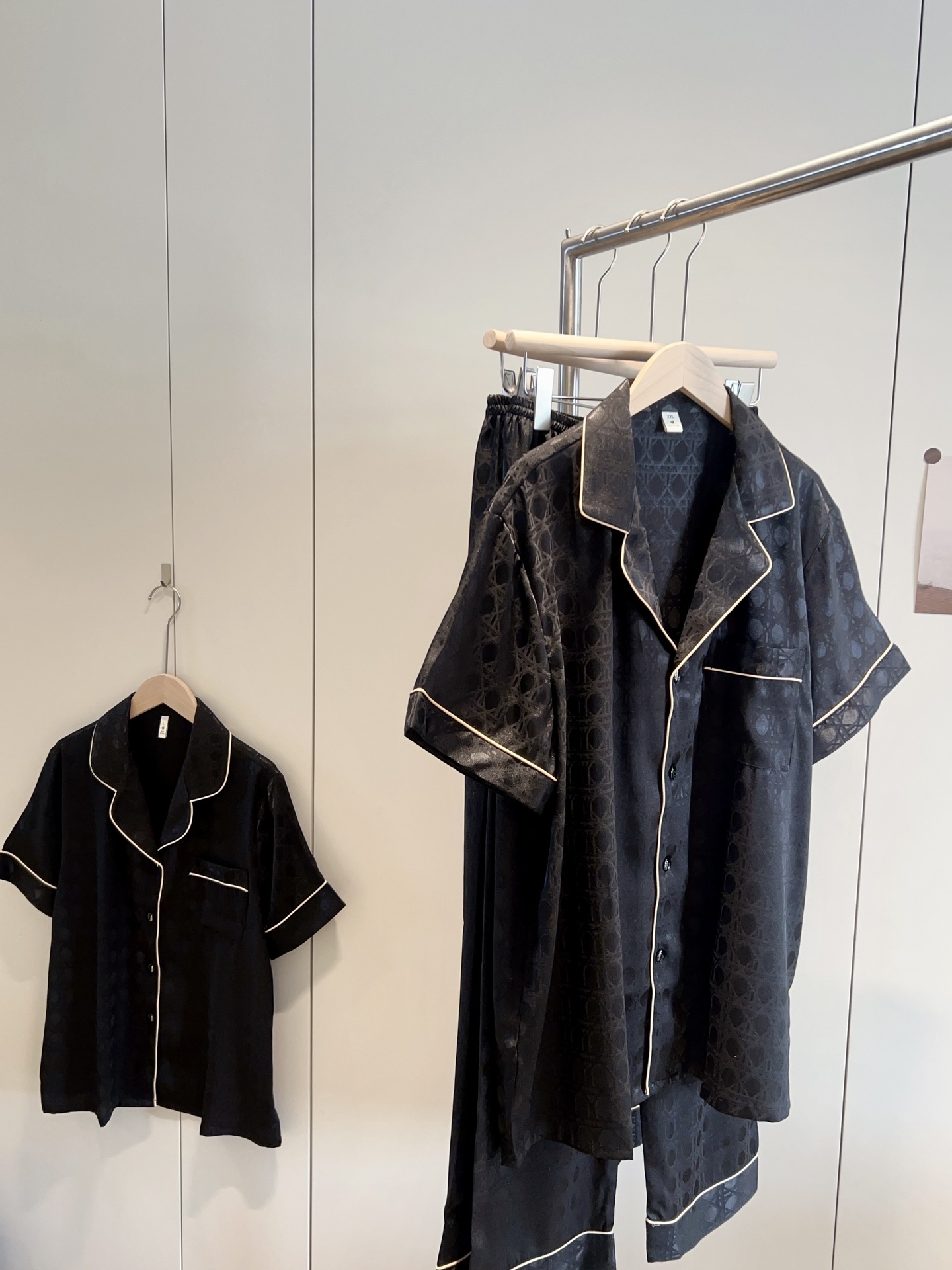 [커플] 한국 캐주얼 헐렁한 남자 플러스 사이즈 반팔 눈 비단 집 옷 세트 여성 부부 생활 년스토어 가기