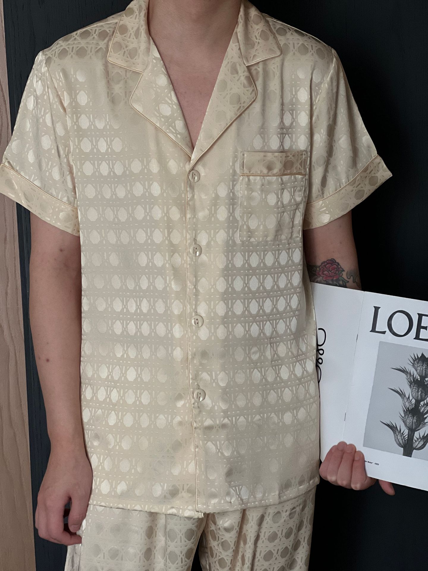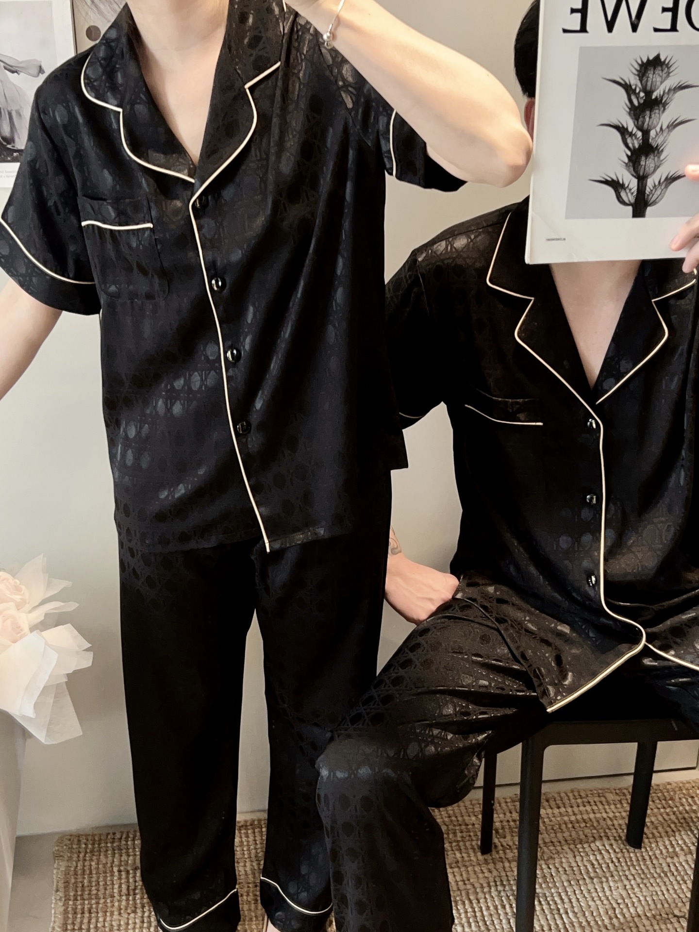 [커플] 한국 캐주얼 헐렁한 남자 플러스 사이즈 반팔 눈 비단 집 옷 세트 여성 부부 생활 년