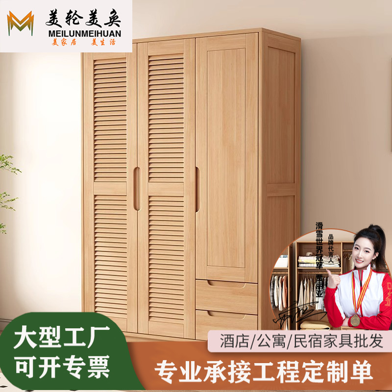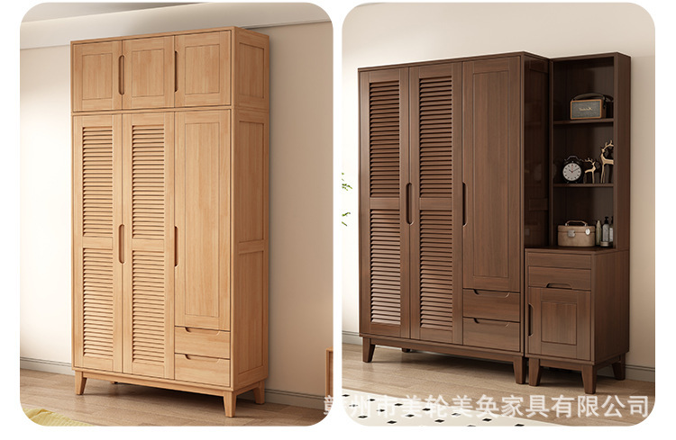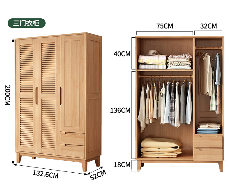 북유럽 스타일 솔리드 우드 옷장 로그 경제적 인 작은 옷장 완공 옷장 홈 침실 통기성 새 옷장