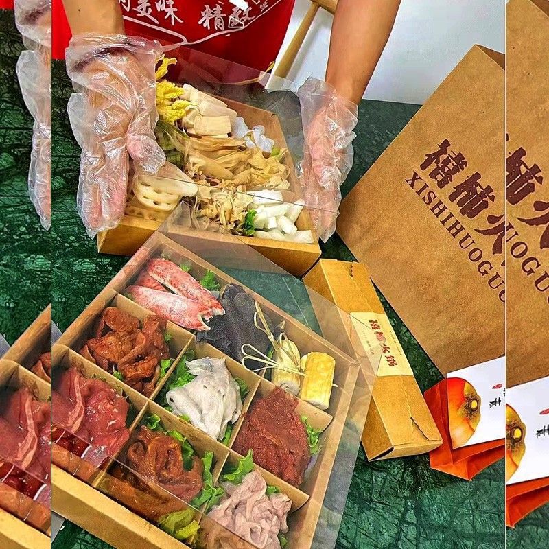 그물 빨간 Jiugongge 일회용 포장 상자 뜨거운 냄비 바베큐 크래프트 종이 테이크 아웃 뜨거운 냄비 과일 초밥 포장 상자스토어 가기