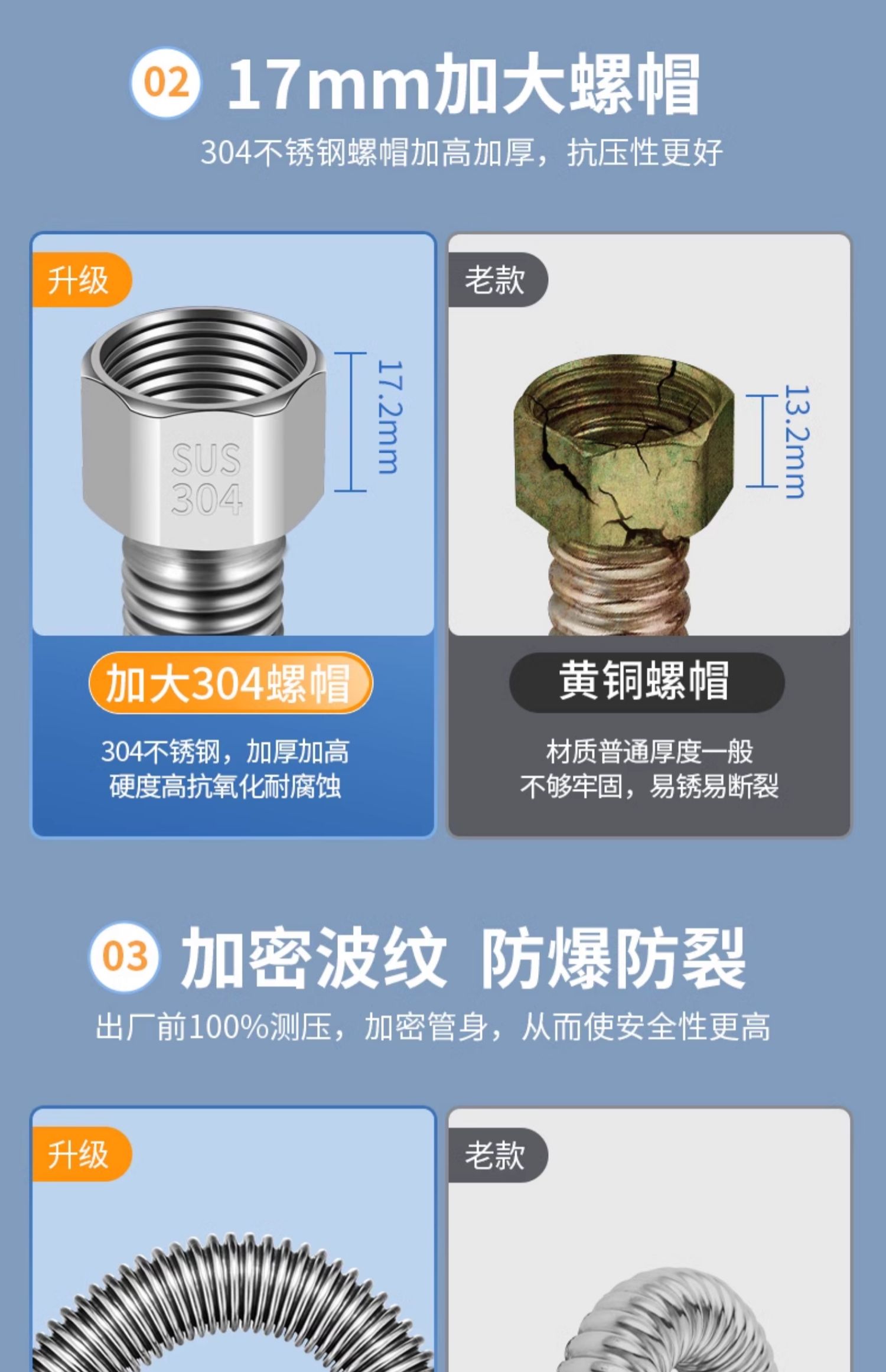 4 점 304 스테인레스 스틸 벨 로우 온수기 연결 냉기와 뜨거운 출구 물 입구 호스 고압 방폭 금속 화장실