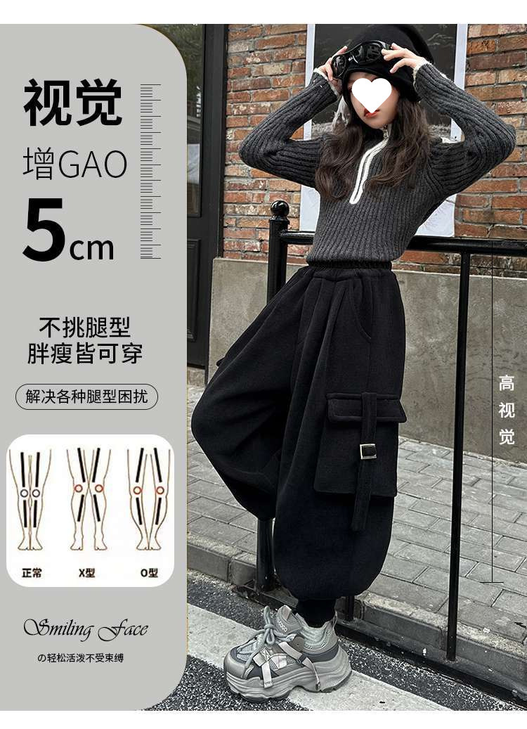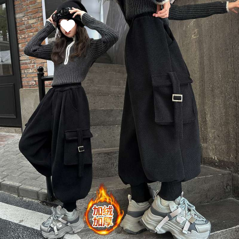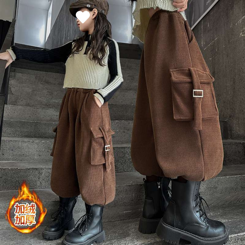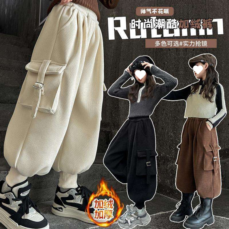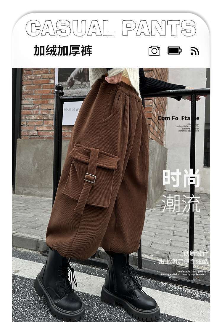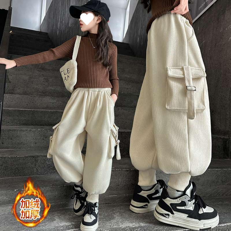 소녀의 가을과 겨울 기모 바지 어린이 서양식 유행 원피스 캐주얼 바지 트렌디 한 멋진 작업복 바지 큰 어린이를위한 바지스토어 가기