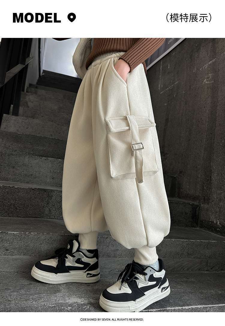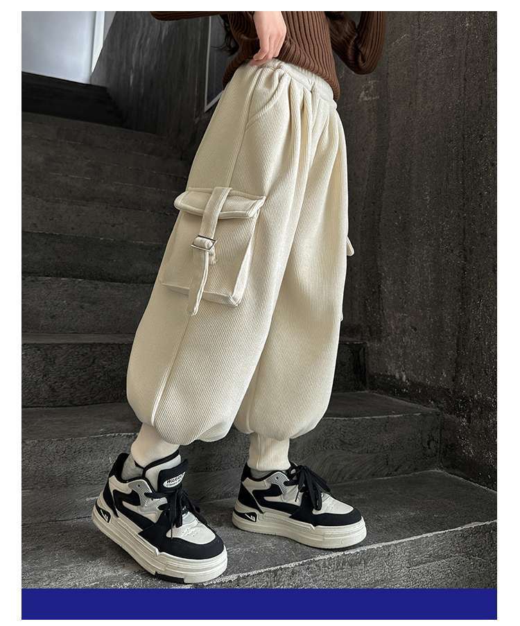 소녀의 가을과 겨울 기모 바지 어린이 서양식 유행 원피스 캐주얼 바지 트렌디 한 멋진 작업복 바지 큰 어린이를위한 바지