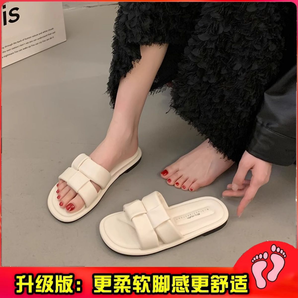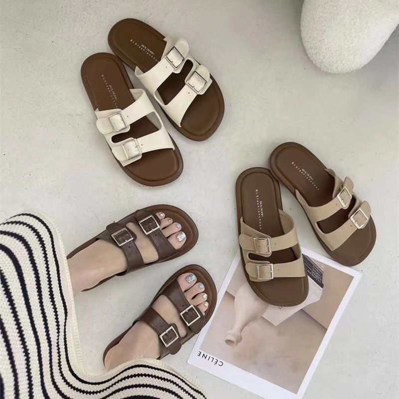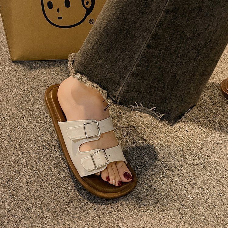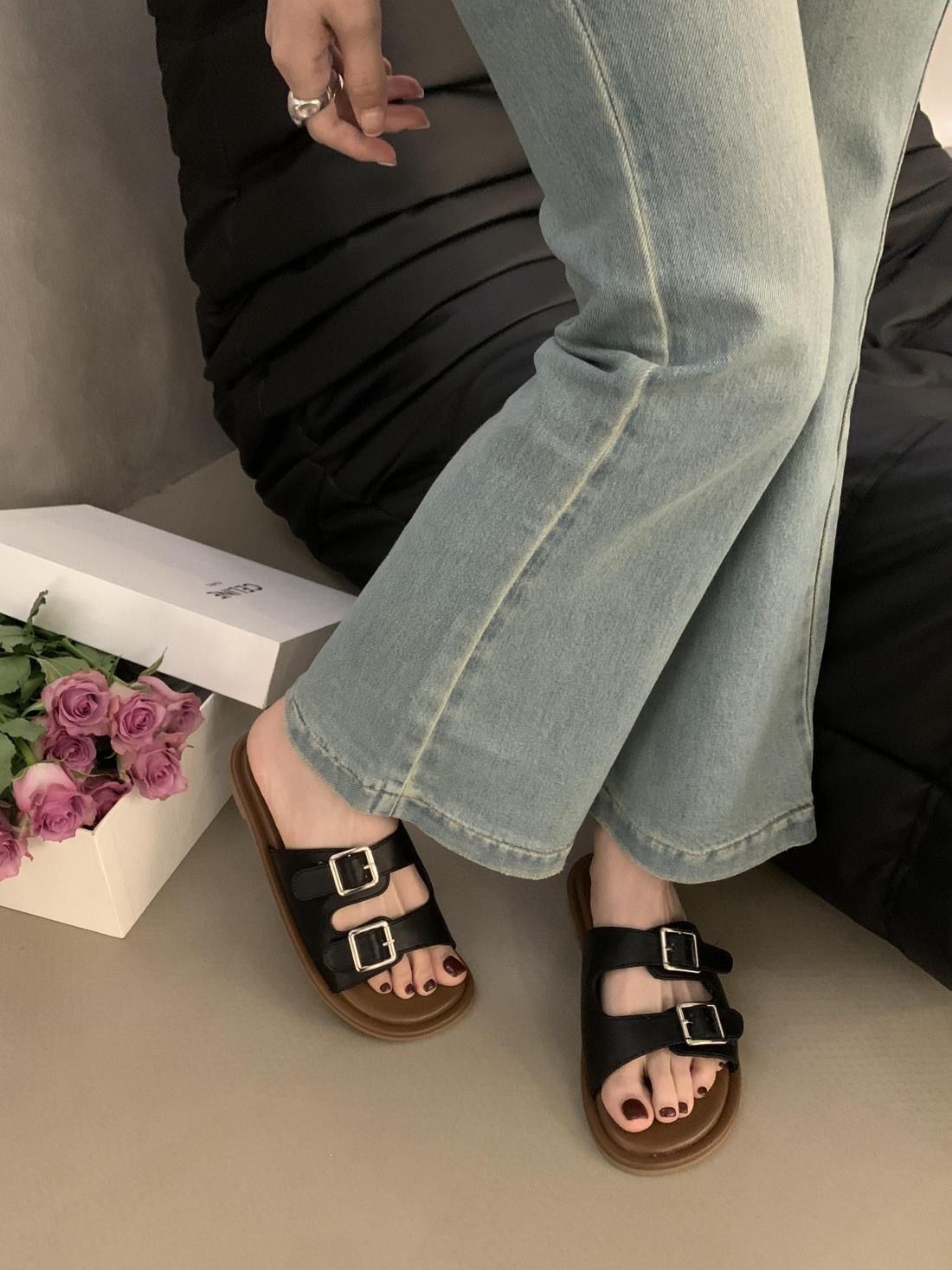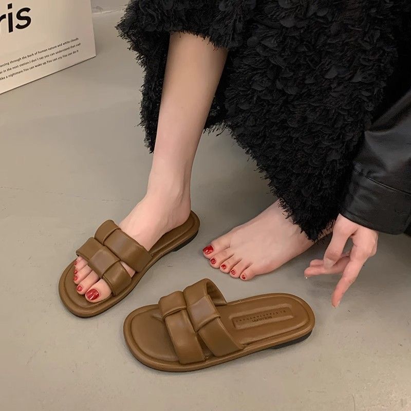 2025 새로운 여름 인터넷 인기있는 슈퍼 핫 슬리퍼 여성 아웃웨어 패션 페어리 스타일 올 매치 플랫 해변 신발스토어 가기
