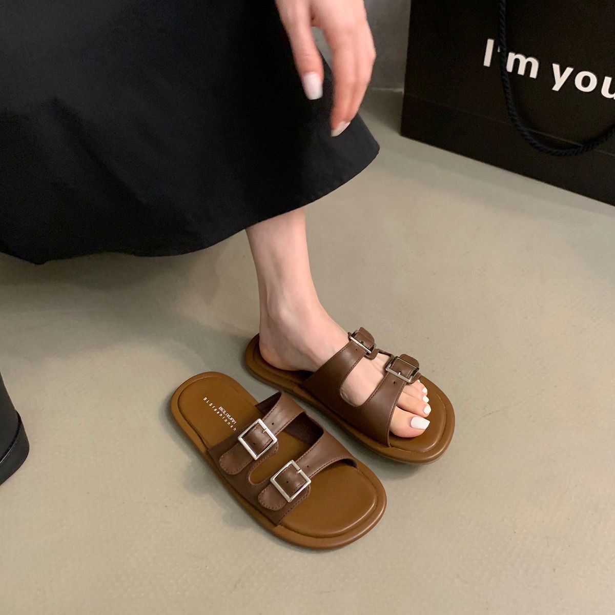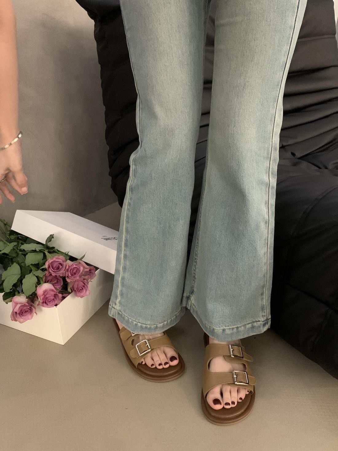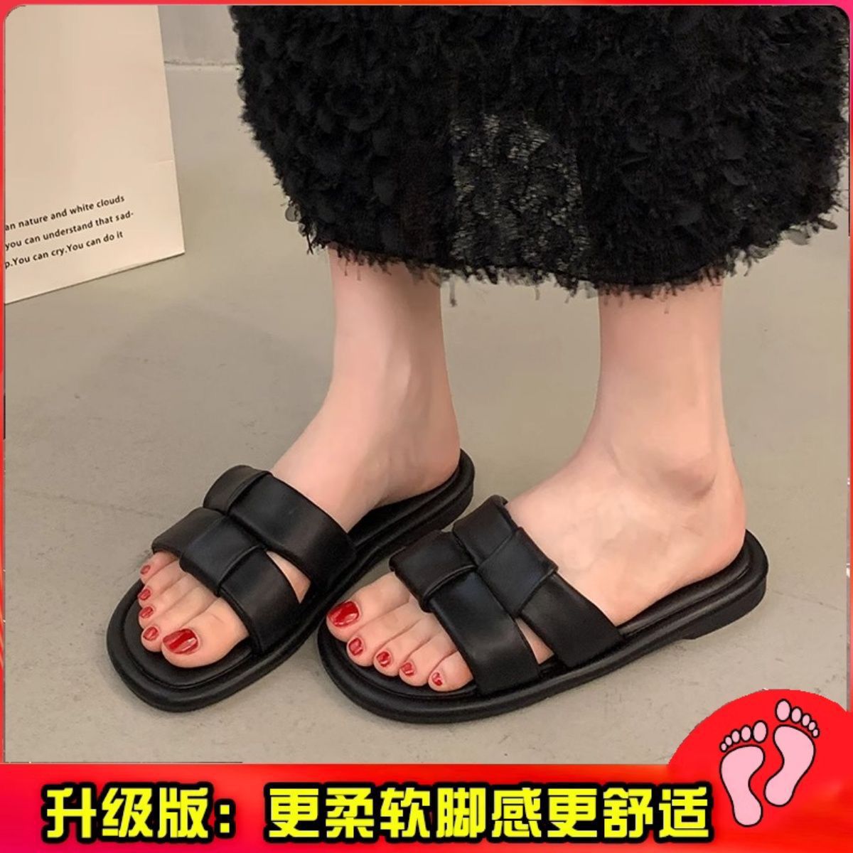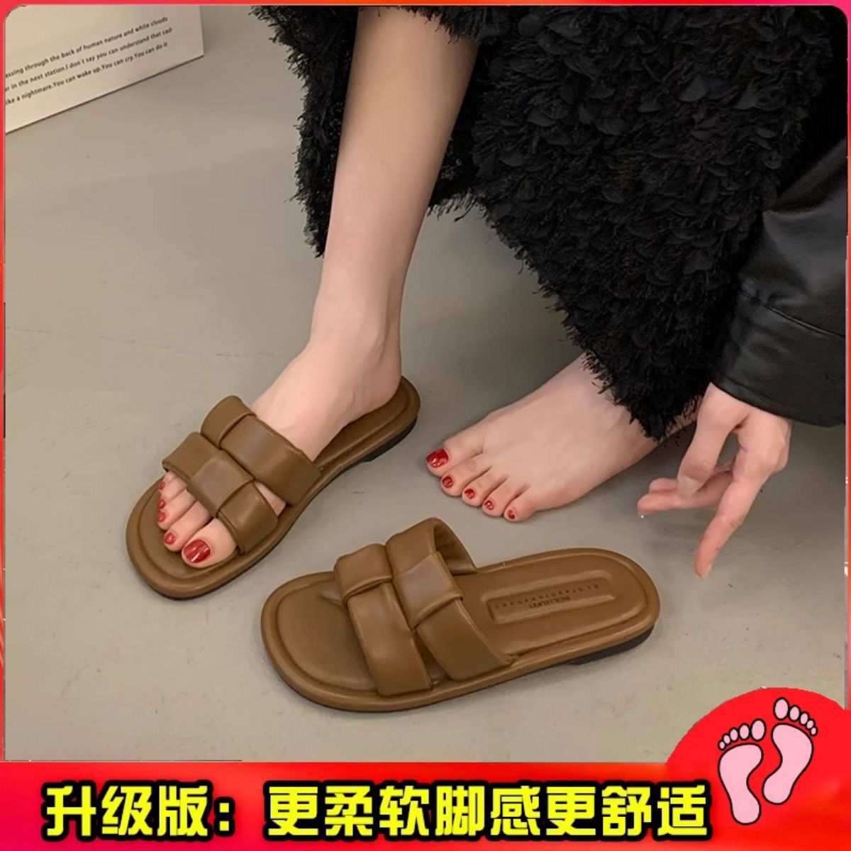 2025 새로운 여름 인터넷 인기있는 슈퍼 핫 슬리퍼 여성 아웃웨어 패션 페어리 스타일 올 매치 플랫 해변 신발스토어 가기