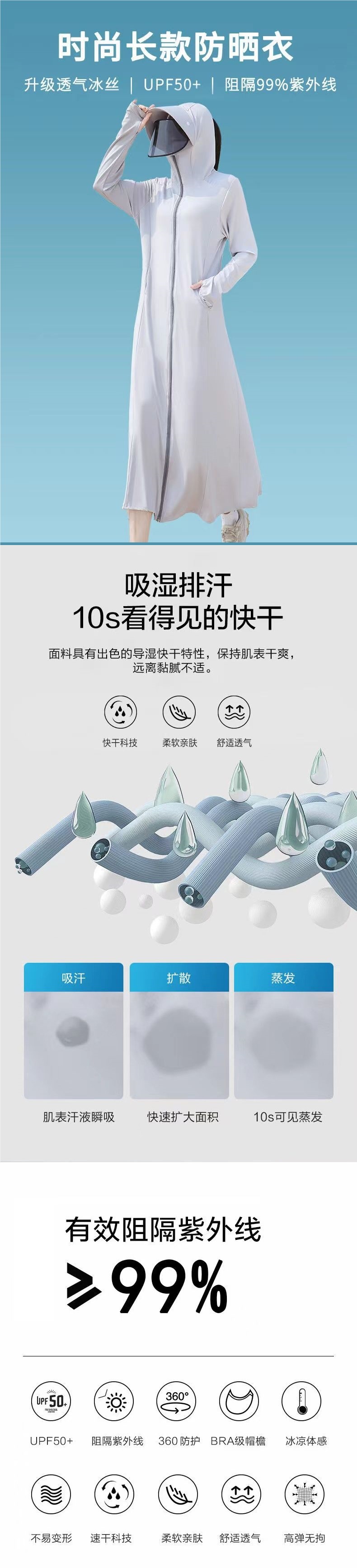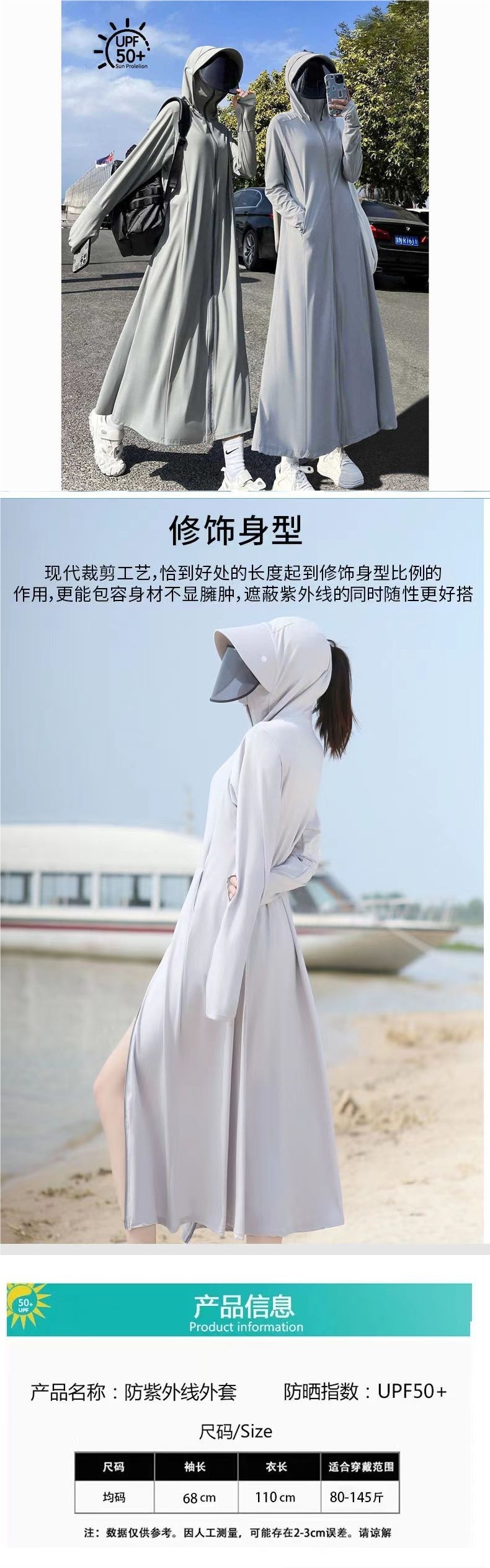 태양 보호 의류 여성의 2025 여름 새로운 후드 무릎 긴 UV 얼음 실크 통기성 태양 보호 얇은 외투스토어 가기