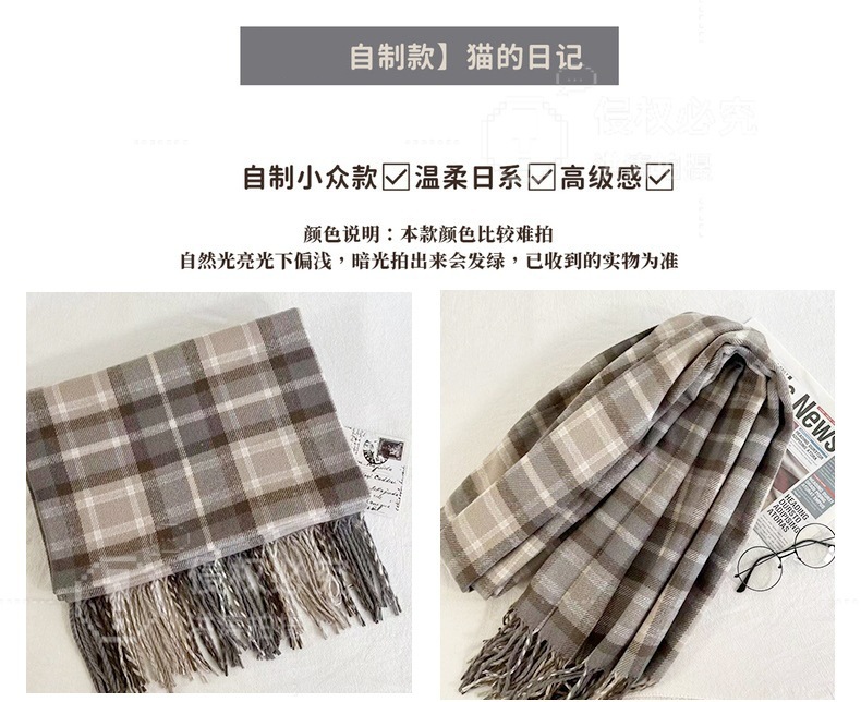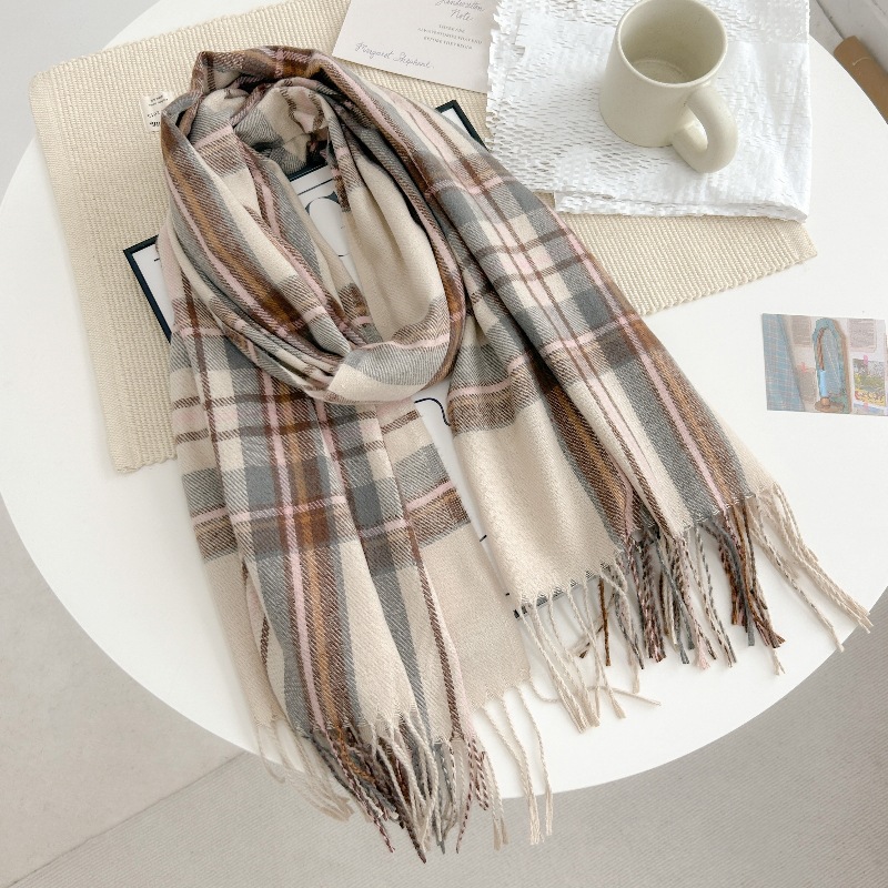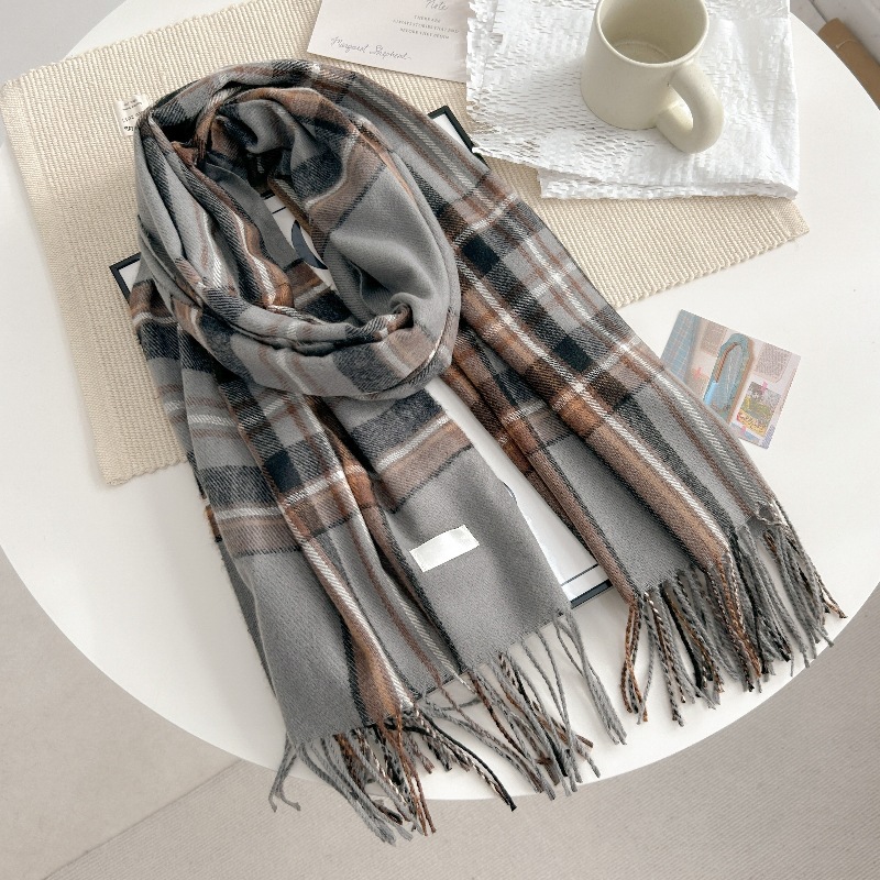 대형 버전 격자 무늬 스카프 여자 겨울 2025 새로운 한국 스타일 올매치 학생 두꺼운 따뜻한 Xingyue 돌고래 뼈 스카프스토어 가기