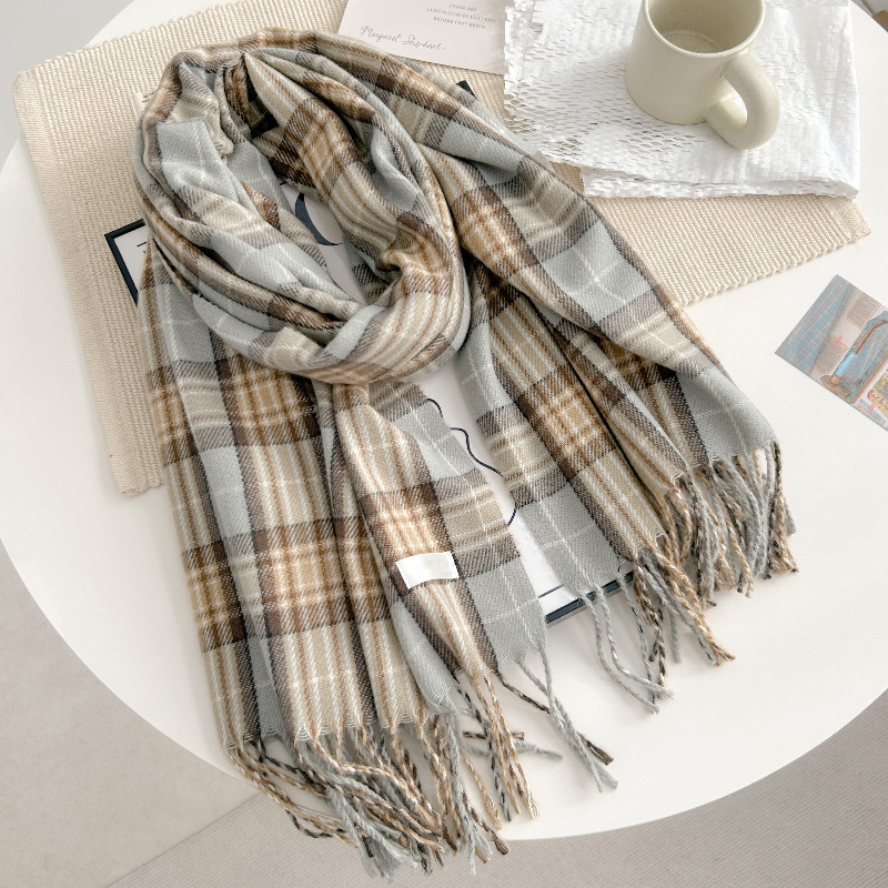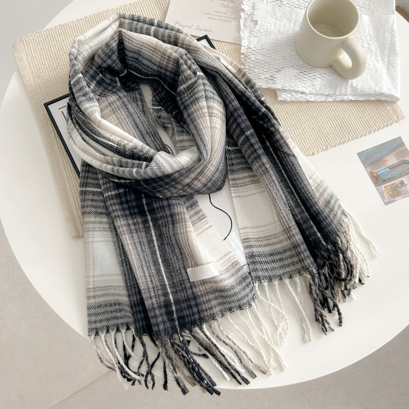 대형 버전 격자 무늬 스카프 여자 겨울 2025 새로운 한국 스타일 올매치 학생 두꺼운 따뜻한 Xingyue 돌고래 뼈 스카프