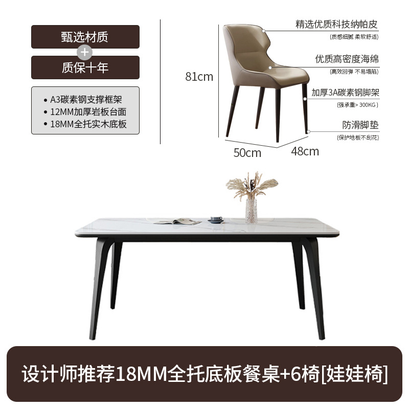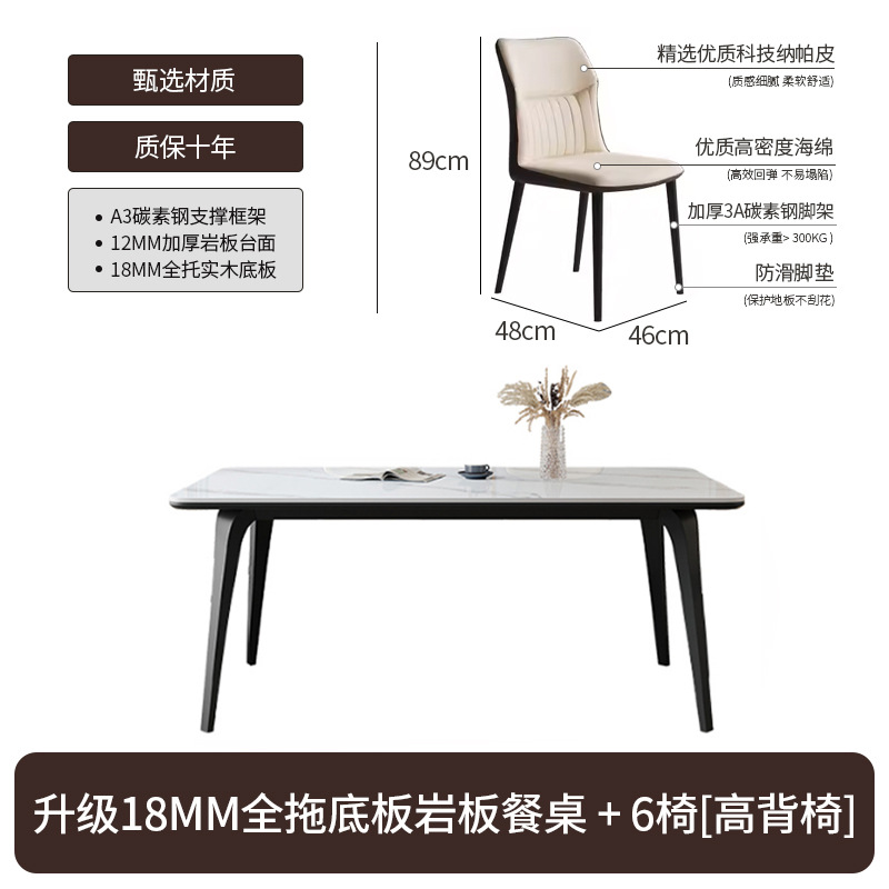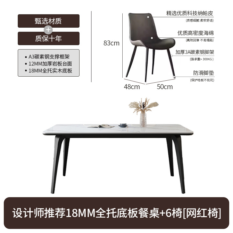 이탈리아 가벼운 럭셔리 록 보드 식탁 및 의자 가구 작은 아파트 현대 간단한 직사각형 식사 테이블 Enoch 록 보드 식탁스토어 가기