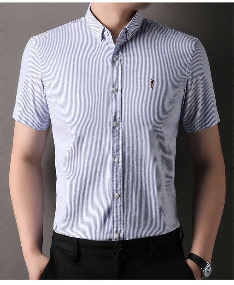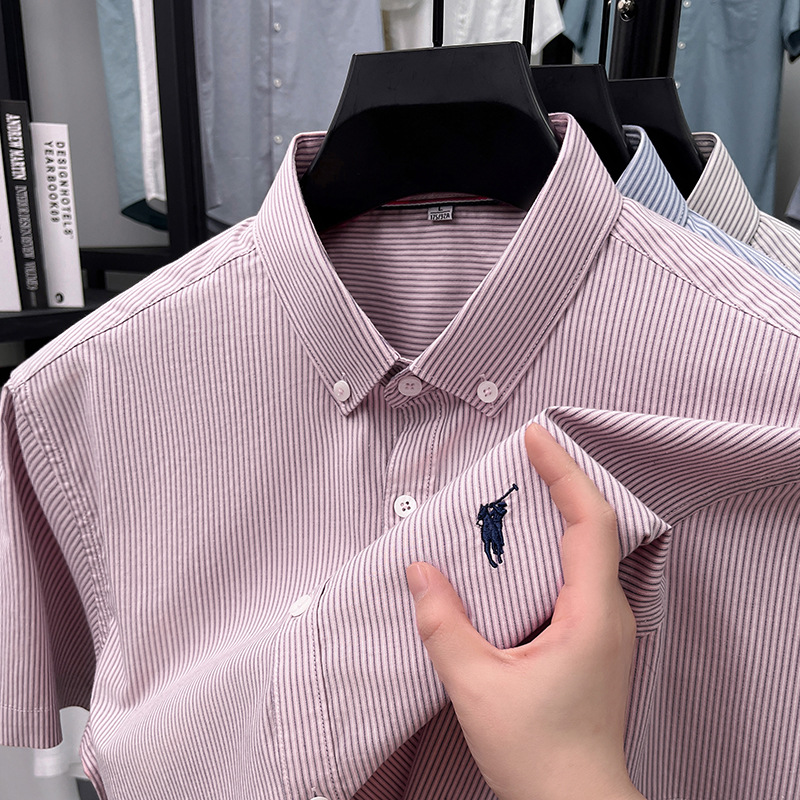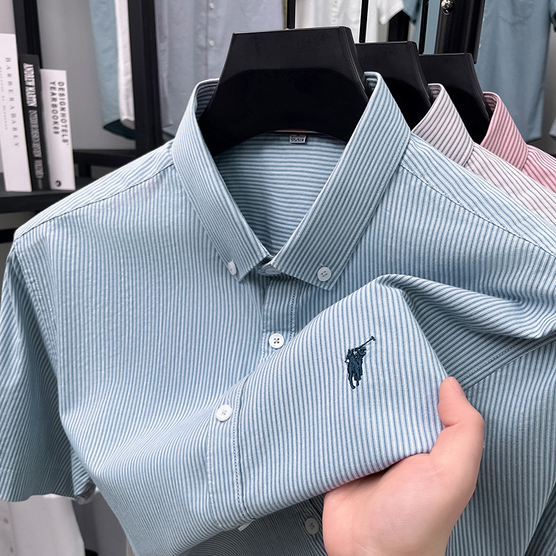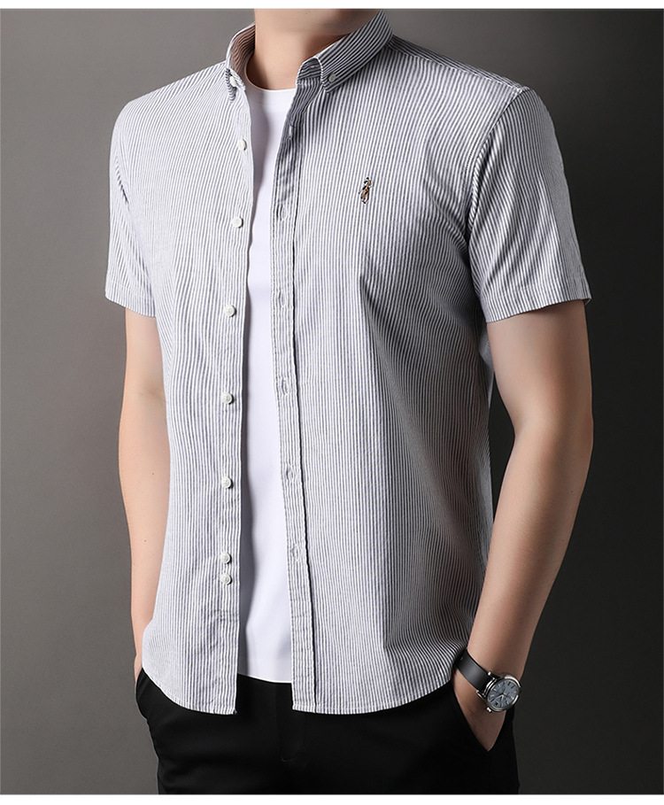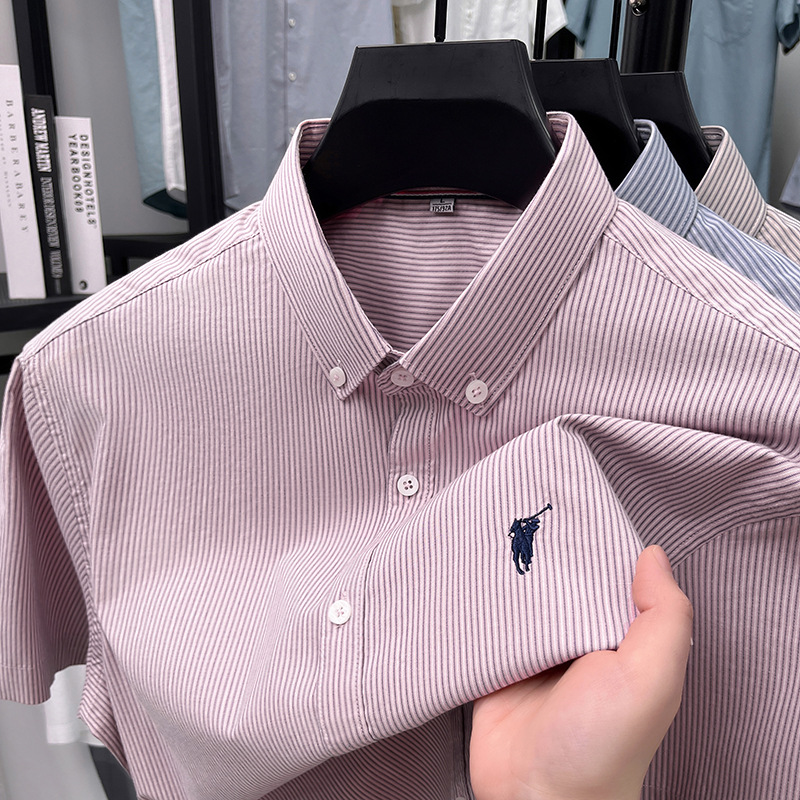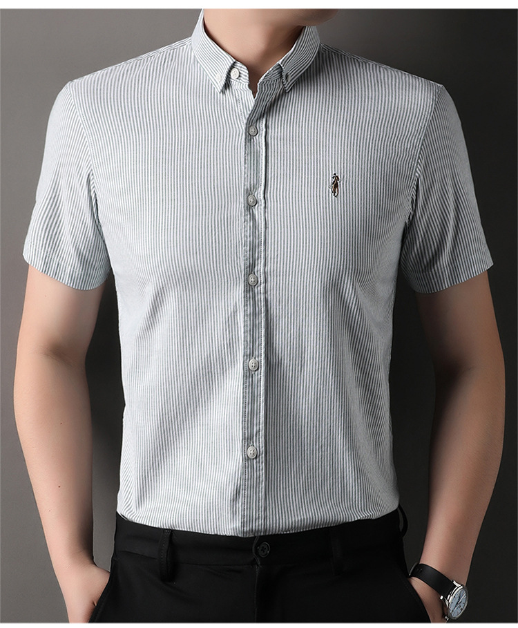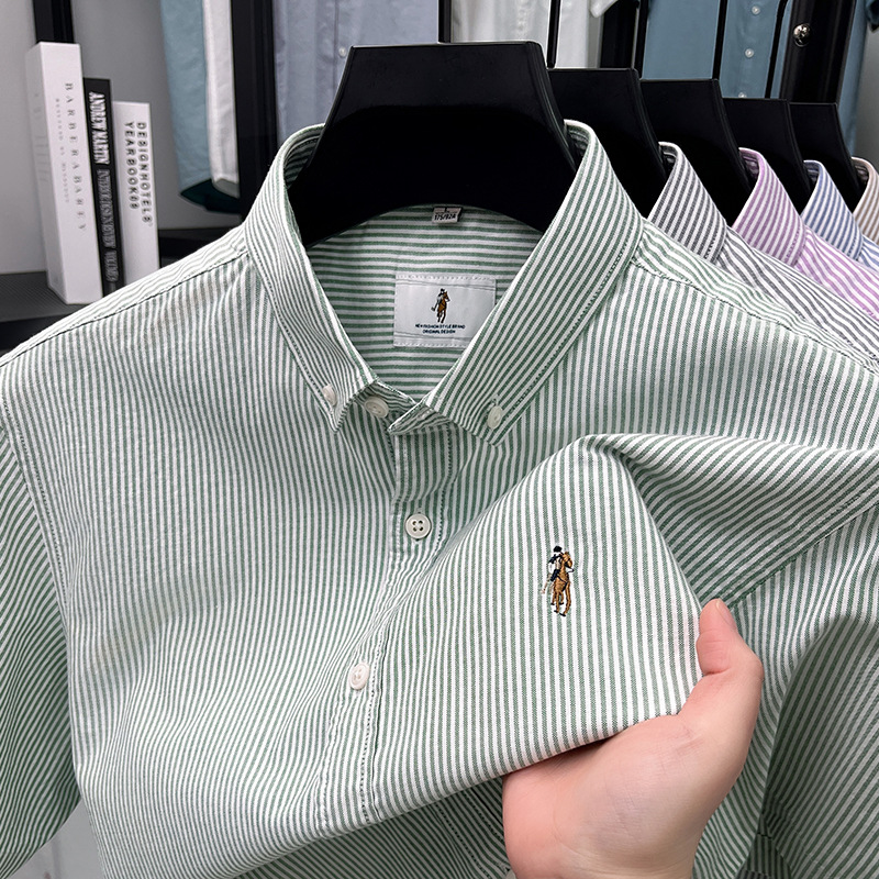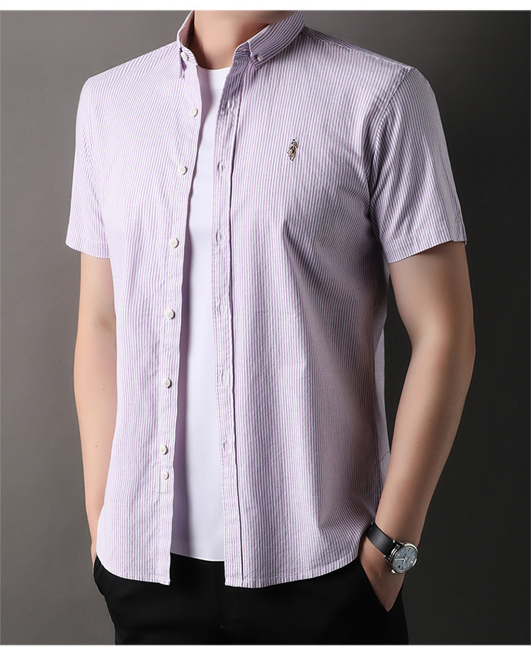 남성용 가을 100% 면 셔츠, 반팔 캐주얼 스트라이프 자수, 다림질 필요 없는 고품질 셔츠, 남성 도매스토어 가기