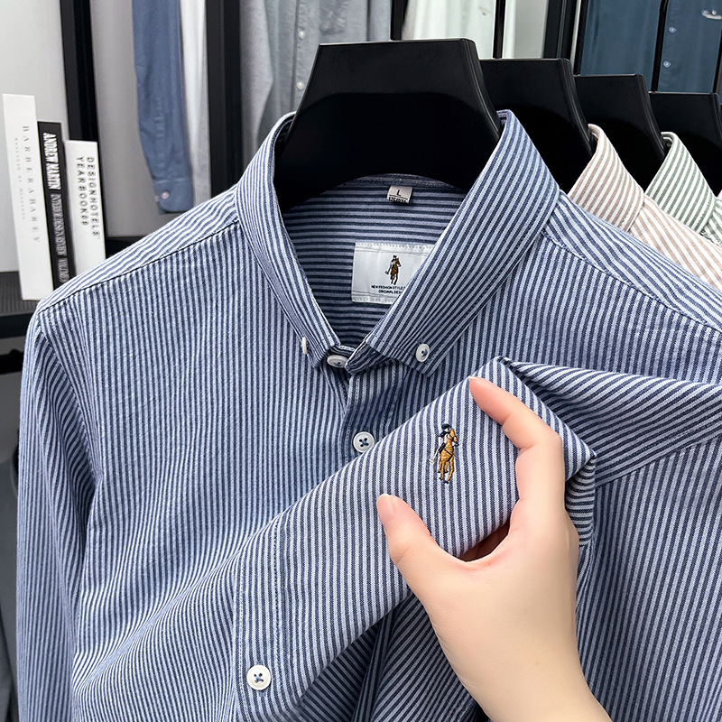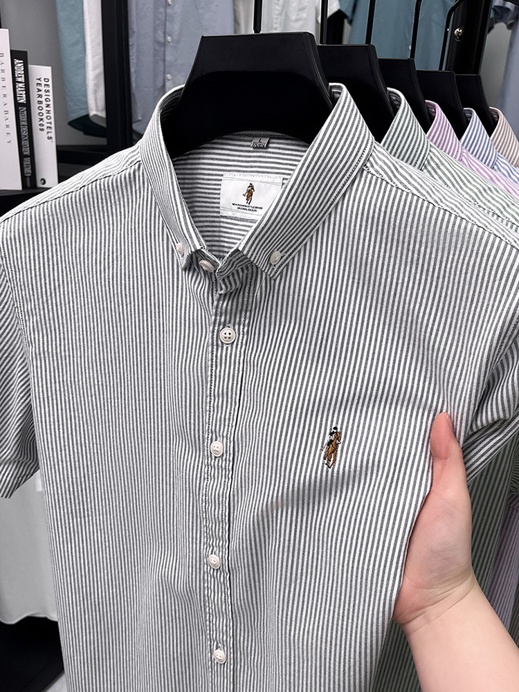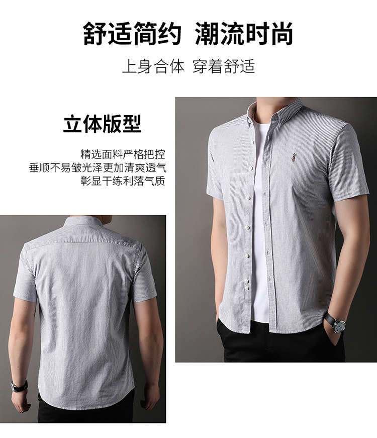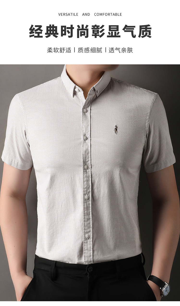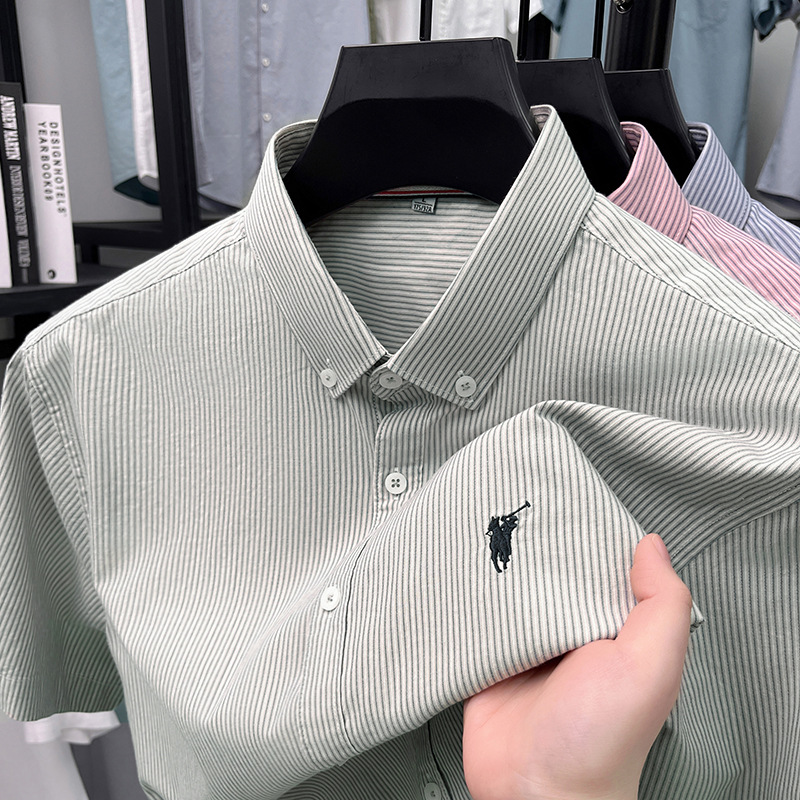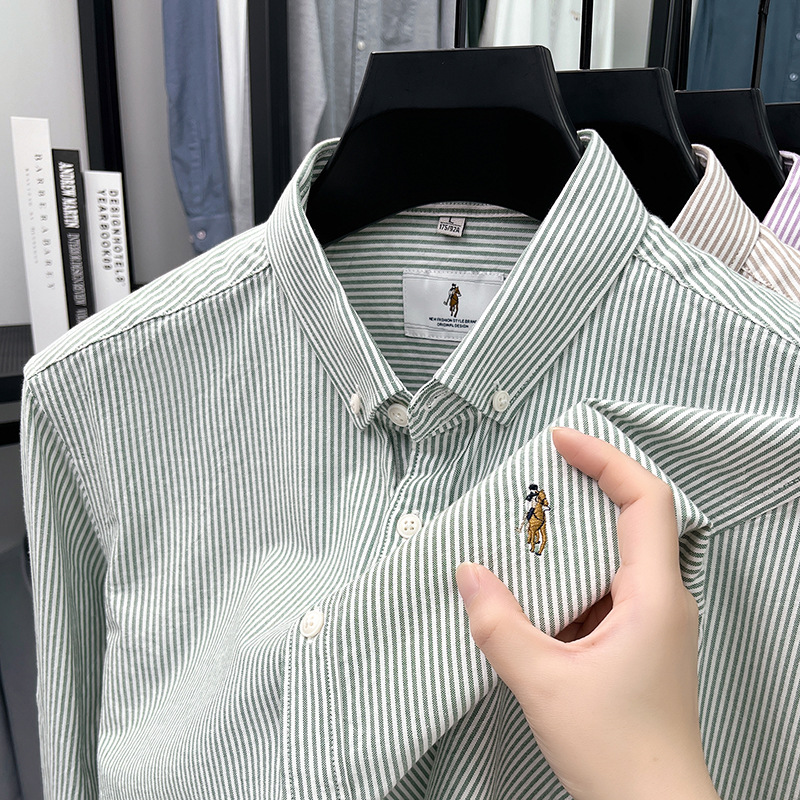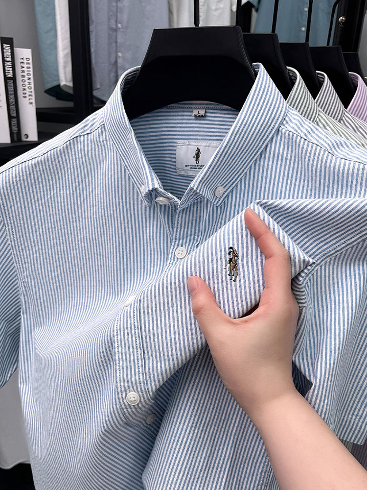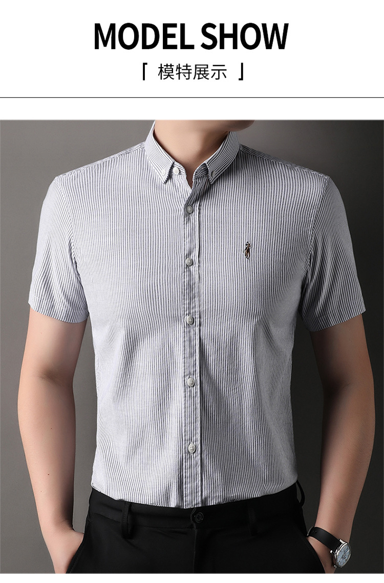 남성용 가을 100% 면 셔츠, 반팔 캐주얼 스트라이프 자수, 다림질 필요 없는 고품질 셔츠, 남성 도매스토어 가기
