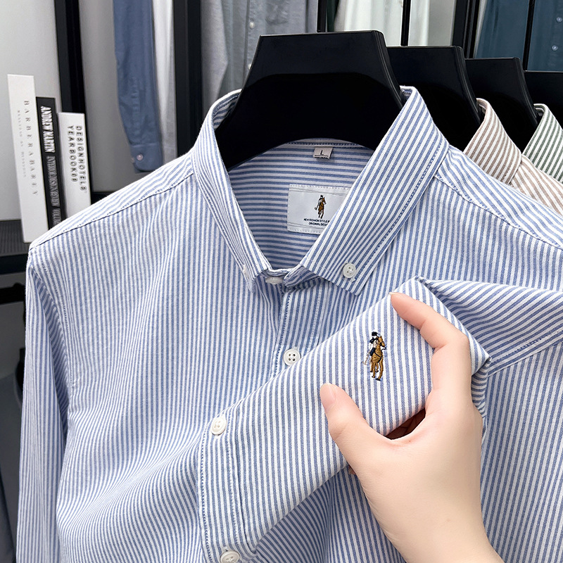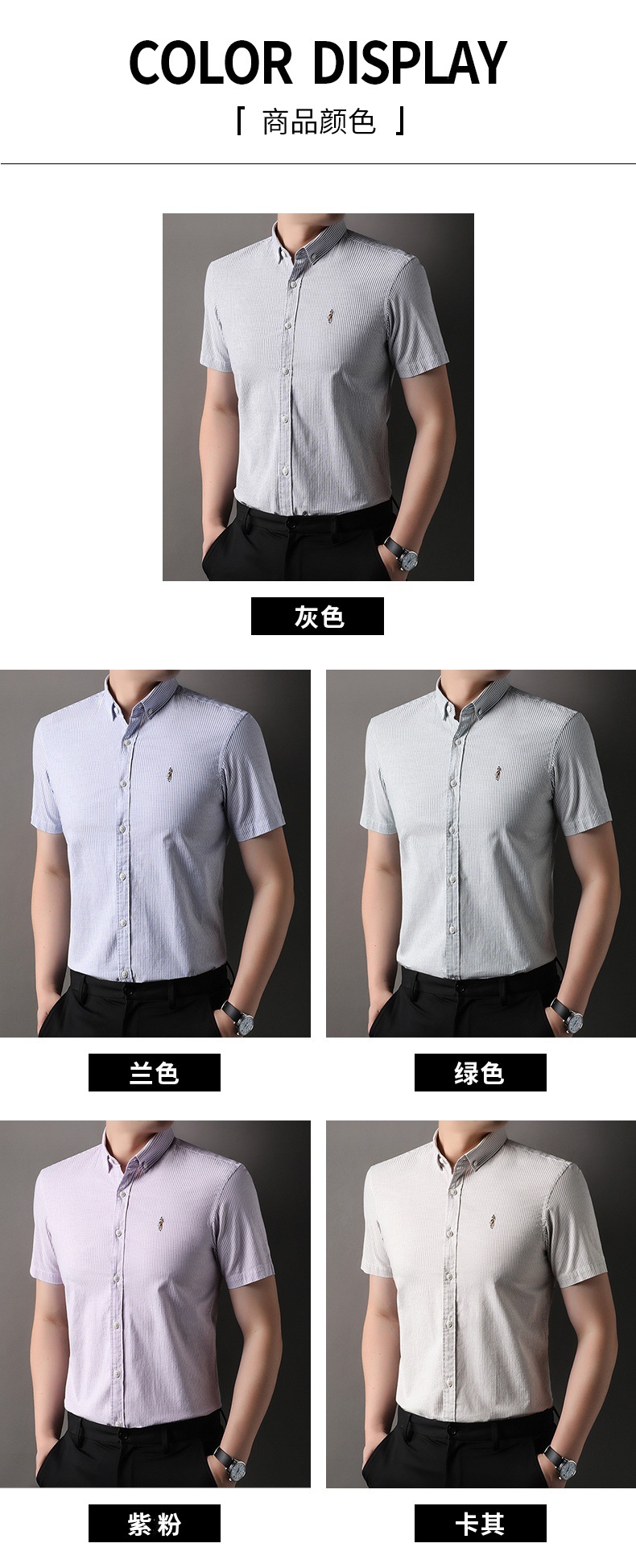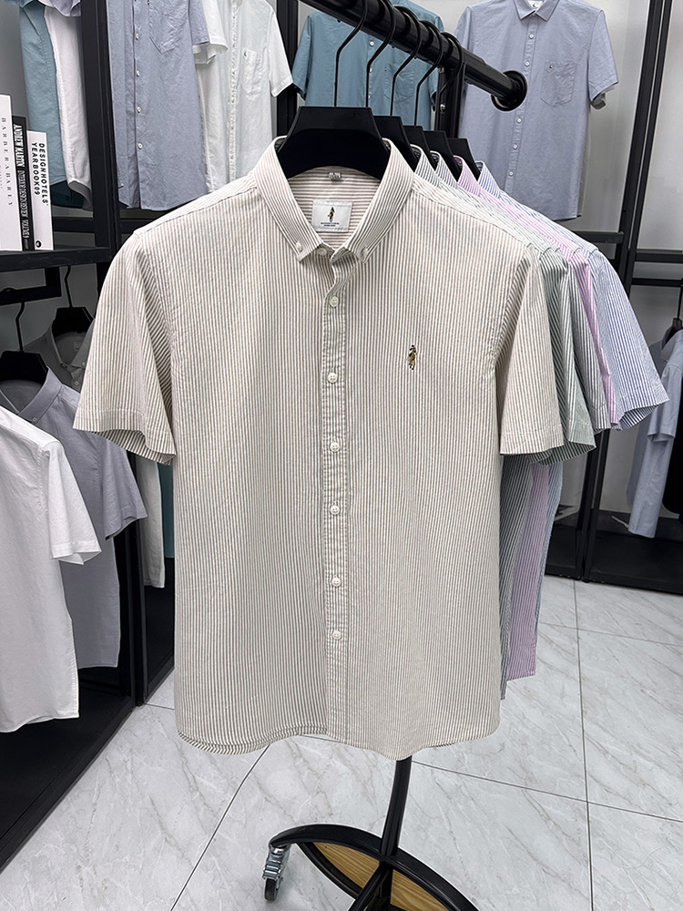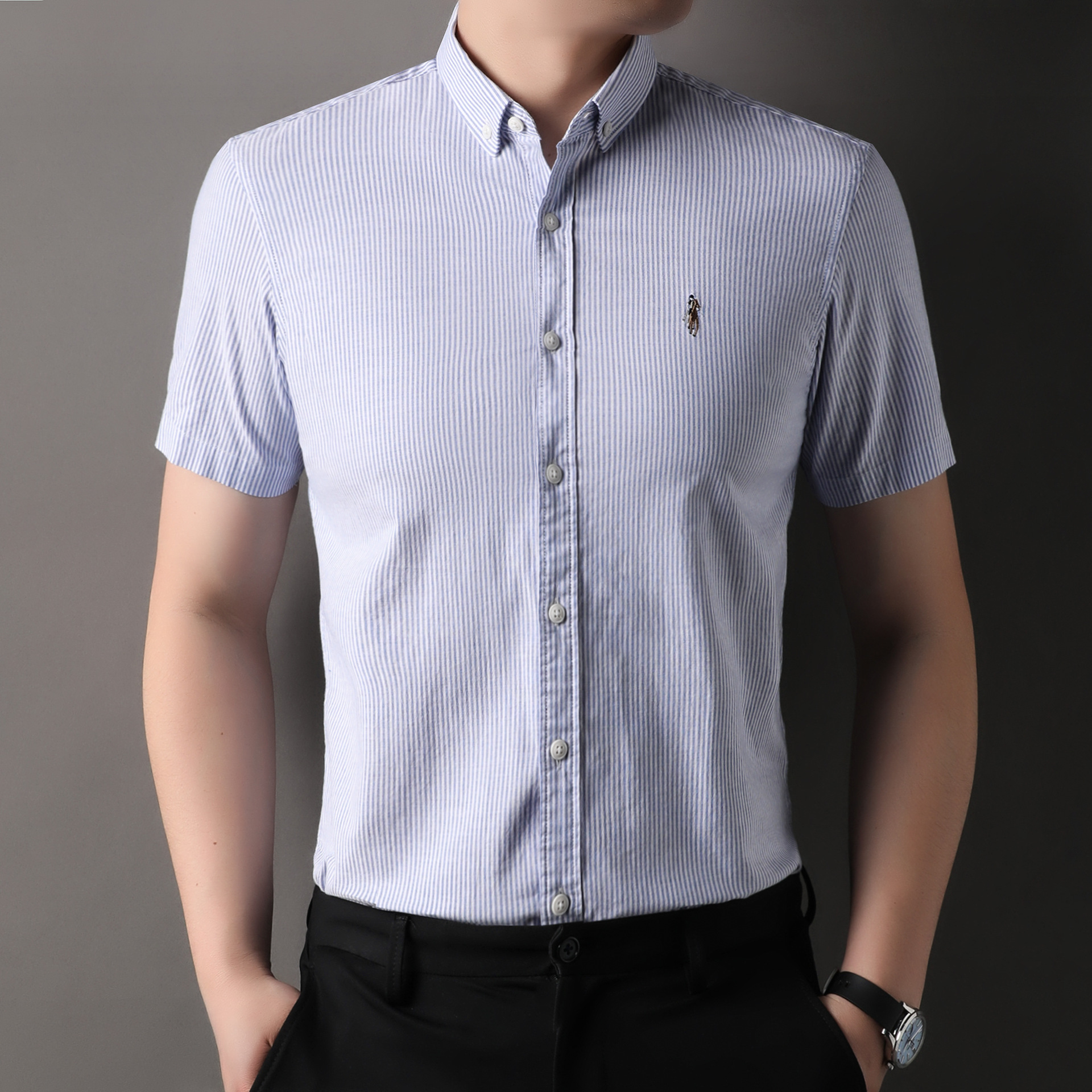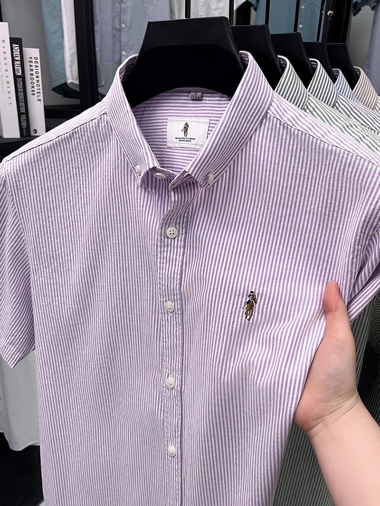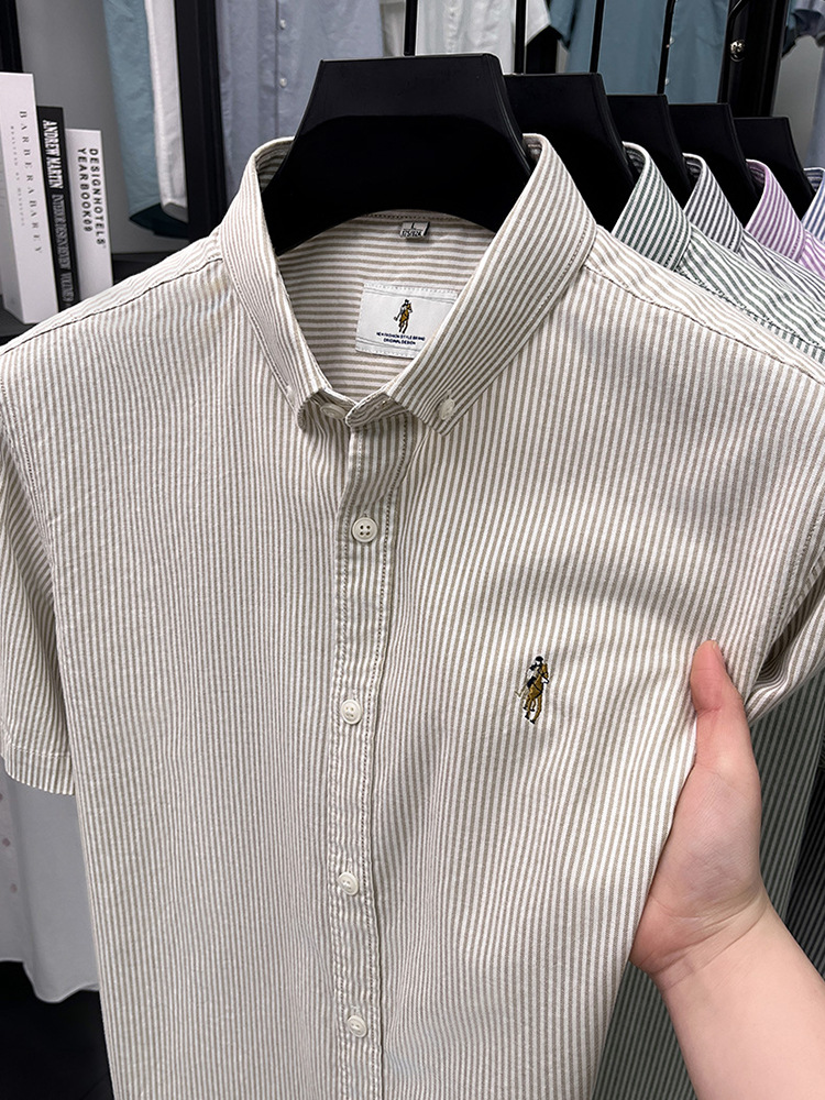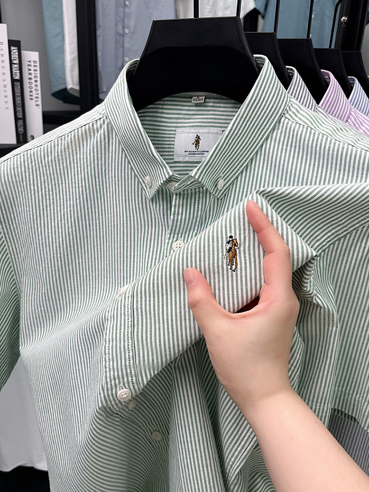 남성용 가을 100% 면 셔츠, 반팔 캐주얼 스트라이프 자수, 다림질 필요 없는 고품질 셔츠, 남성 도매스토어 가기