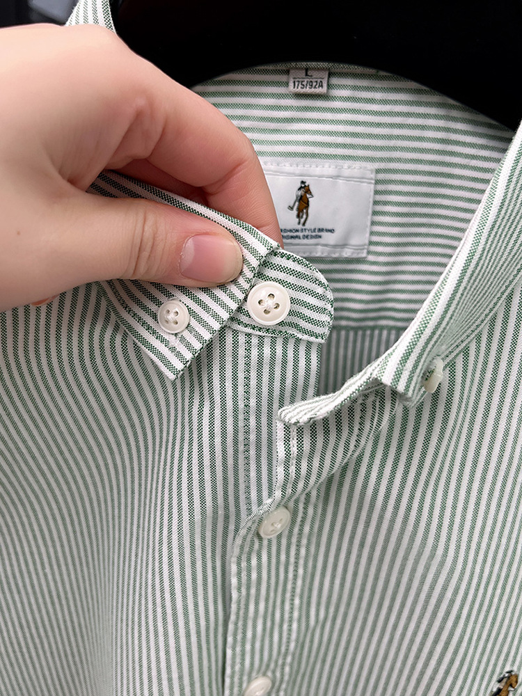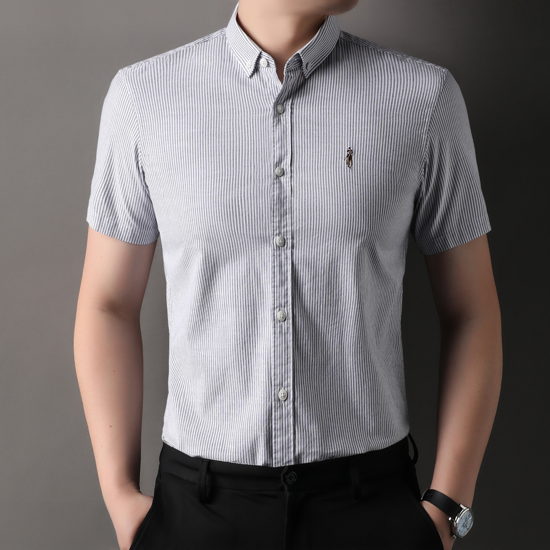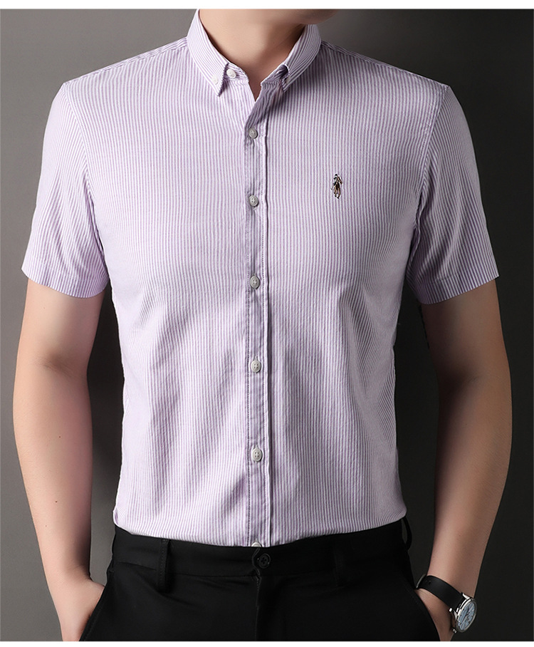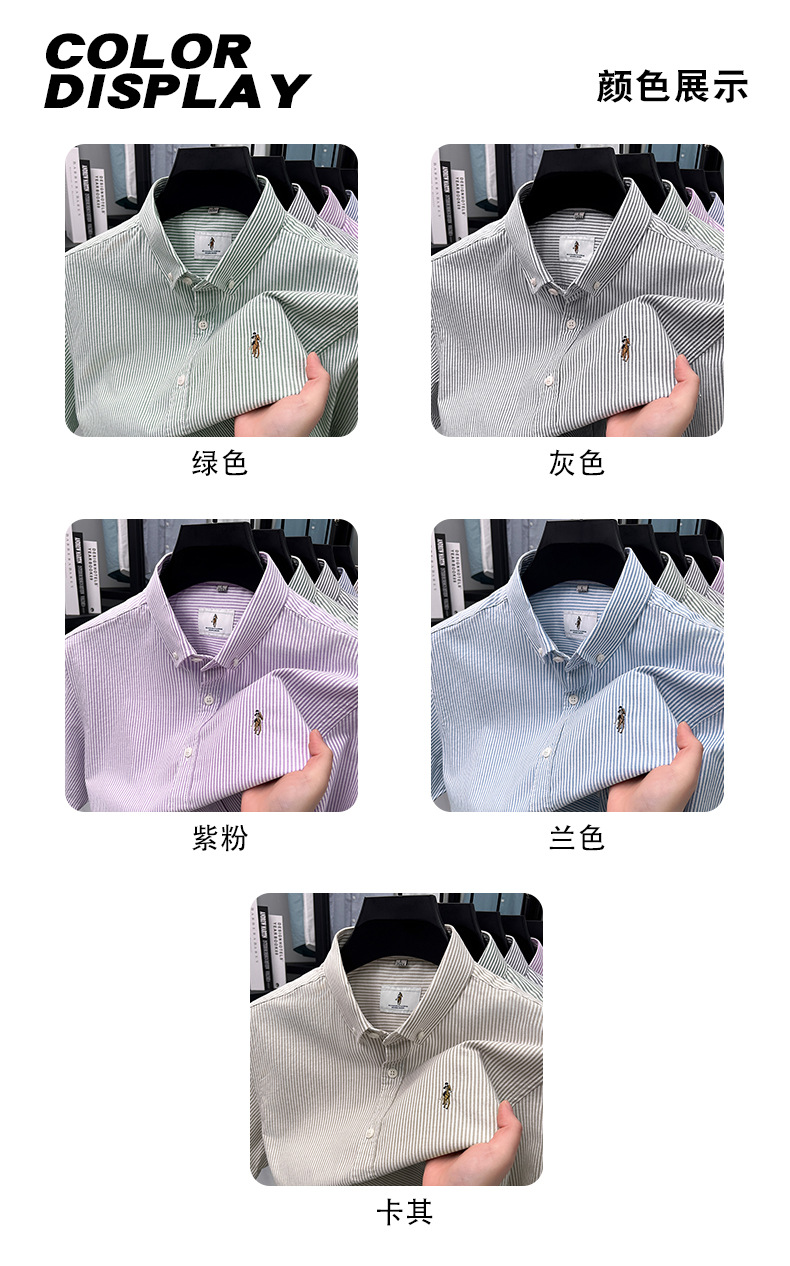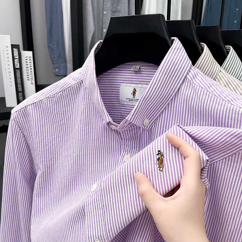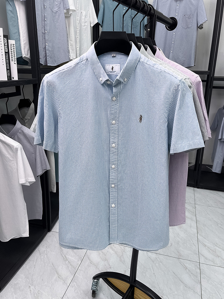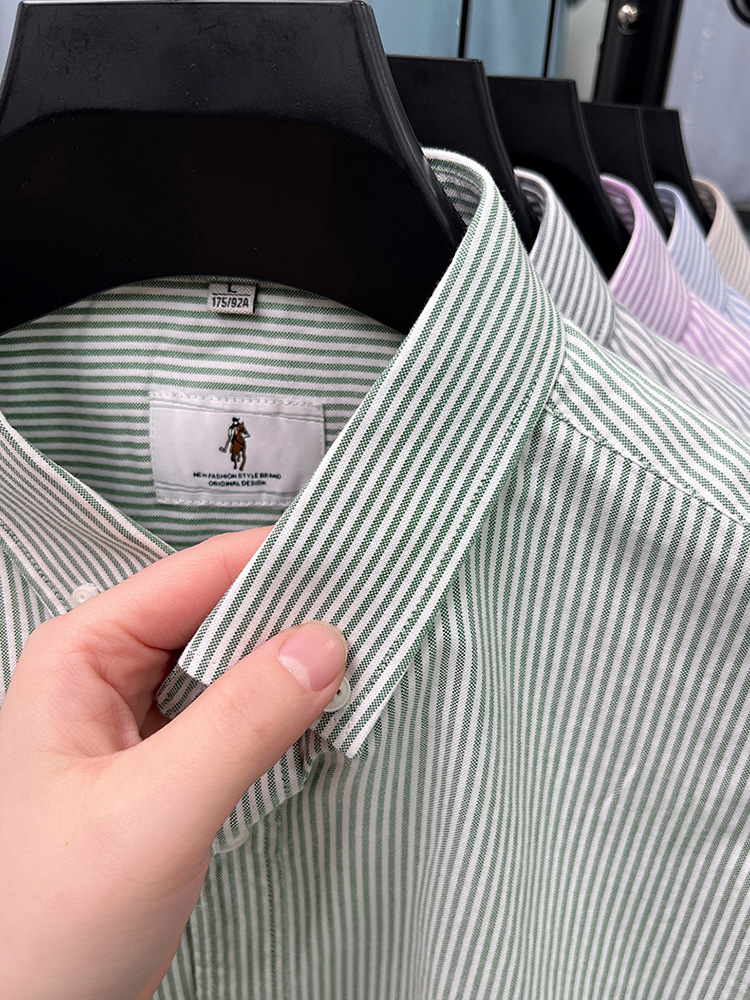 남성용 가을 100% 면 셔츠, 반팔 캐주얼 스트라이프 자수, 다림질 필요 없는 고품질 셔츠, 남성 도매스토어 가기