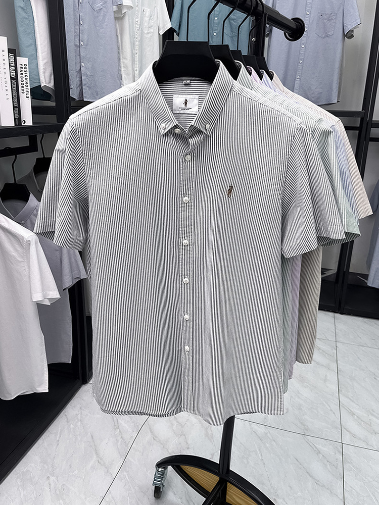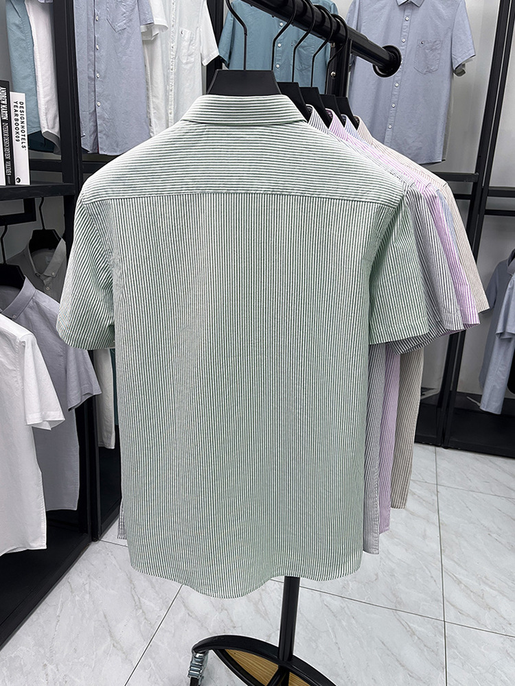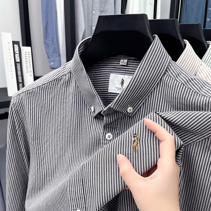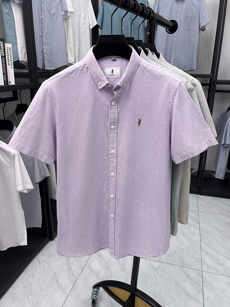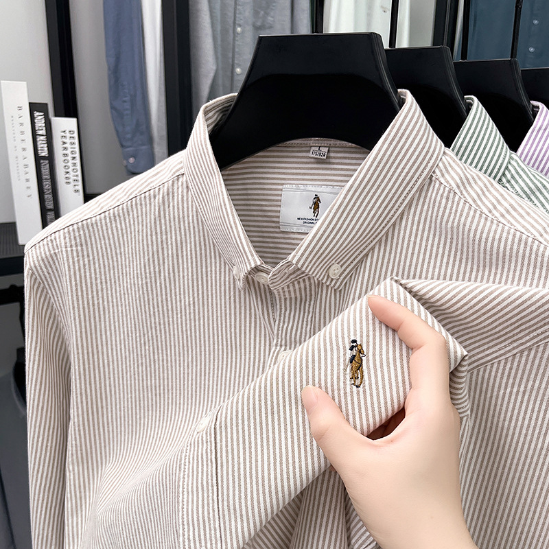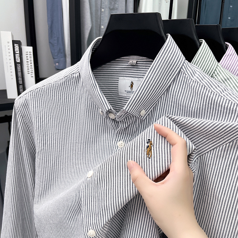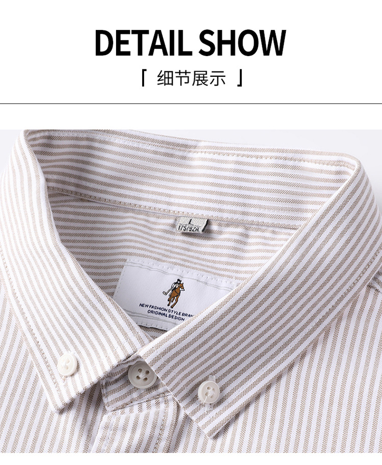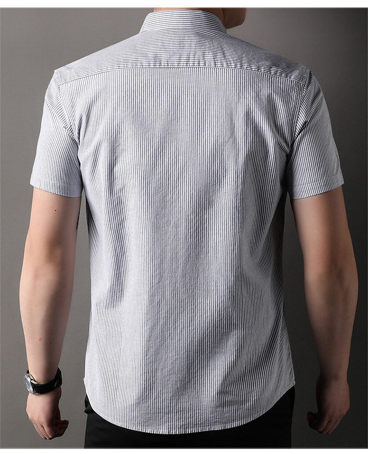 남성용 가을 100% 면 셔츠, 반팔 캐주얼 스트라이프 자수, 다림질 필요 없는 고품질 셔츠, 남성 도매스토어 가기