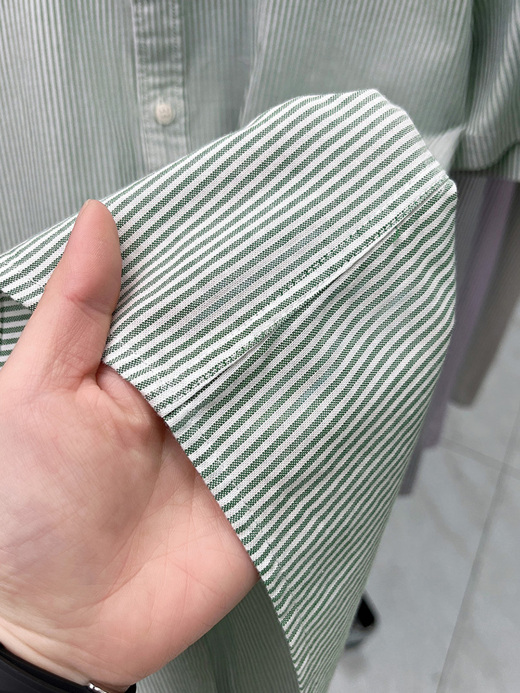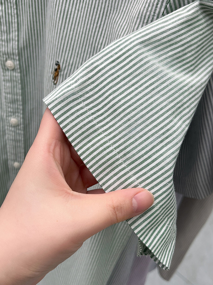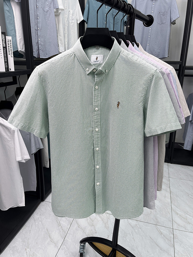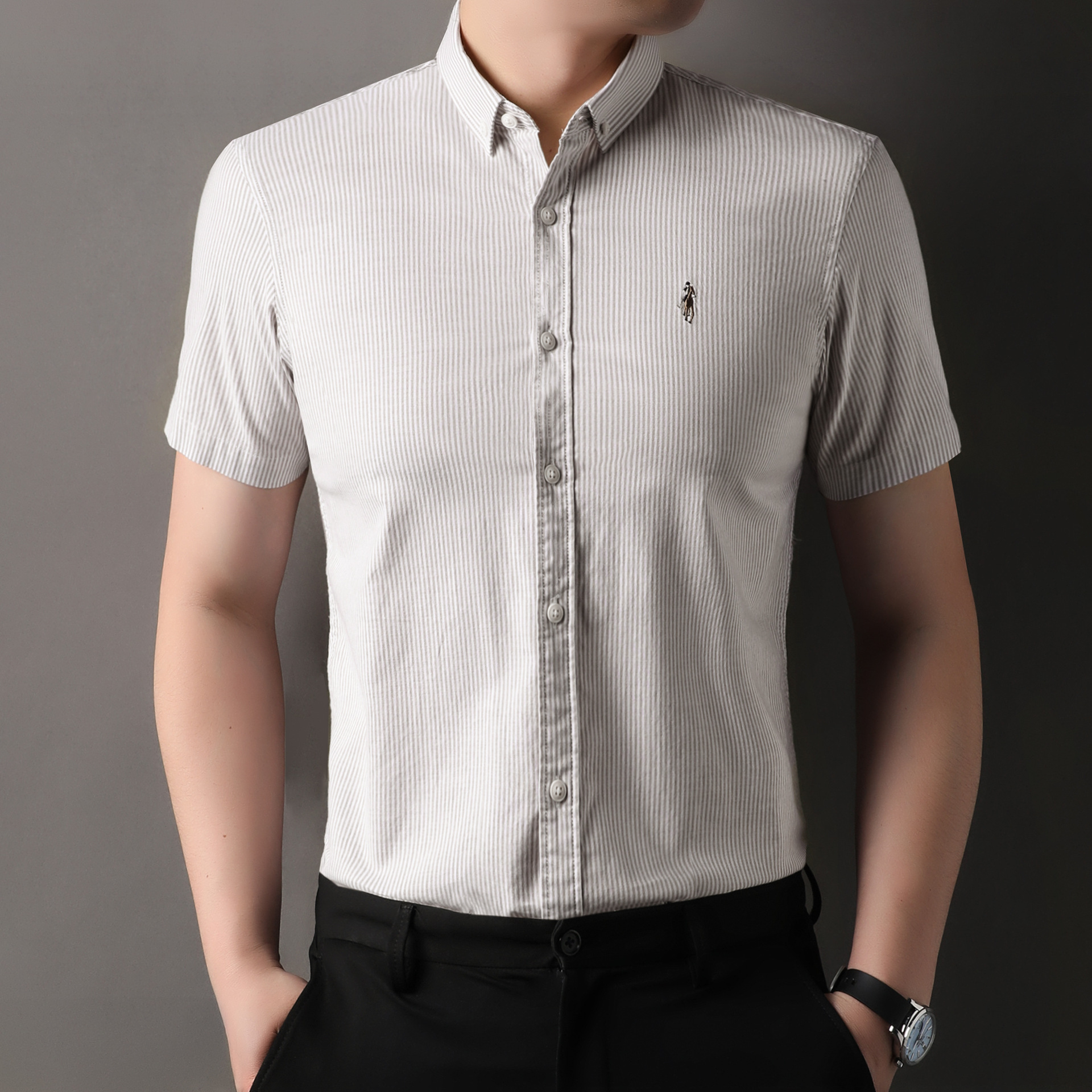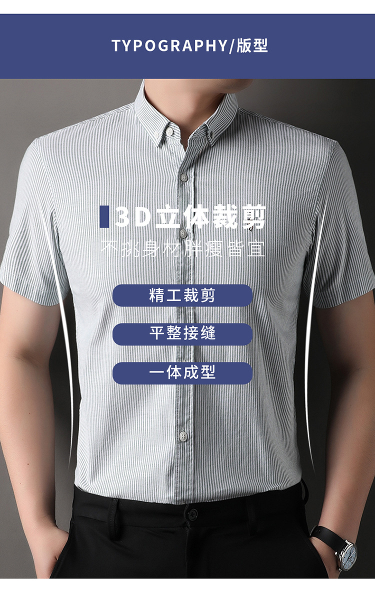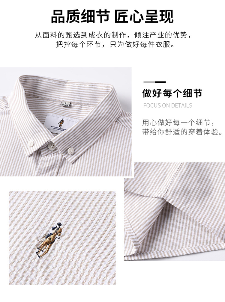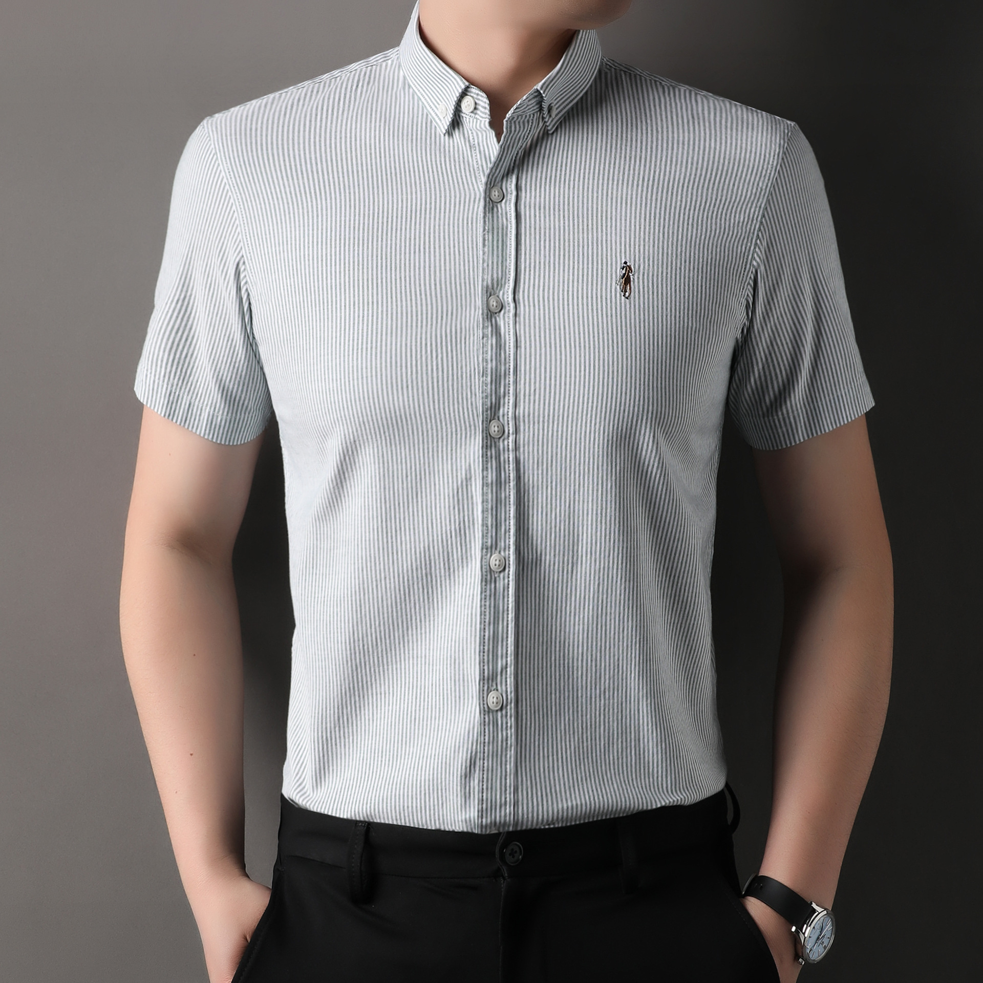 남성용 가을 100% 면 셔츠, 반팔 캐주얼 스트라이프 자수, 다림질 필요 없는 고품질 셔츠, 남성 도매스토어 가기