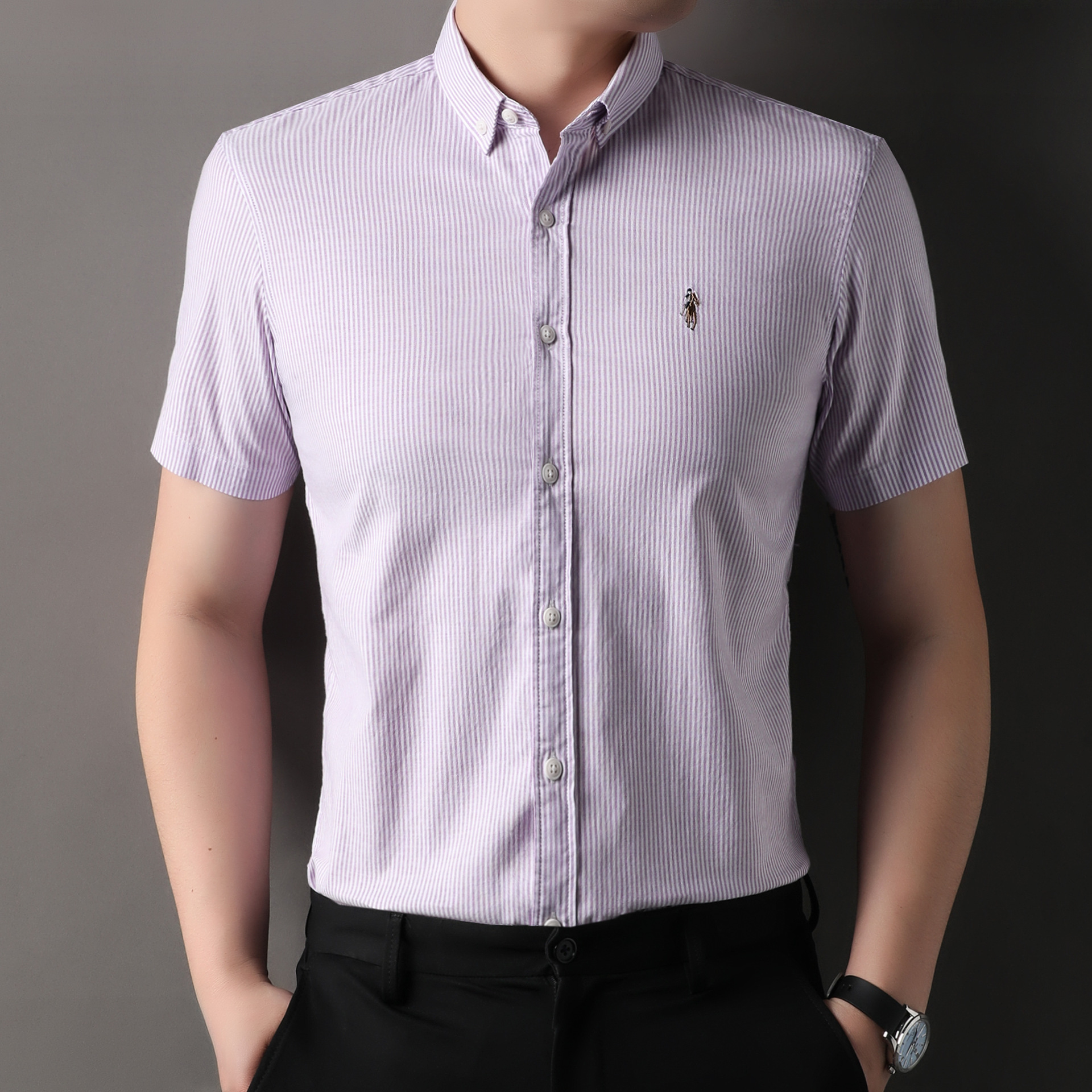 남성용 가을 100% 면 셔츠, 반팔 캐주얼 스트라이프 자수, 다림질 필요 없는 고품질 셔츠, 남성 도매