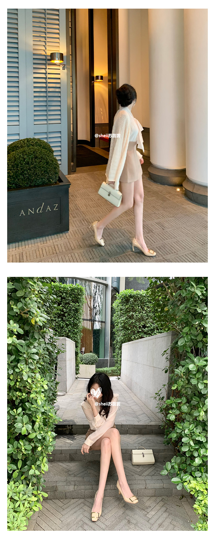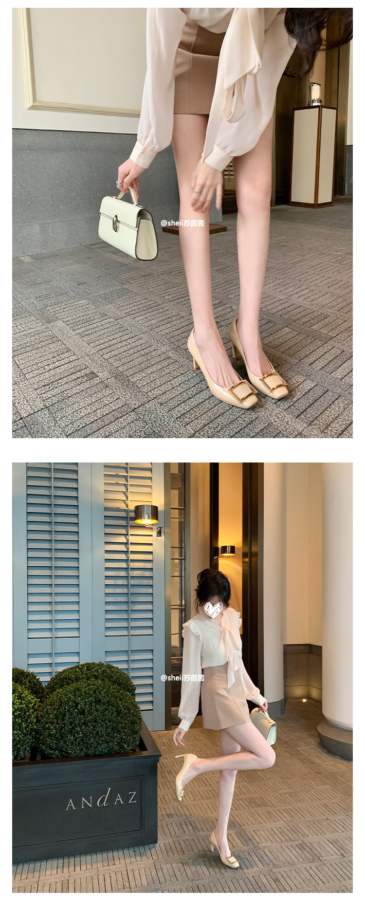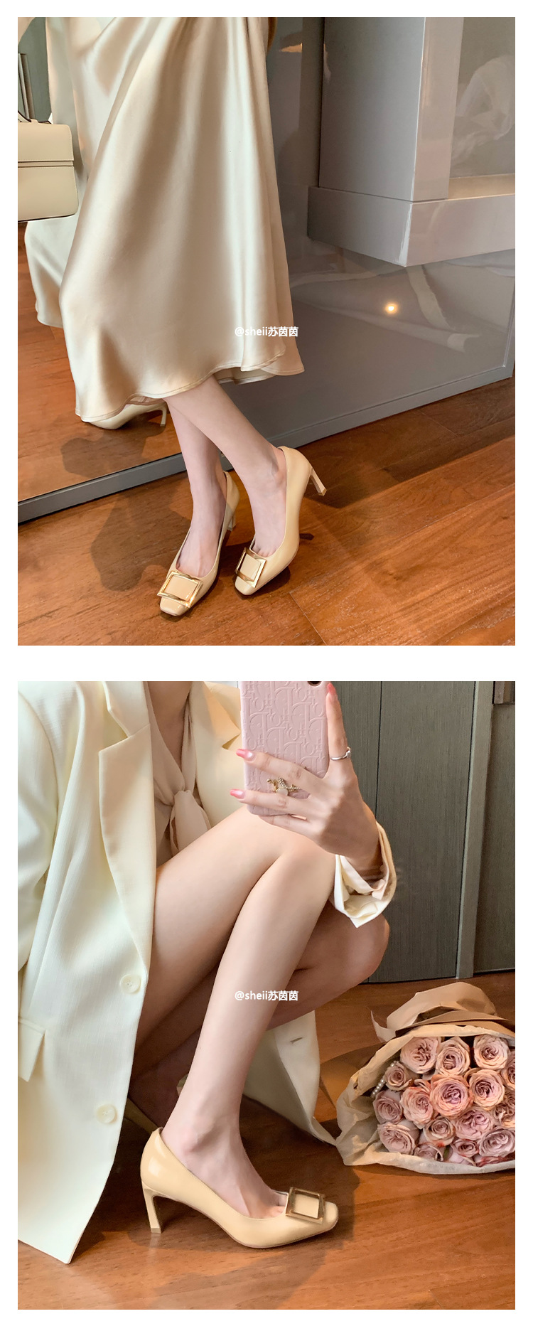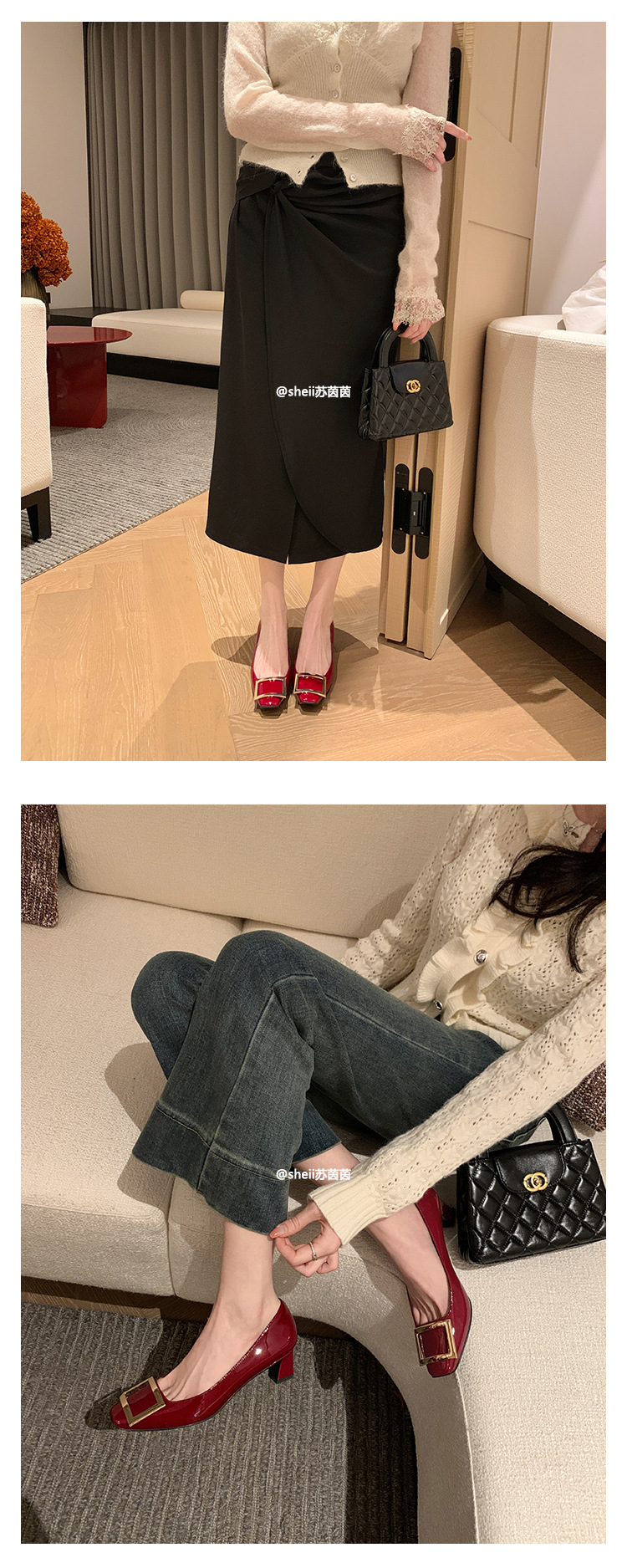 [Su Yinyin 동일] 3 개의 하이힐 ~ rv 스퀘어 헤드 스퀘어 버클 두꺼운 하이힐 통근 신발 여성용 플랫 슈즈스토어 가기