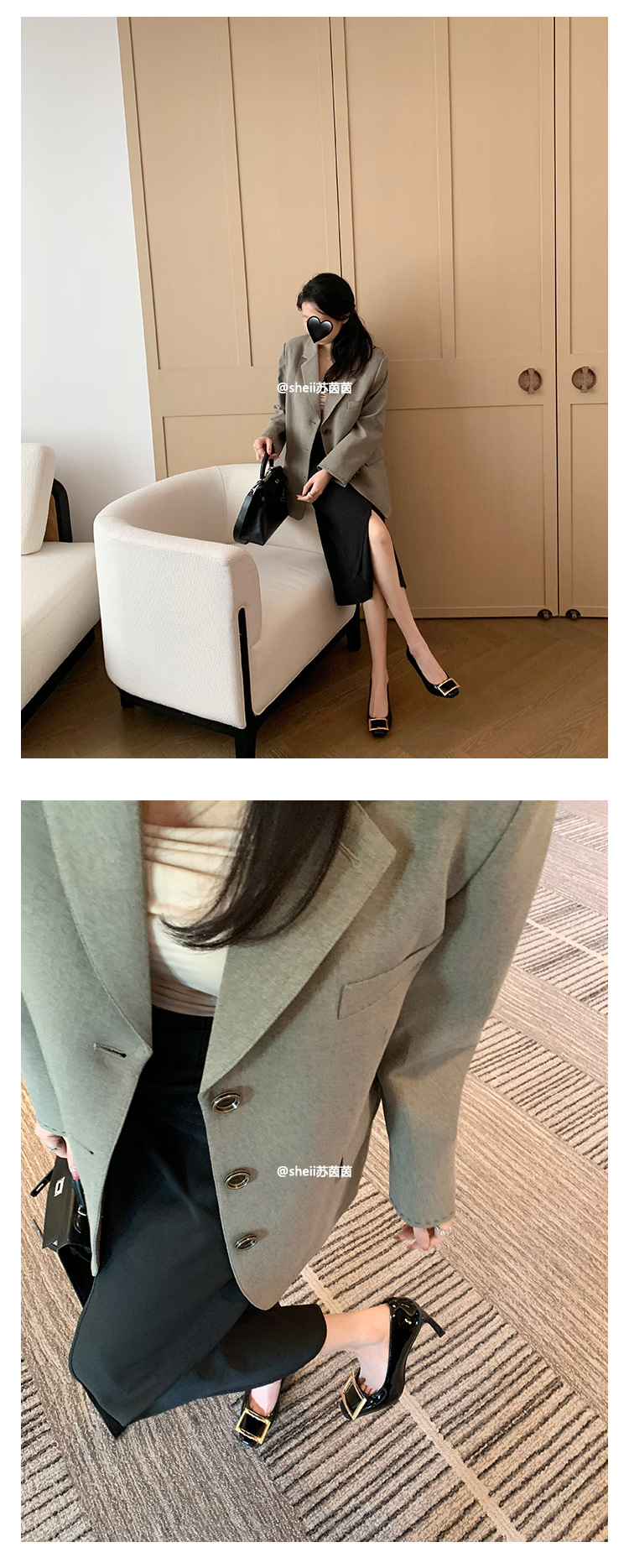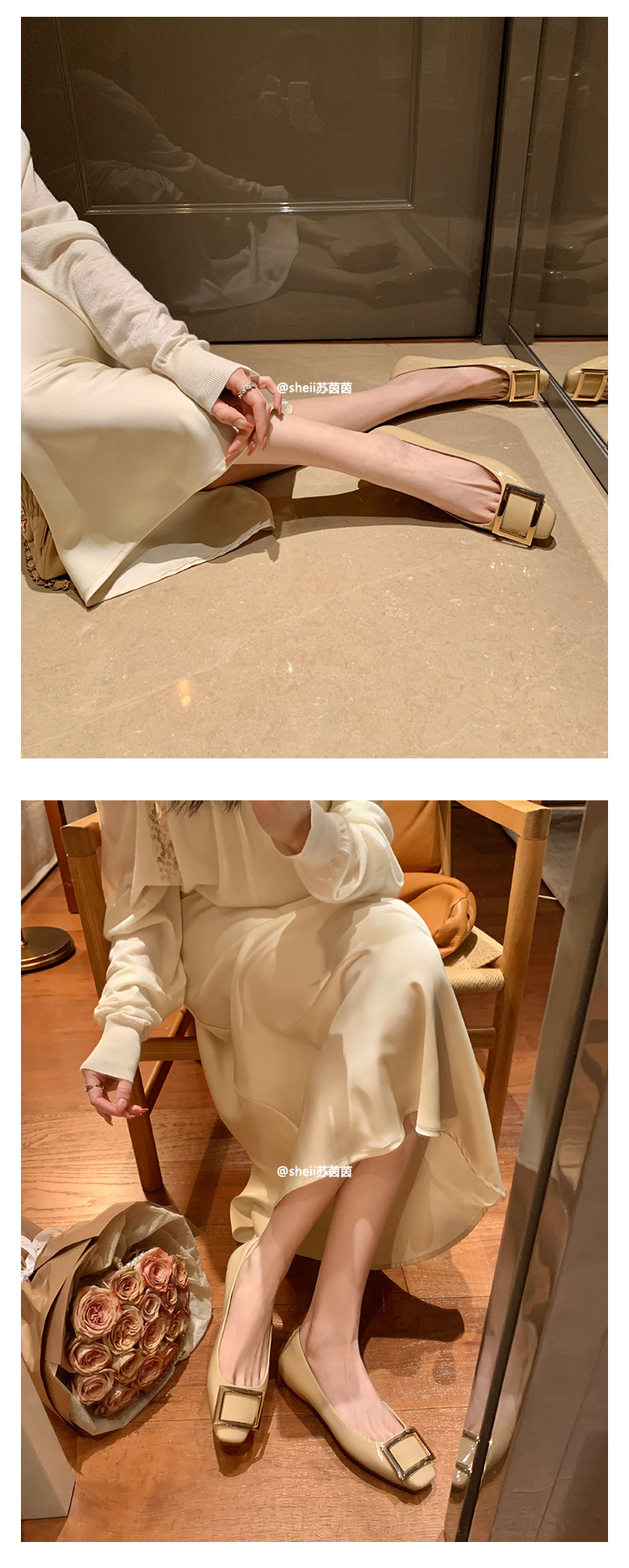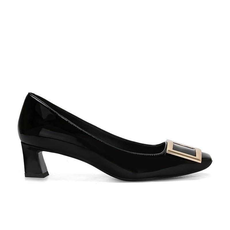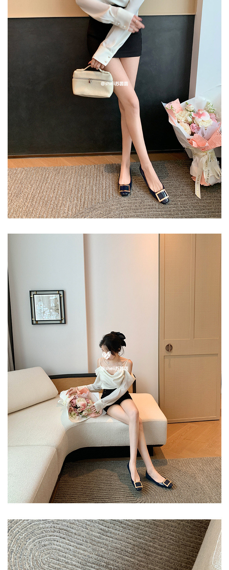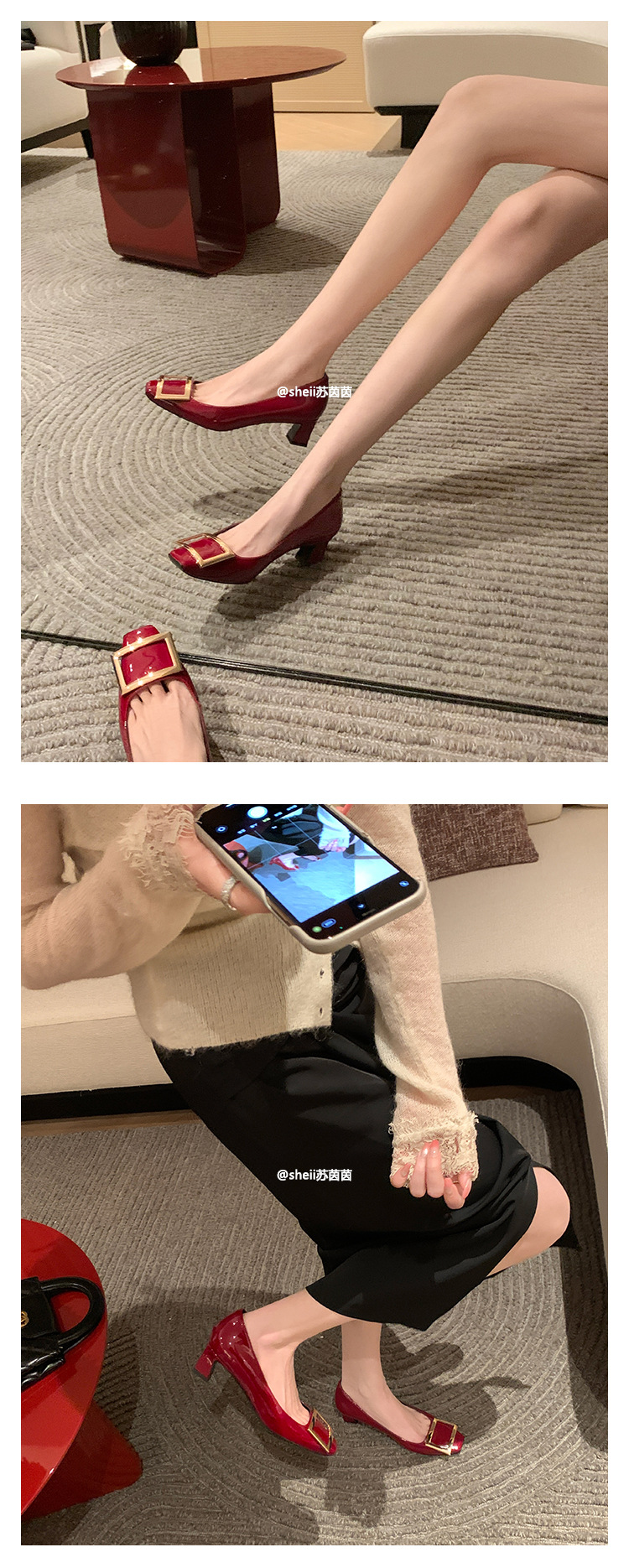 [Su Yinyin 동일] 3 개의 하이힐 ~ rv 스퀘어 헤드 스퀘어 버클 두꺼운 하이힐 통근 신발 여성용 플랫 슈즈