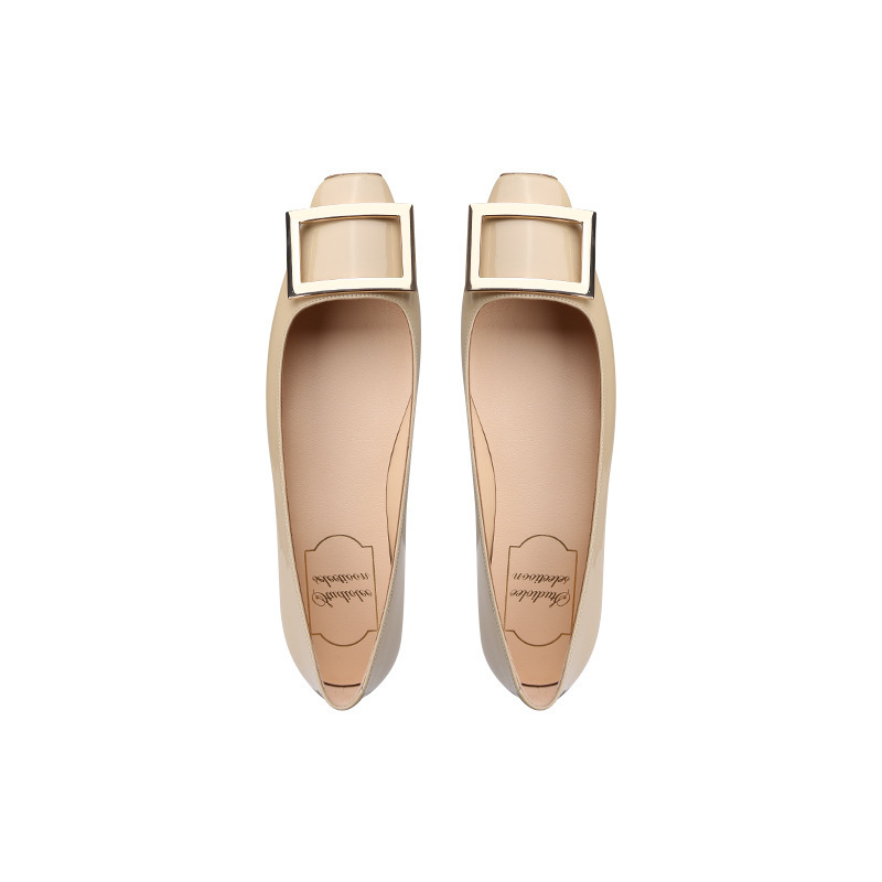 • 플랫 바닥 페이턴트 가죽 밀크티 컬러