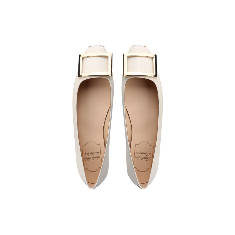 • 플랫 바닥 페이턴트 가죽 밀키 화이트