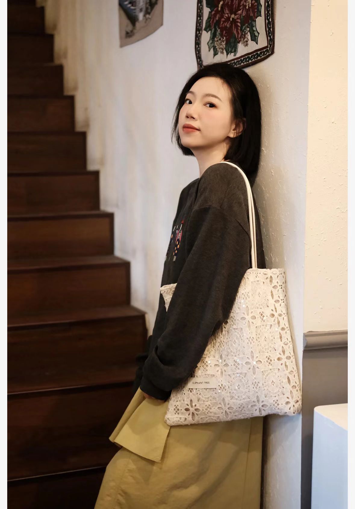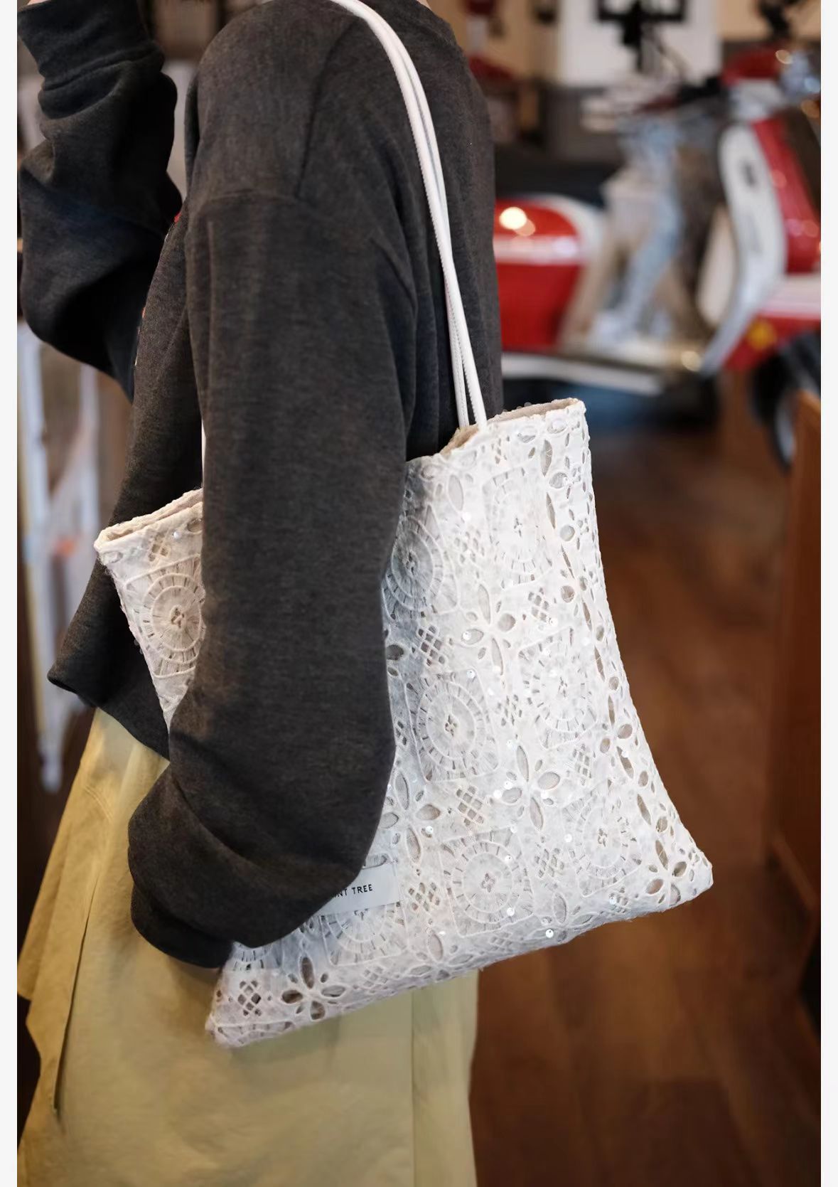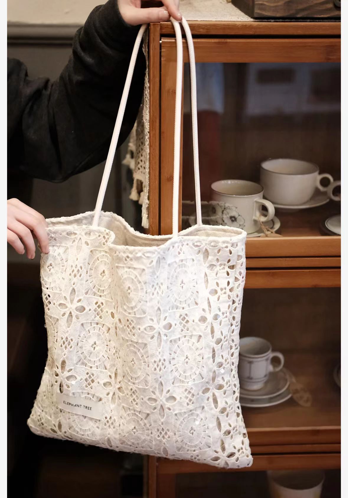 스타 어깨 가방 목가적 인 스타일 수용성 레이스 여름 부드러운 요정 대용량 통근 토트 백 여성 트렌디스토어 가기