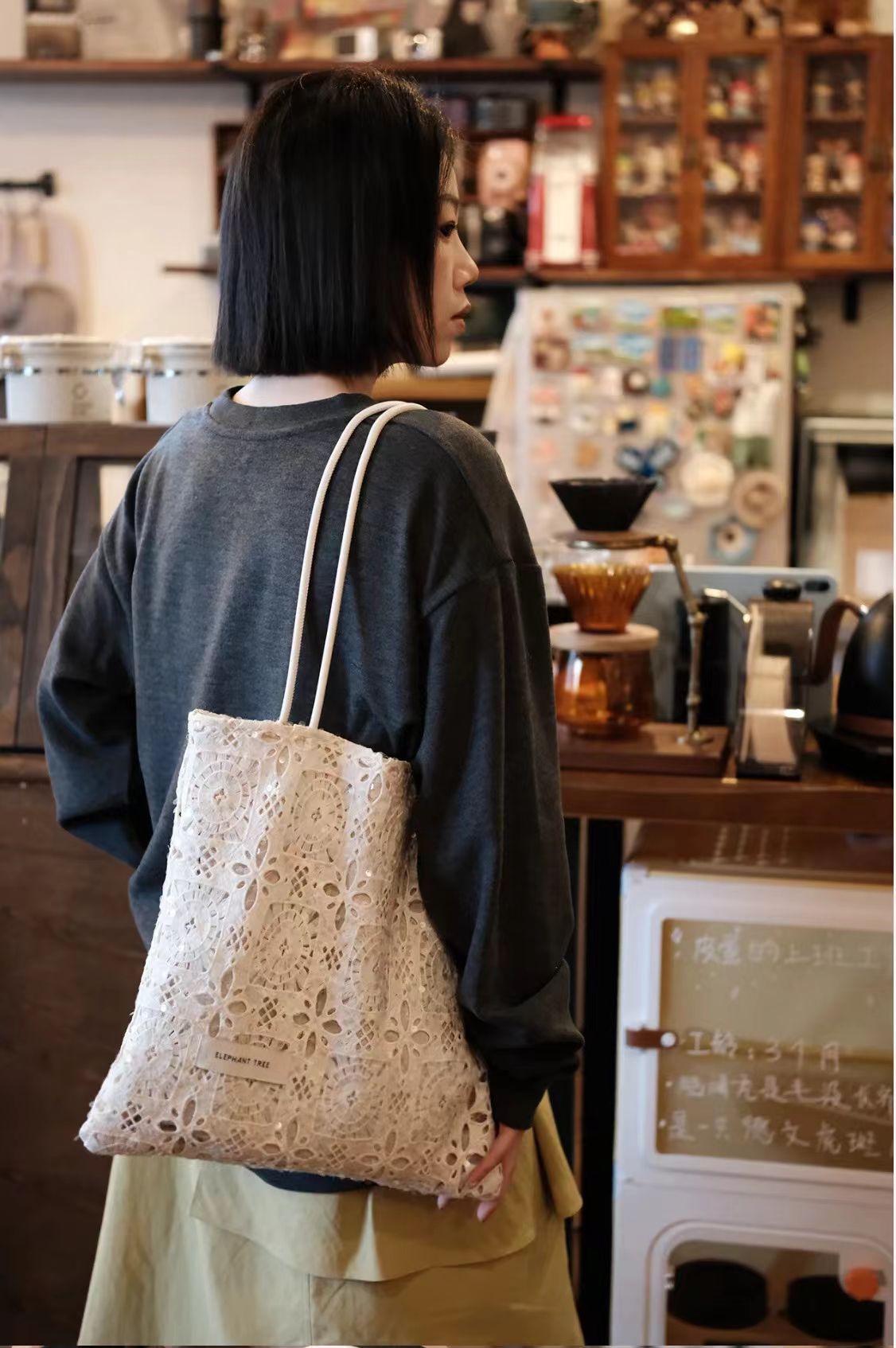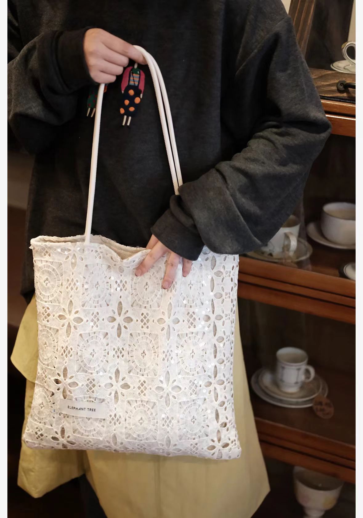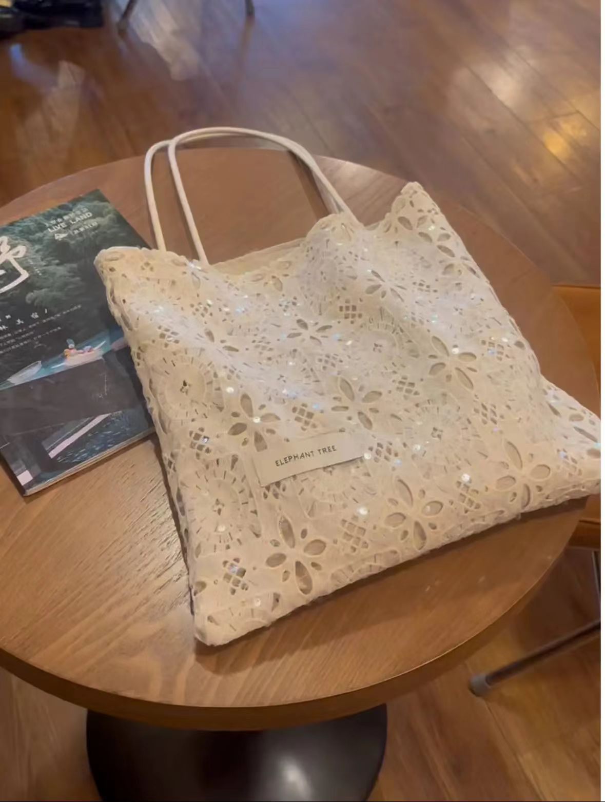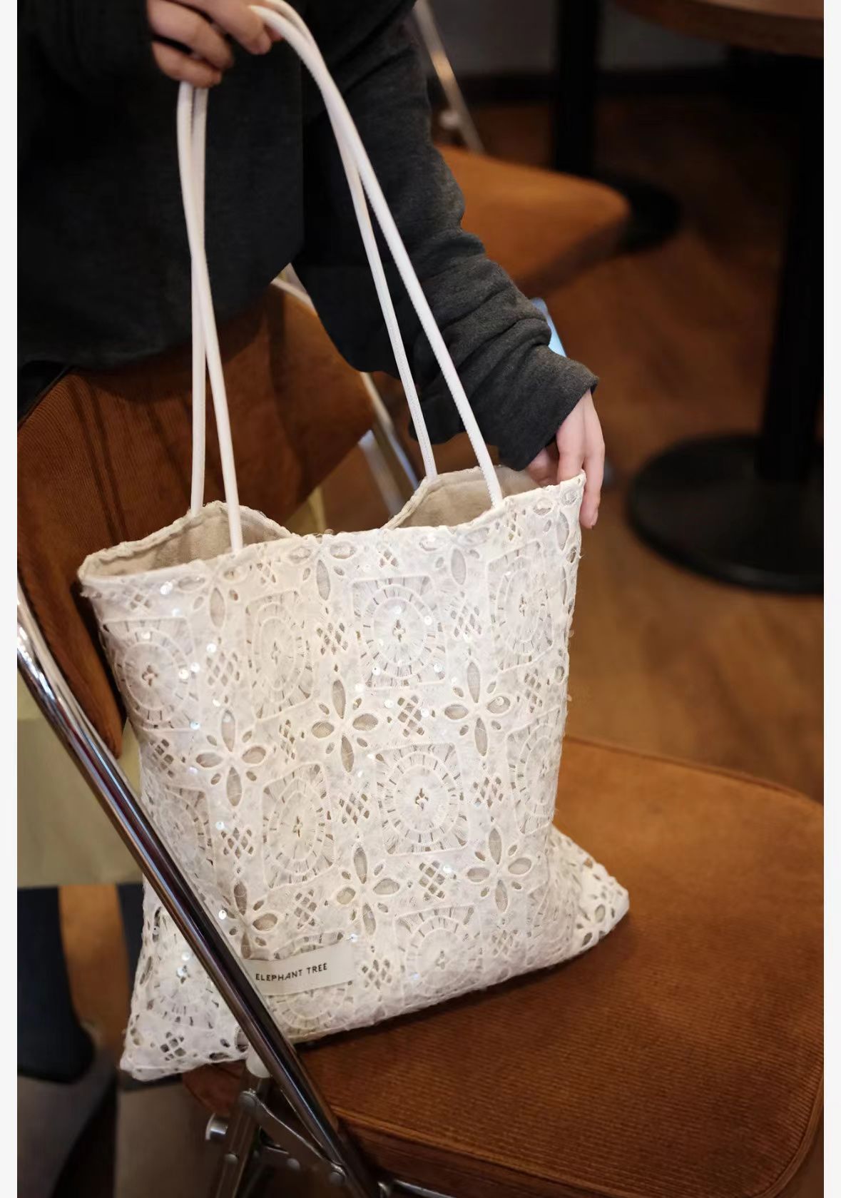 스타 어깨 가방 목가적 인 스타일 수용성 레이스 여름 부드러운 요정 대용량 통근 토트 백 여성 트렌디스토어 가기