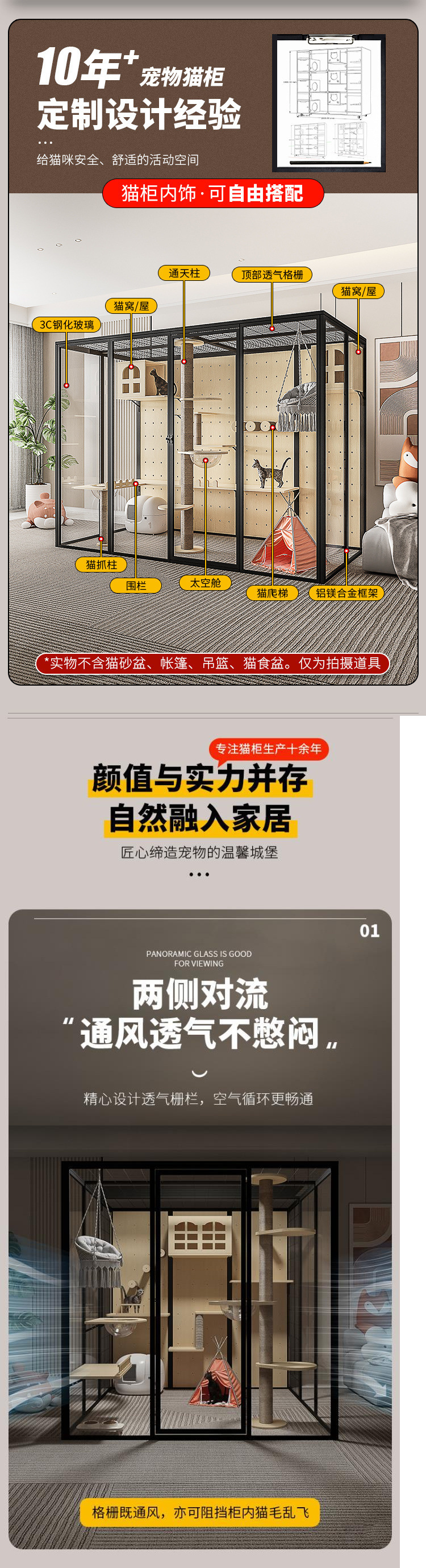 파노라마 유리 고양이 빌라 고양이 집 고양이 집 대형 럭셔리 대형 고양이 케이지 고양이 집 세트 애완 동물 가게 고양이 캐비닛