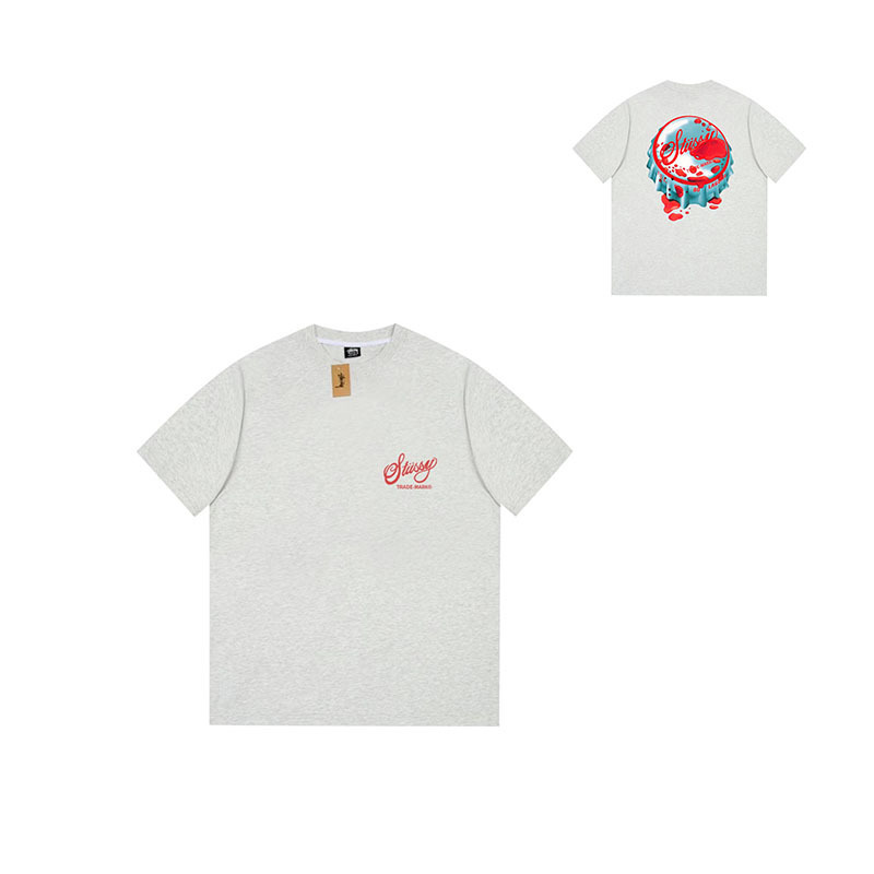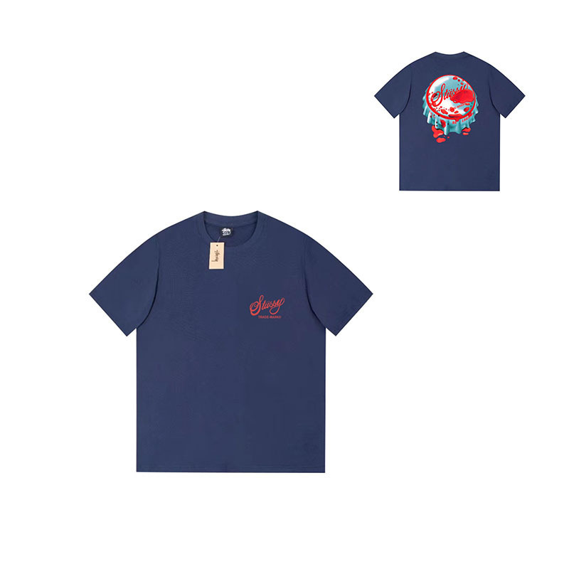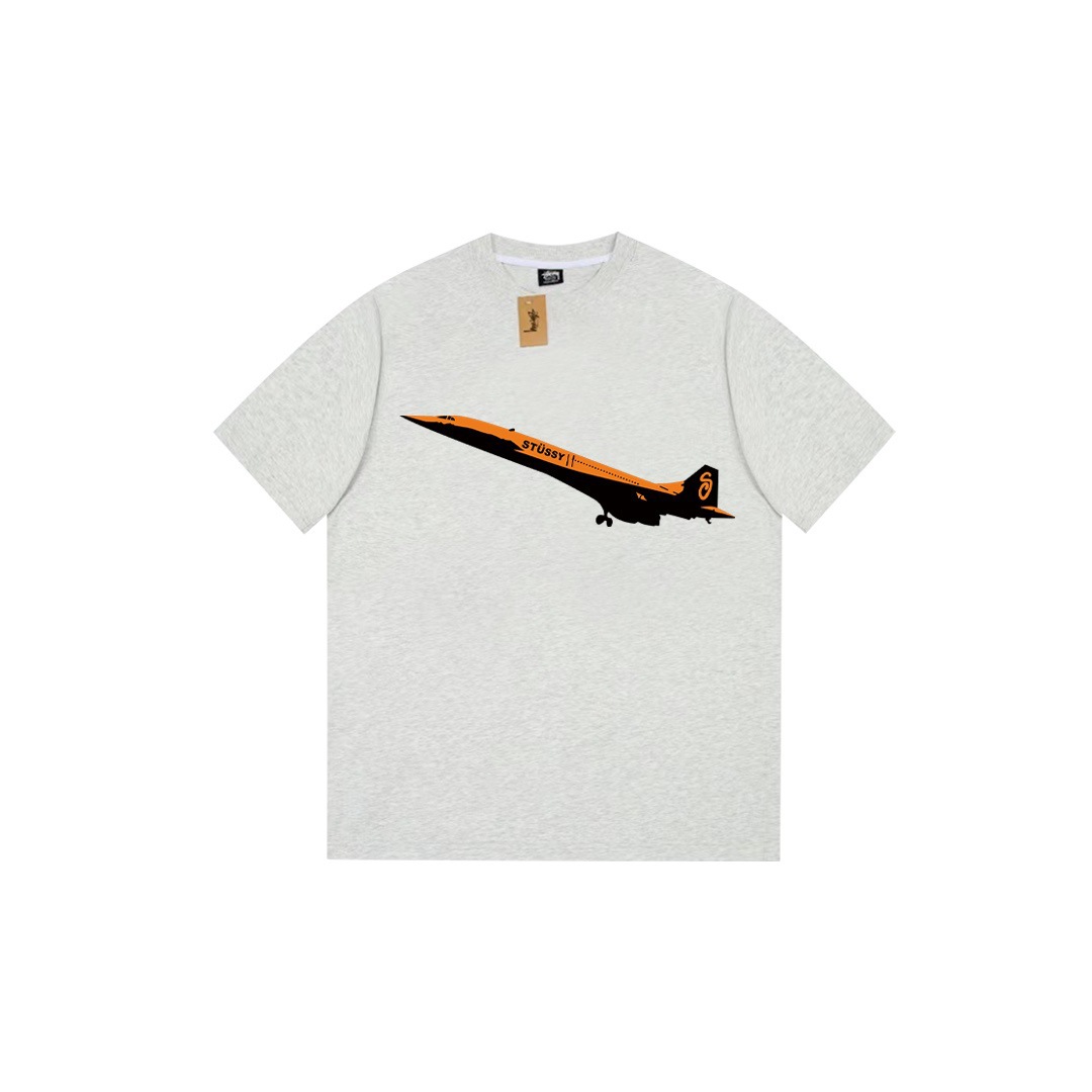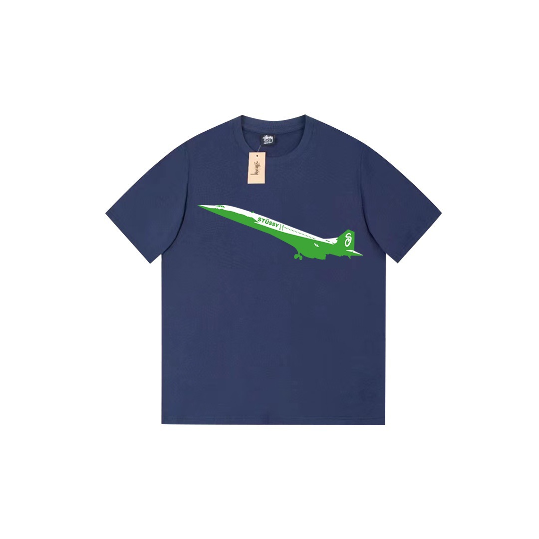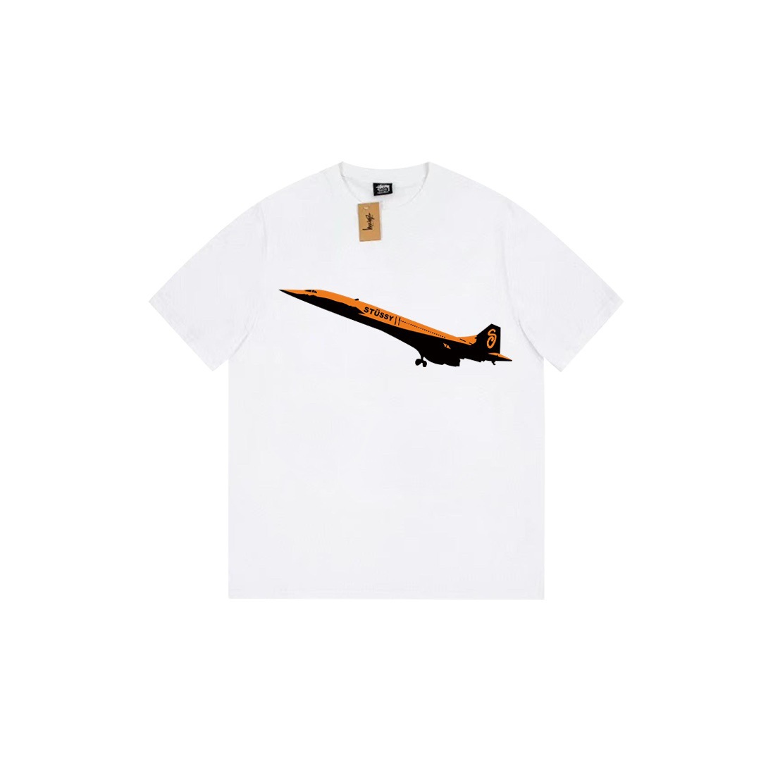 유럽과 미국의 국경 간 트렌디 브랜드 stussy Black 8 항공기 여름 클래식 편지 남성과 여성을위한 반팔 티셔츠
