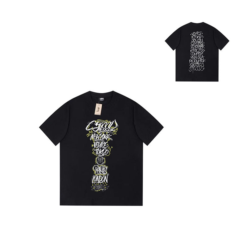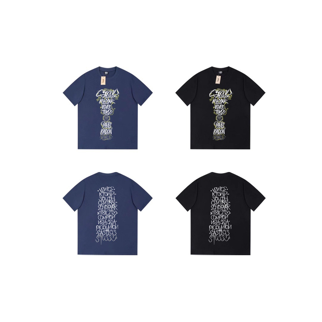 유럽과 미국의 국경 간 트렌디 브랜드 stussy Black 8 항공기 여름 클래식 편지 남성과 여성을위한 반팔 티셔츠스토어 가기