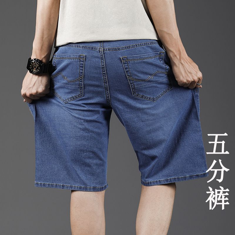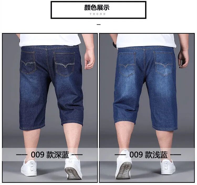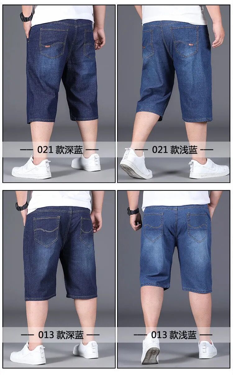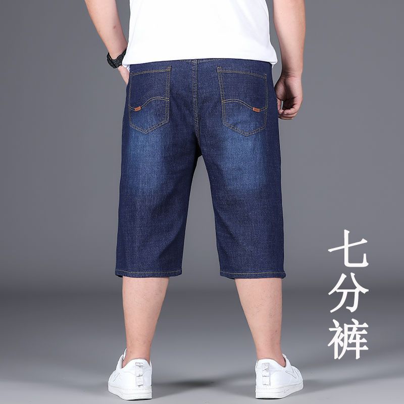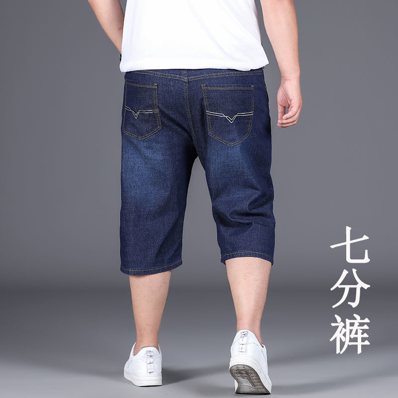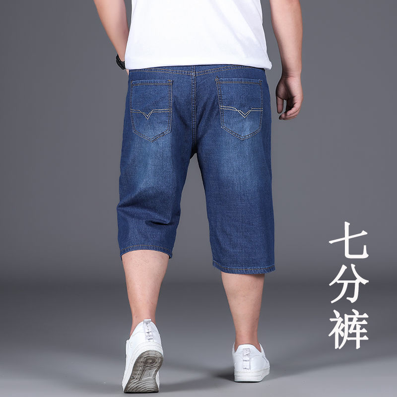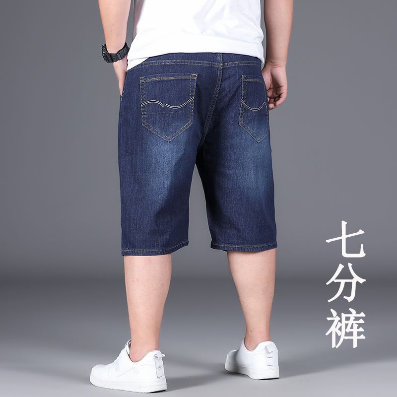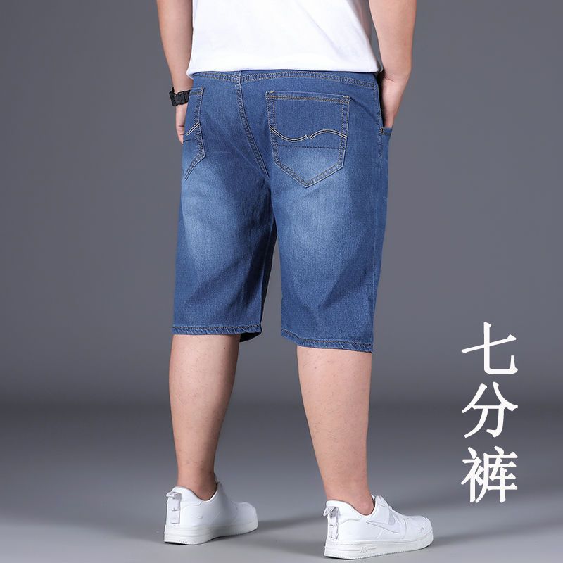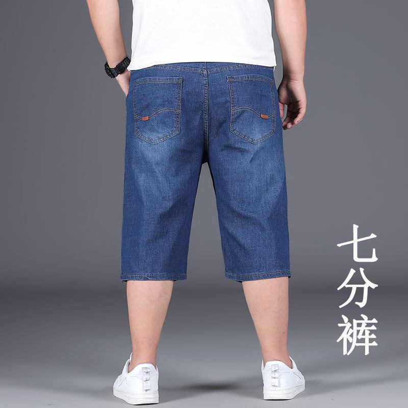여름 얇은 데님 반바지 남성 5 점 바지 느슨한 스트레이트 팬츠 플러스 플러스 사이즈 스트레치 자른 높은 허리 바지스토어 가기