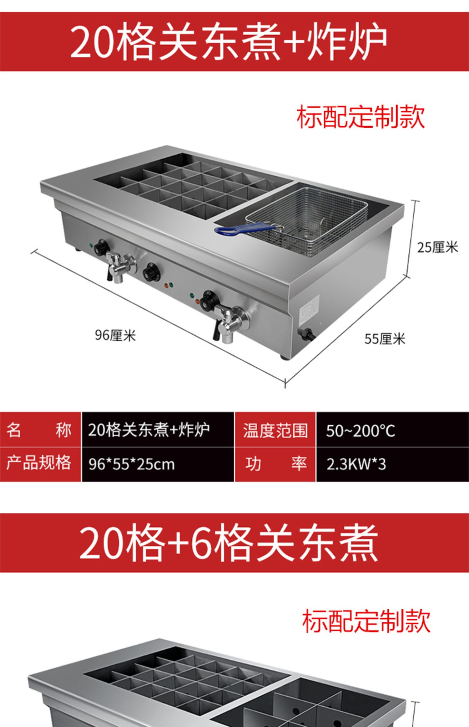 전기 난방 kwantung 요리 기계 상업 20 그리드 40 그리드 향 장비 간식 생선 계란 매운 냄비 프라이어 요리 국수
