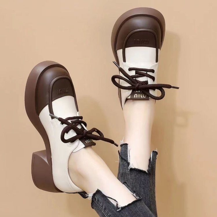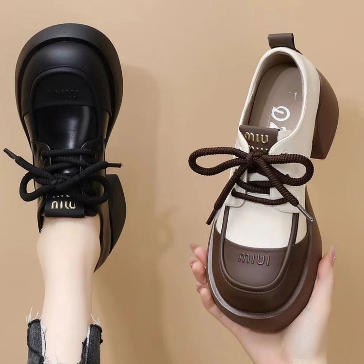 부드러운 가죽 영국 스타일의 작은 가죽 신발 여성의 2025 새로운 봄 블랙 패셔너블 올 매치 레이스 업 두꺼운 밑창 로퍼스토어 가기