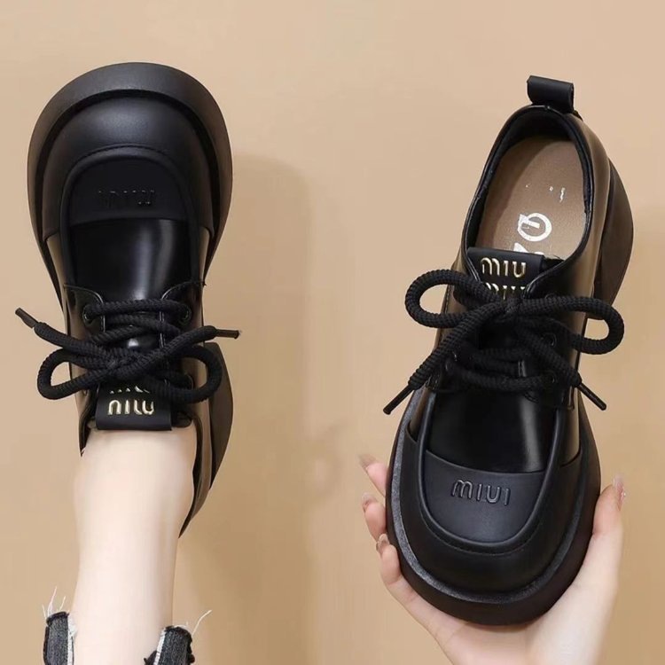 부드러운 가죽 영국 스타일의 작은 가죽 신발 여성의 2025 새로운 봄 블랙 패셔너블 올 매치 레이스 업 두꺼운 밑창 로퍼