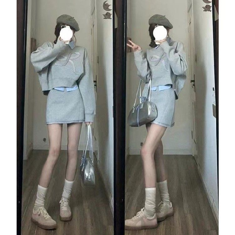 대학 스타일 전체 세트 착용 원피스 여성의 2025 년 봄과 가을 새로운 하이 엔드 스웨트 셔츠 3 피스 세트스토어 가기