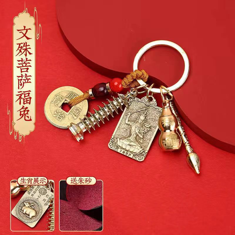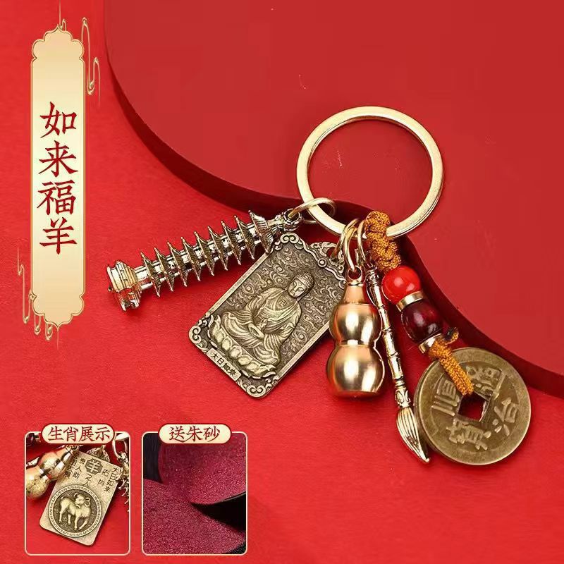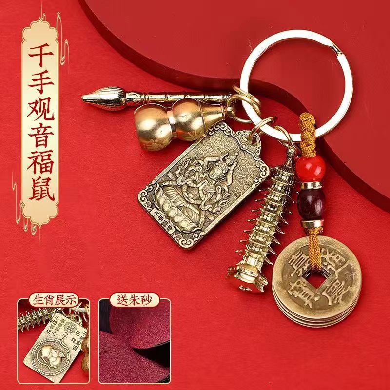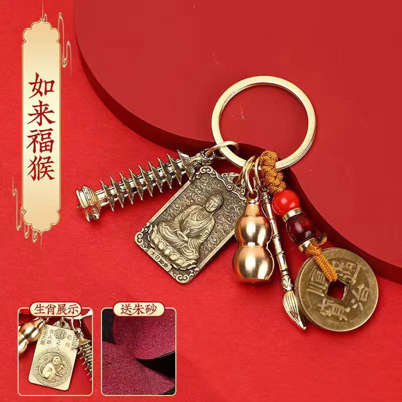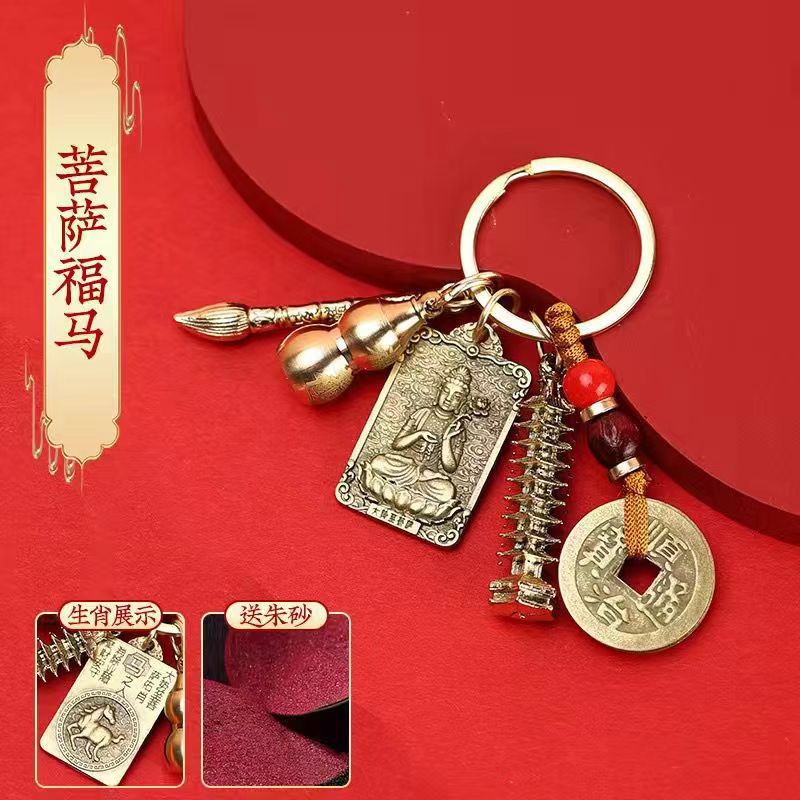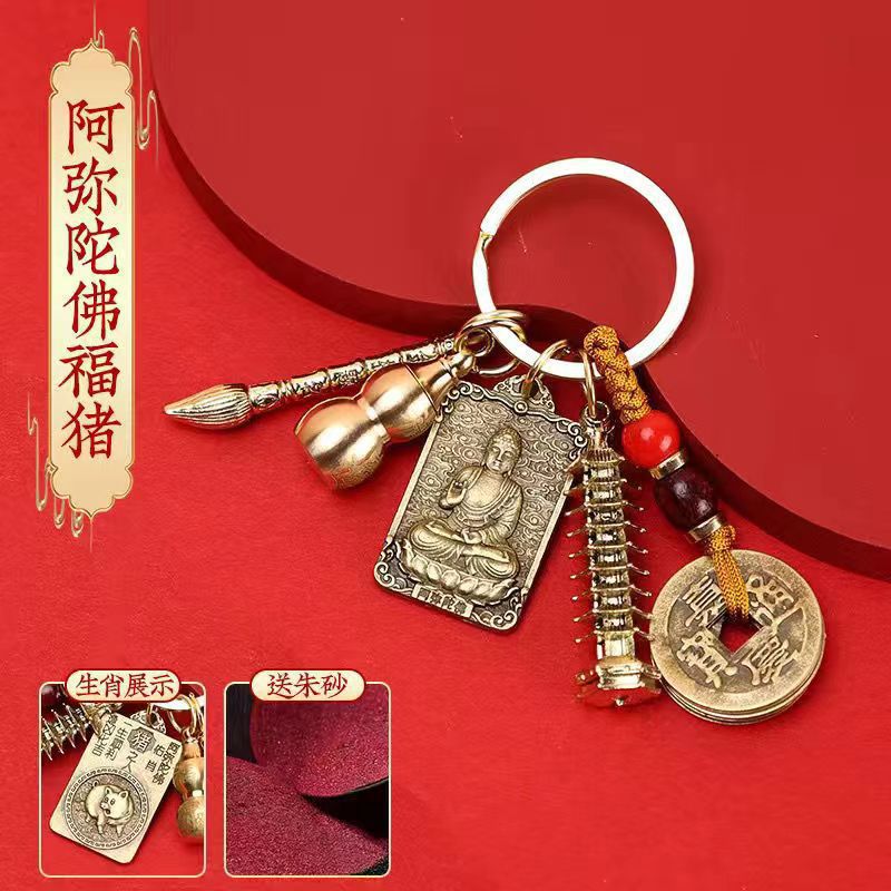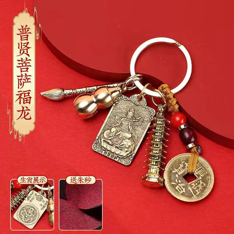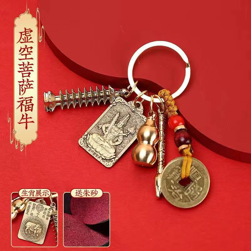 황동 조롱박 5 명의 황제 돈 1 명의 학생 책가방 펜던트 양면 12 조디악 수호 성인 행운의 카드 열쇠 고리
