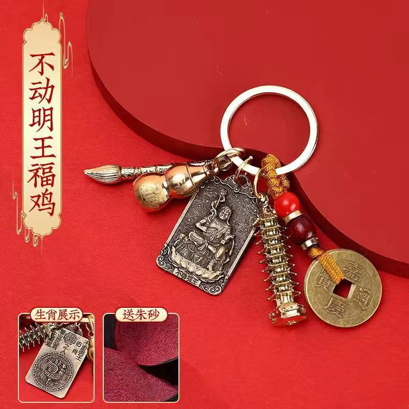 황동 조롱박 5 명의 황제 돈 1 명의 학생 책가방 펜던트 양면 12 조디악 수호 성인 행운의 카드 열쇠 고리스토어 가기