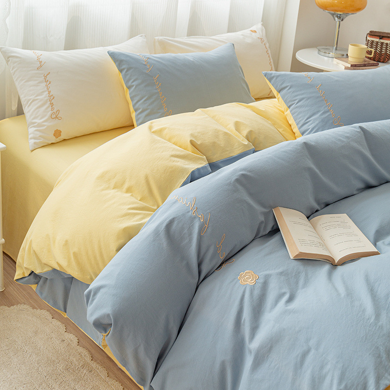 코튼 침대 4 피스 세트 코튼 2025 새로운 기숙사 싱글 퀼트 커버 침대 시트 침구 면 침대 시트 3 피스 세트