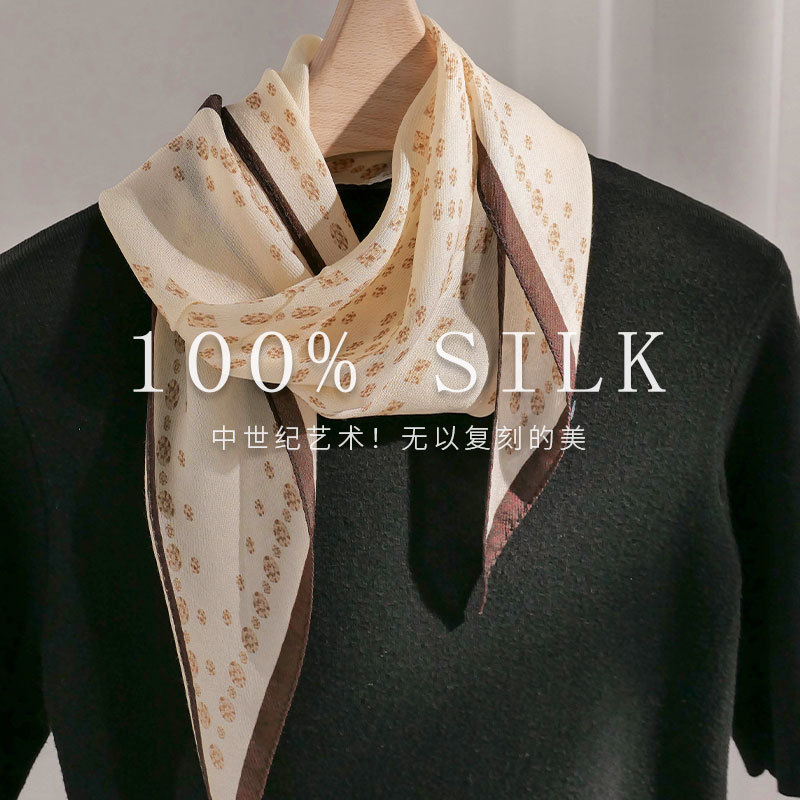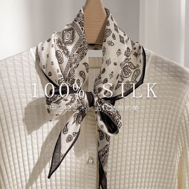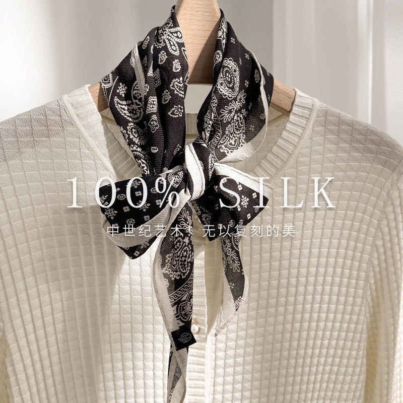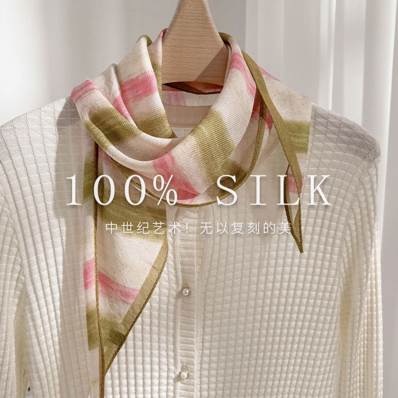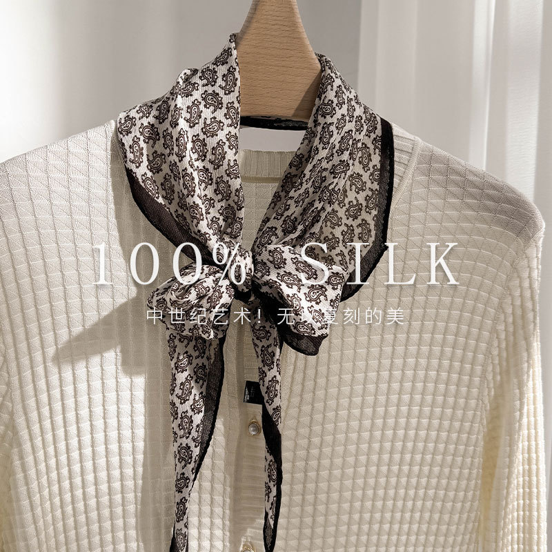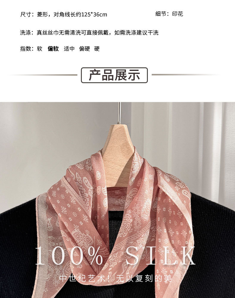 한국 스타일 신상 스카프 여성용 실크+울 봄 핑크색 스카프 레트로 캐슈넛 무늬 작은 스카프스토어 가기