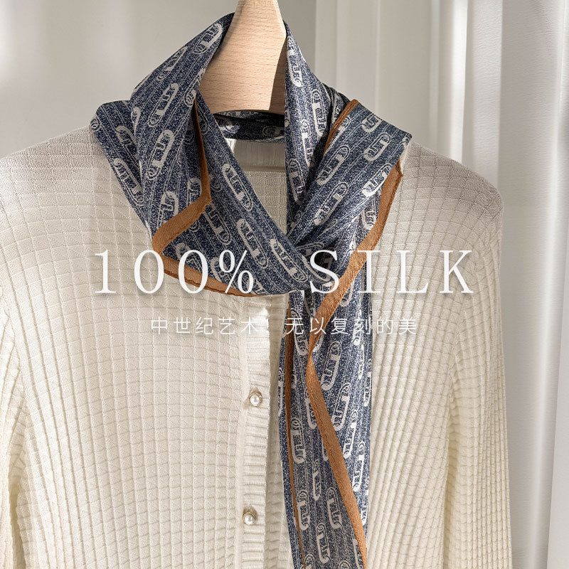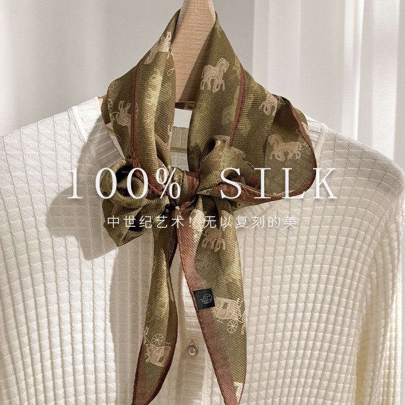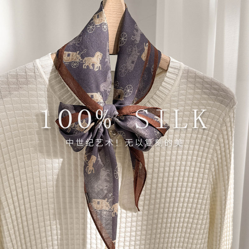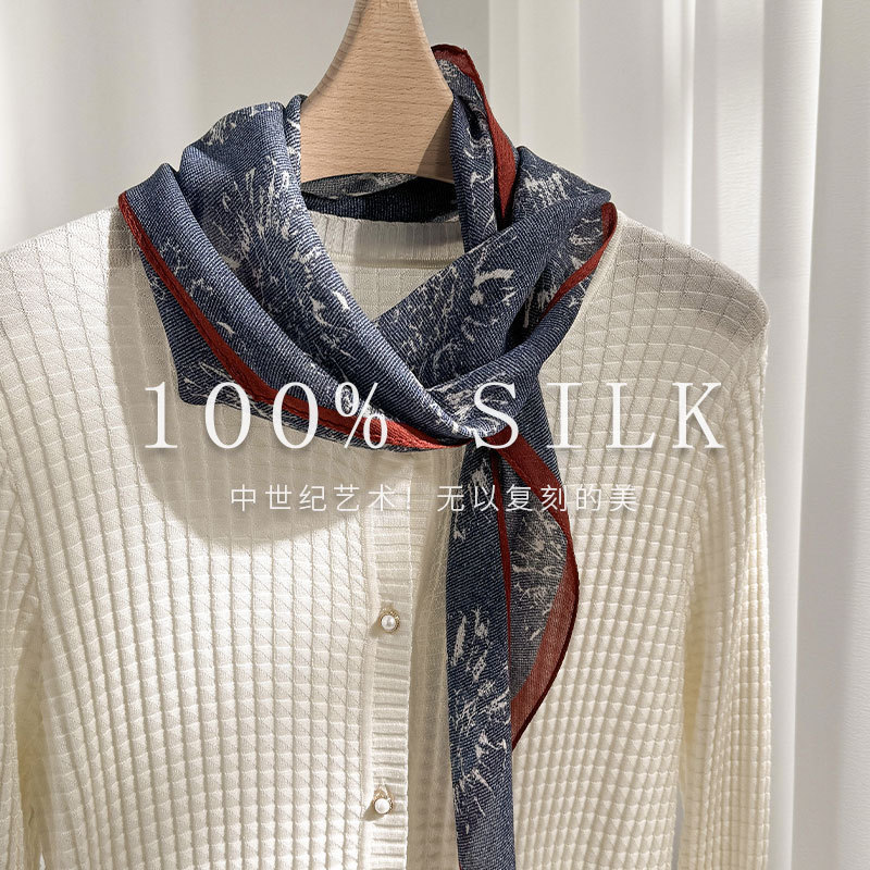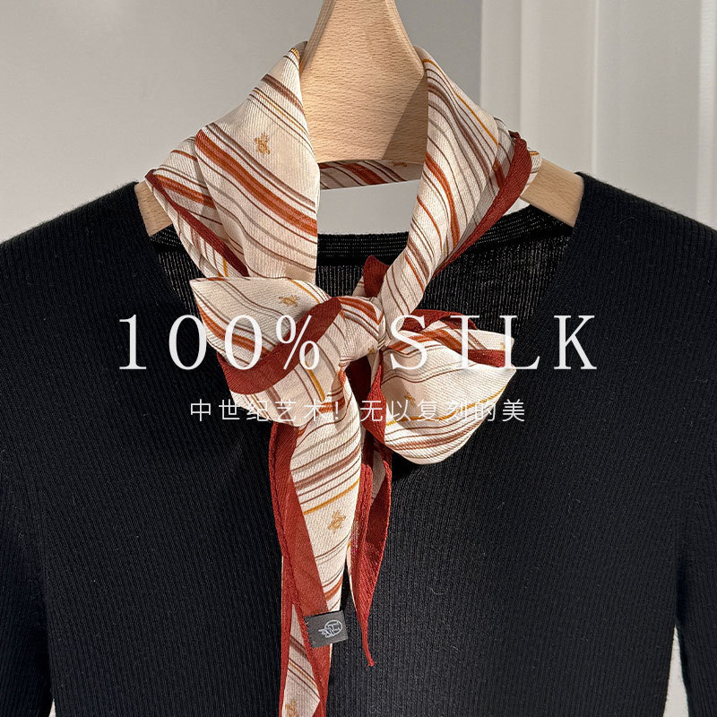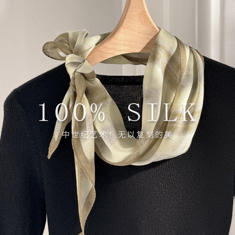 한국 스타일 신상 스카프 여성용 실크+울 봄 핑크색 스카프 레트로 캐슈넛 무늬 작은 스카프스토어 가기