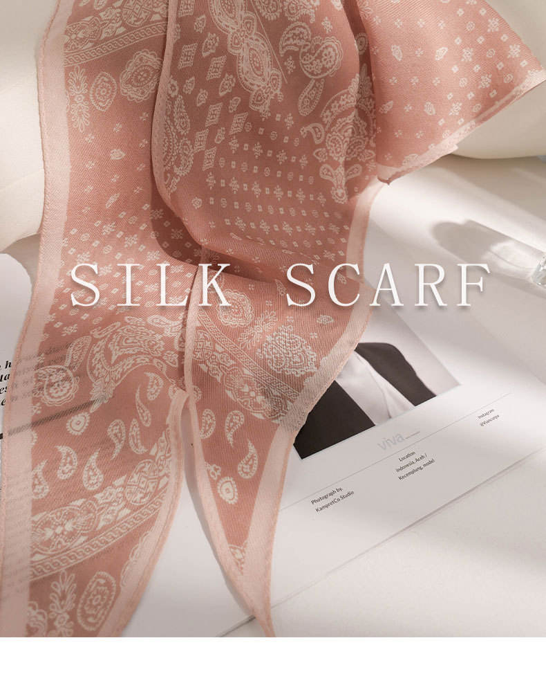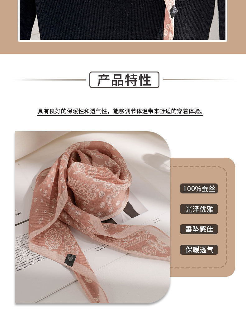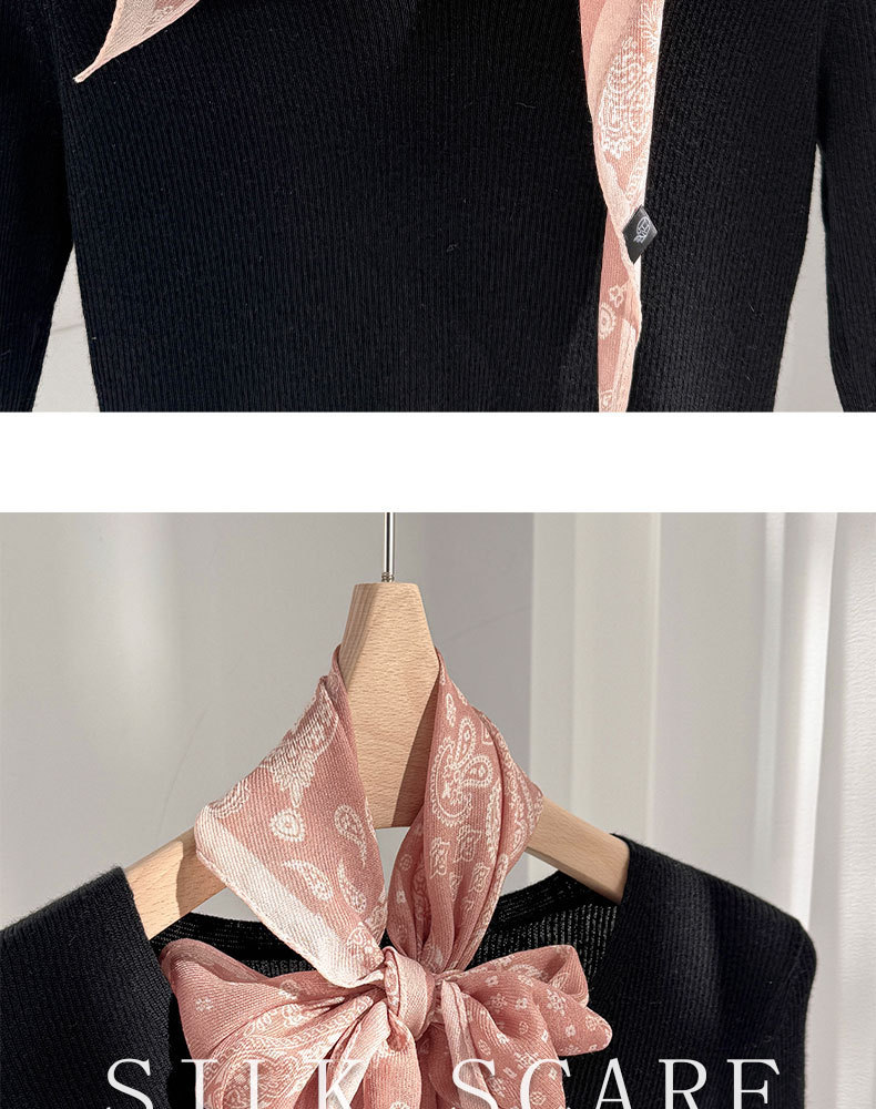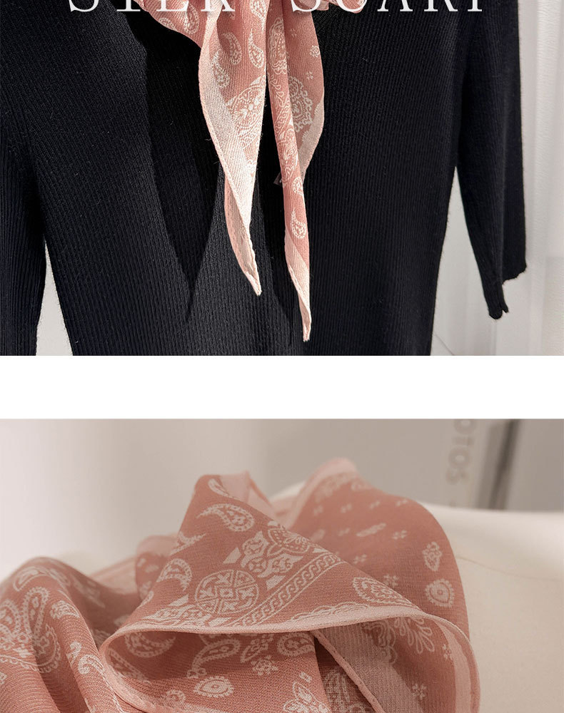 한국 스타일 신상 스카프 여성용 실크+울 봄 핑크색 스카프 레트로 캐슈넛 무늬 작은 스카프