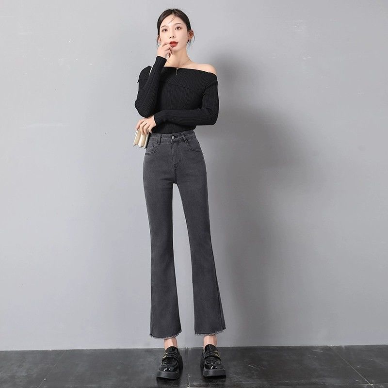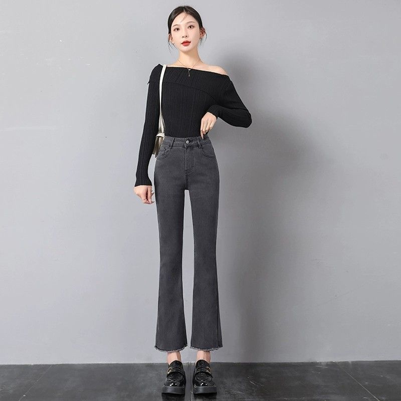 여성용 스모크 그레이 데님 부츠컷 팬츠 2025 봄 가을 신상 하이웨이스트 슬리밍 스트레치 플레어 팬츠