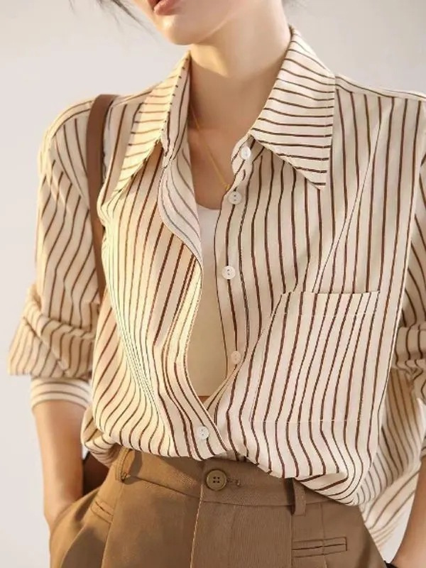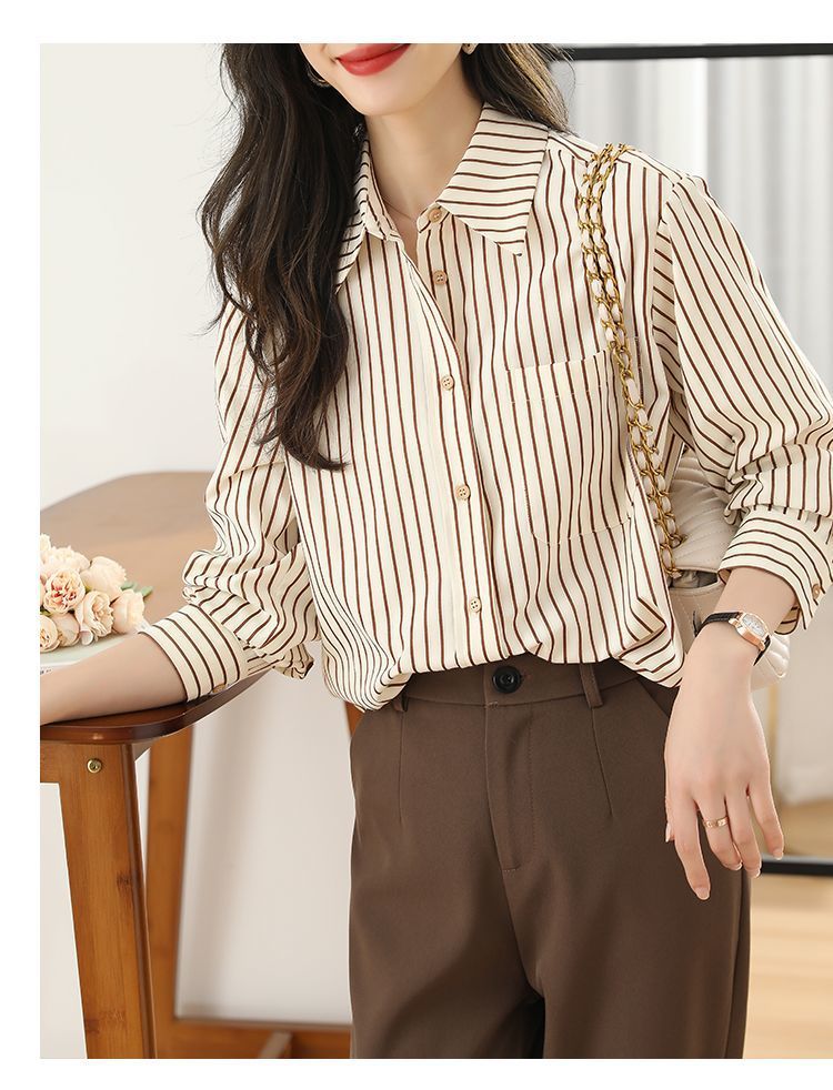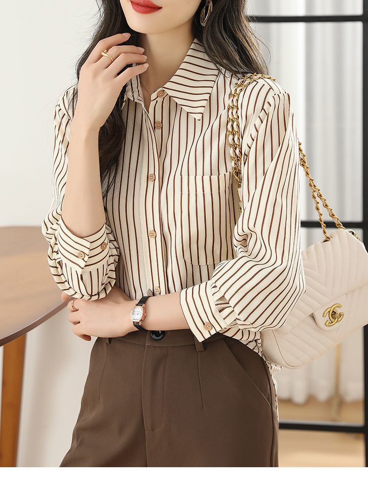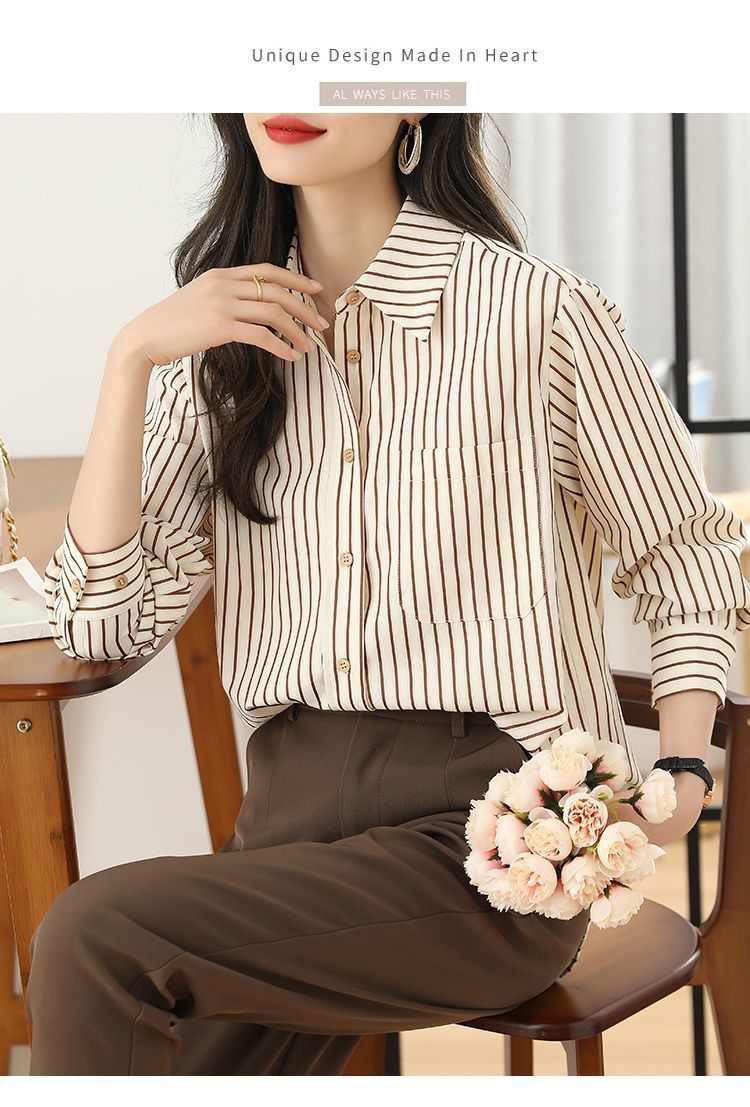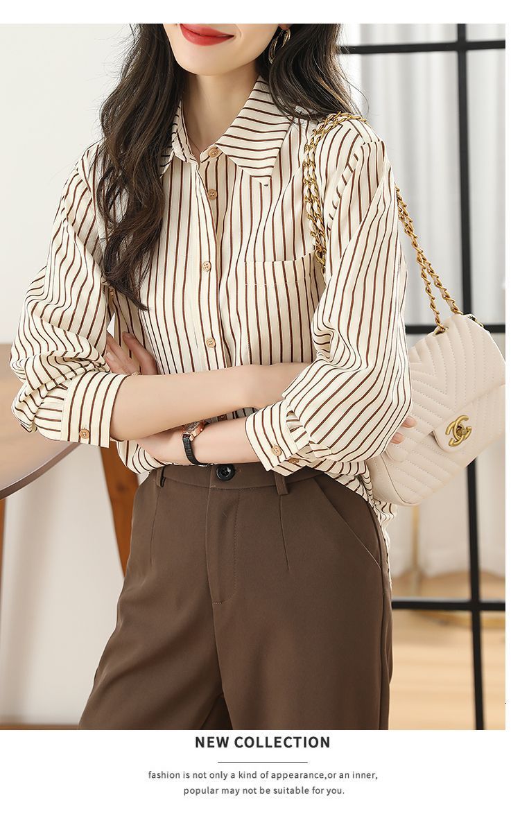 줄무늬 셔츠 여성의 봄과 가을 새로운 패션 캐주얼 한국 스타일 외부 셔츠 여성을위한 프랑스 하이 엔드 긴팔 탑