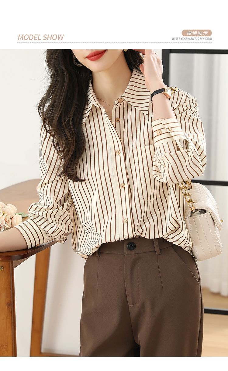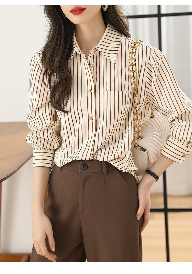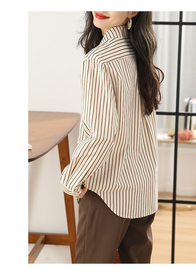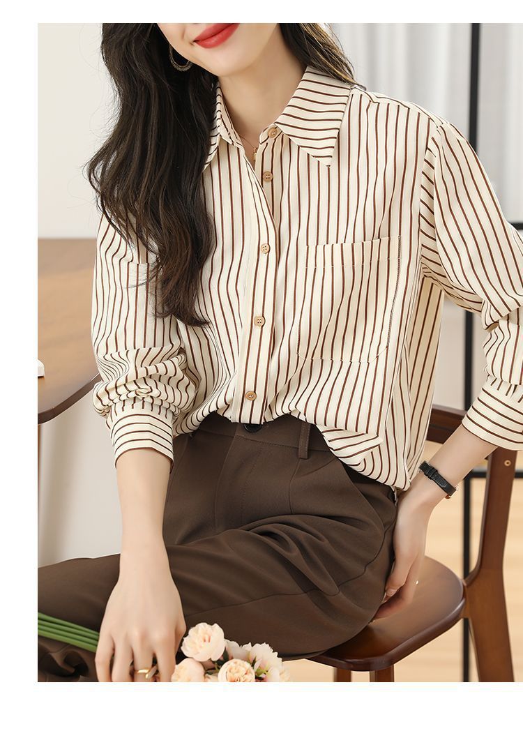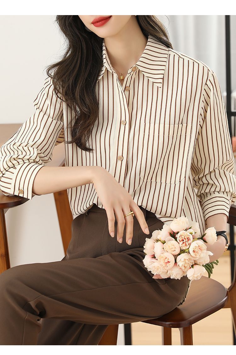 줄무늬 셔츠 여성의 봄과 가을 새로운 패션 캐주얼 한국 스타일 외부 셔츠 여성을위한 프랑스 하이 엔드 긴팔 탑