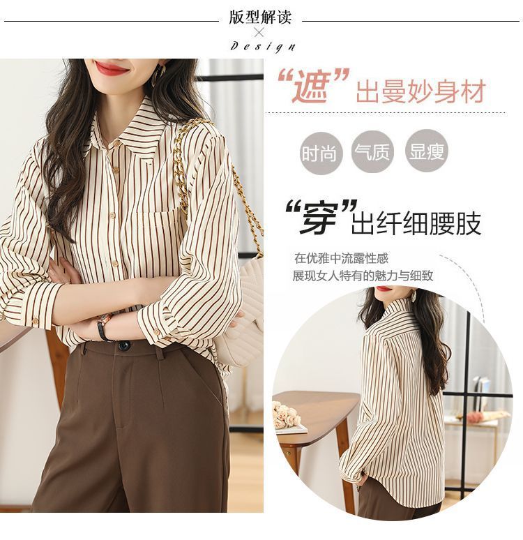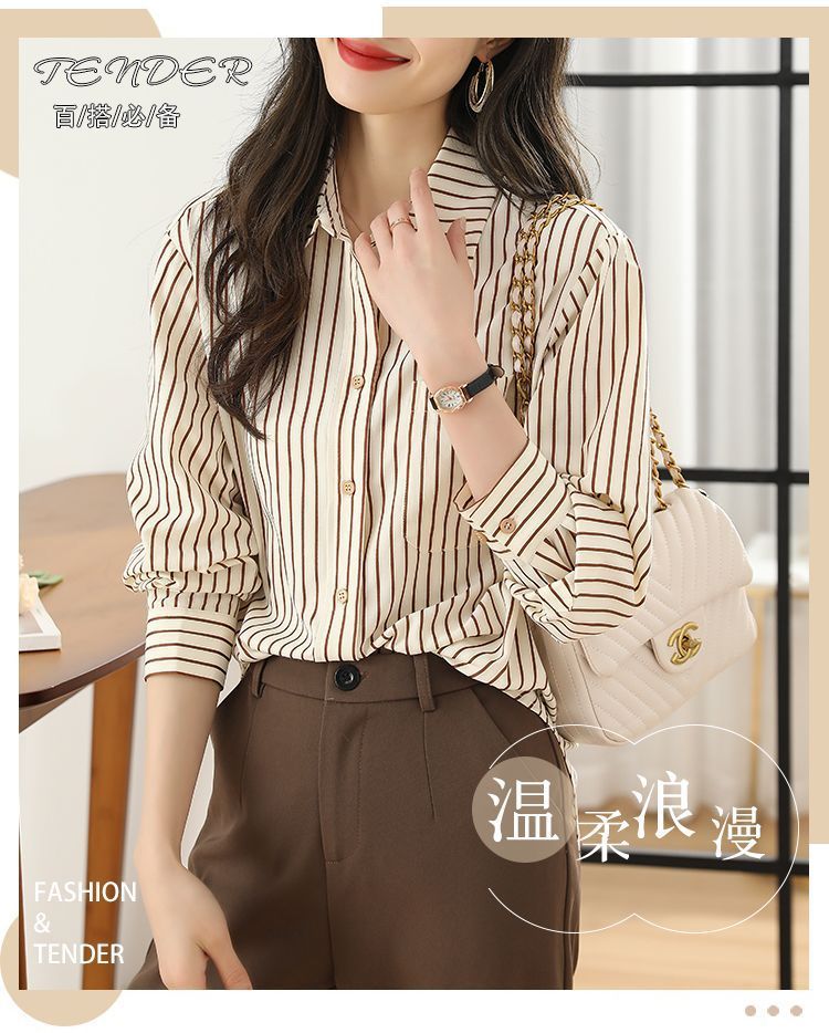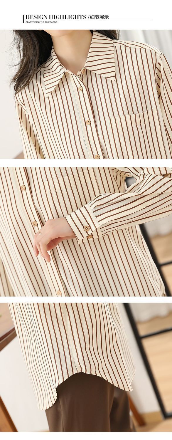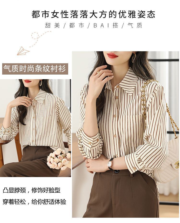 줄무늬 셔츠 여성의 봄과 가을 새로운 패션 캐주얼 한국 스타일 외부 셔츠 여성을위한 프랑스 하이 엔드 긴팔 탑스토어 가기