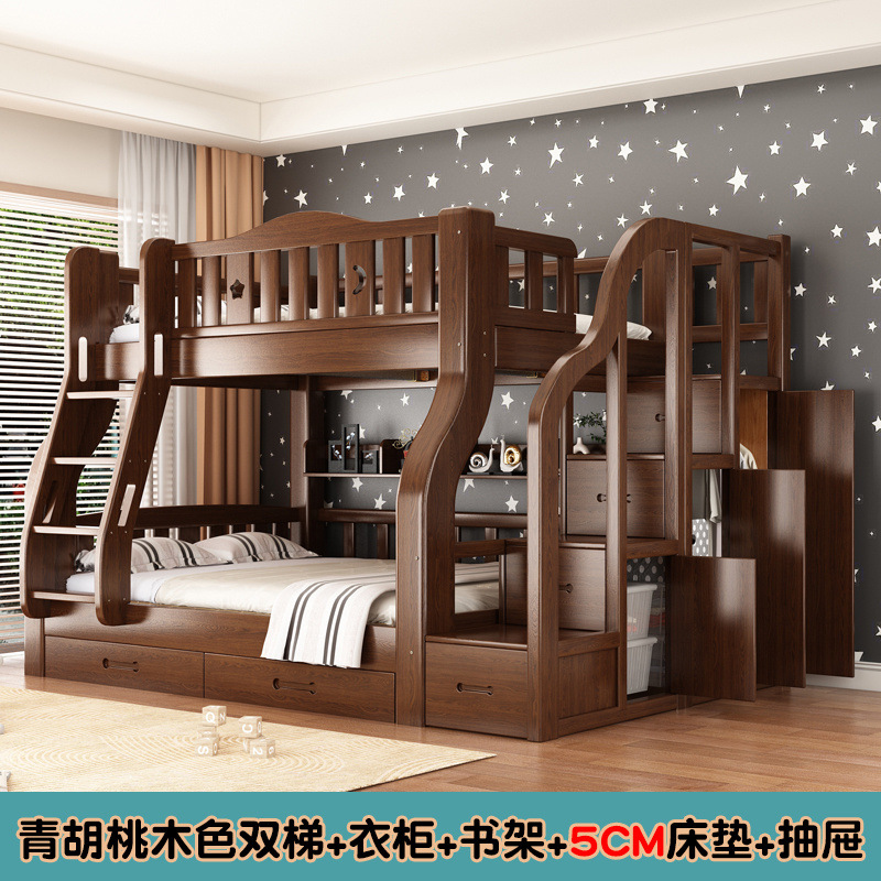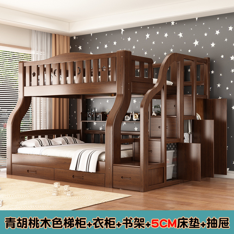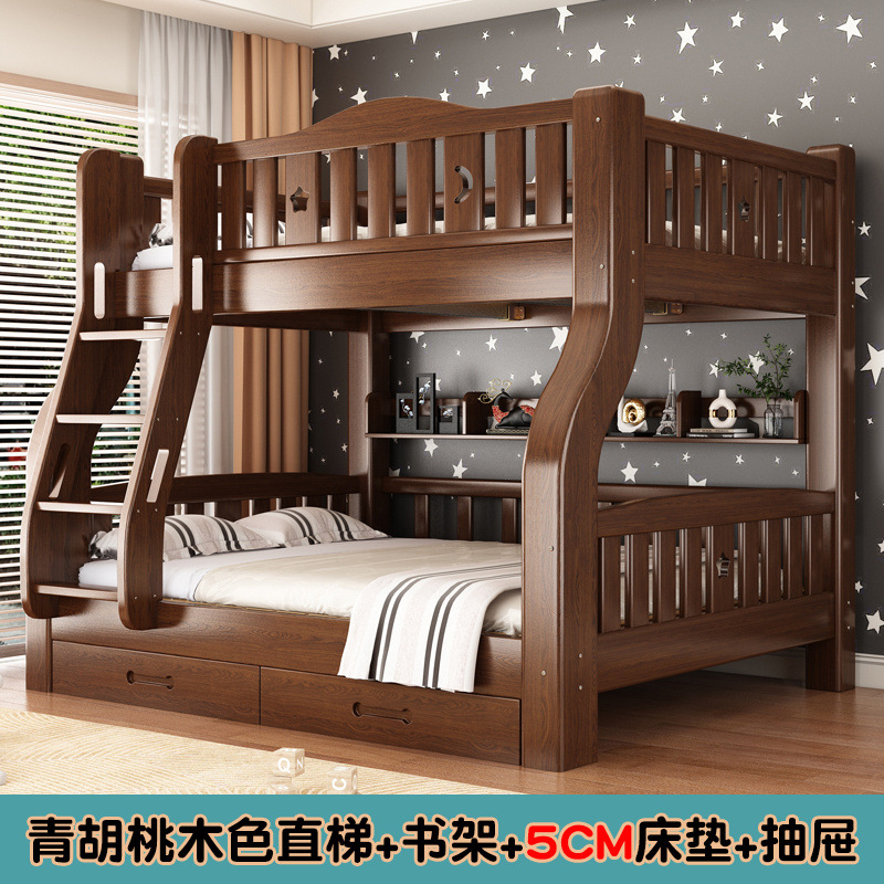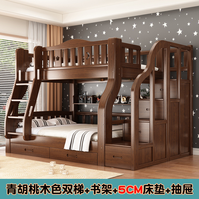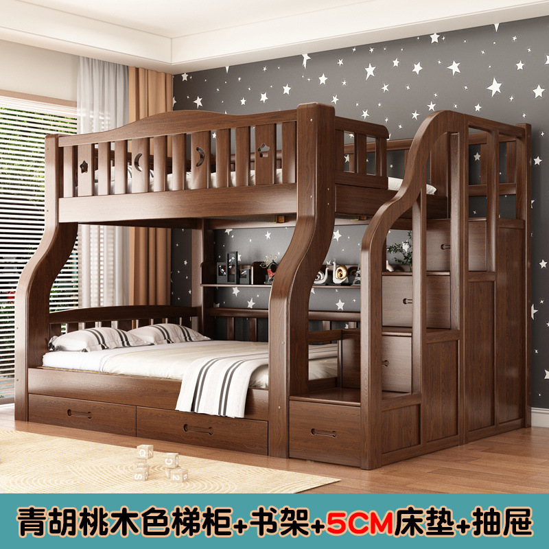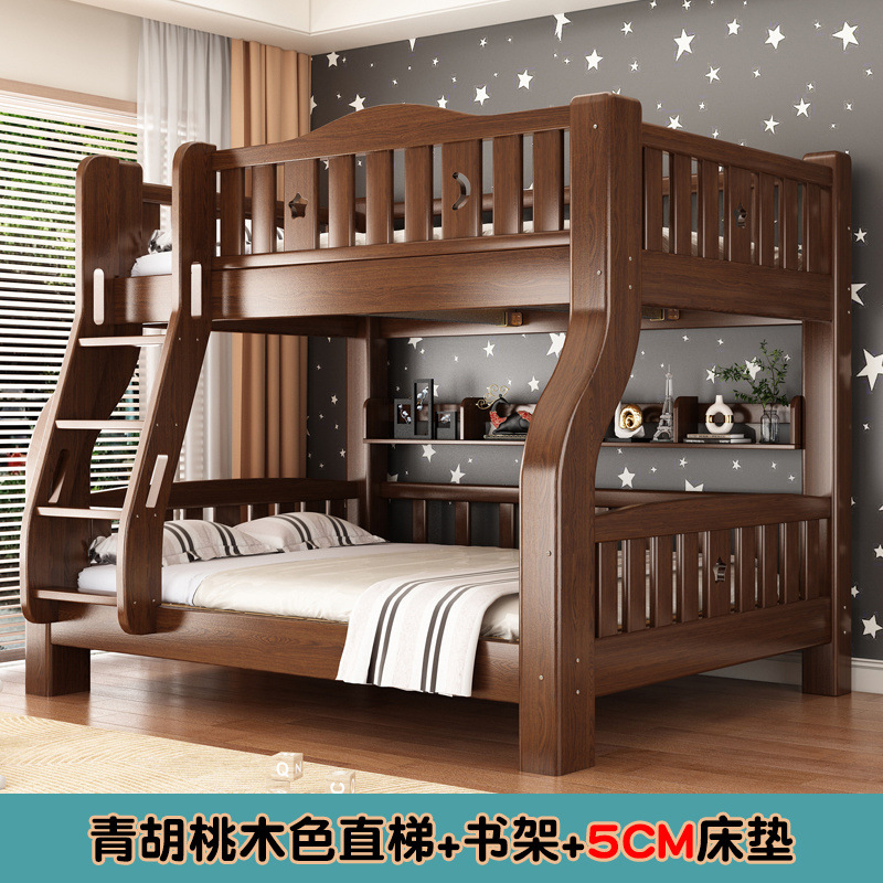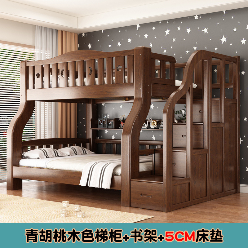 굵은 솔리드 우드 엄마와 아이 침대 높고 낮은 침대 벙크 침대 작은 아파트 2 층 침대 침대 침대 어린이 상단 및 다운 침대