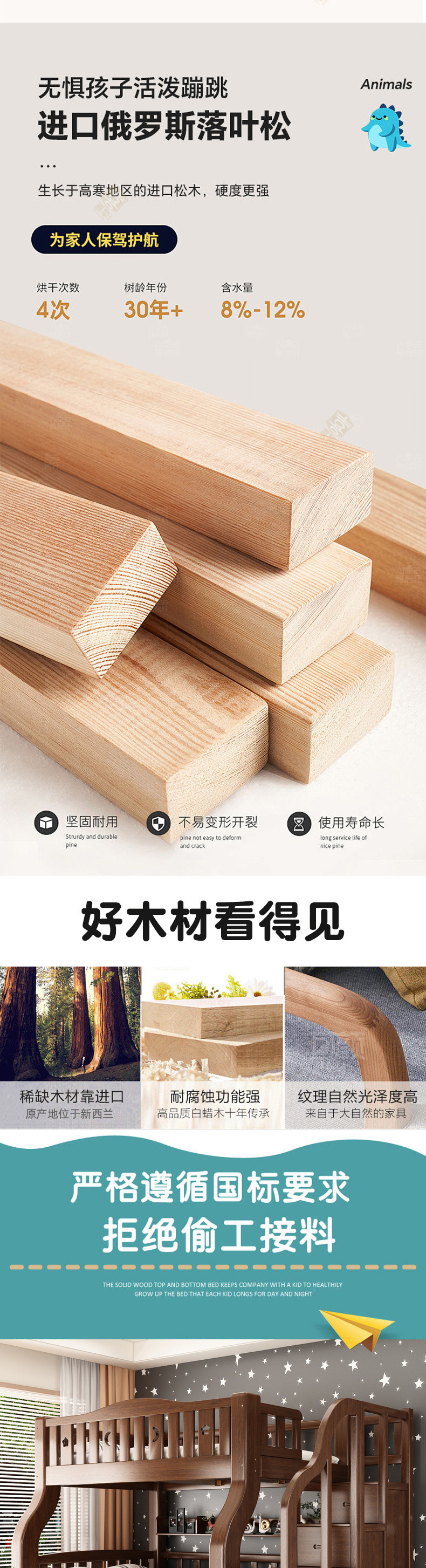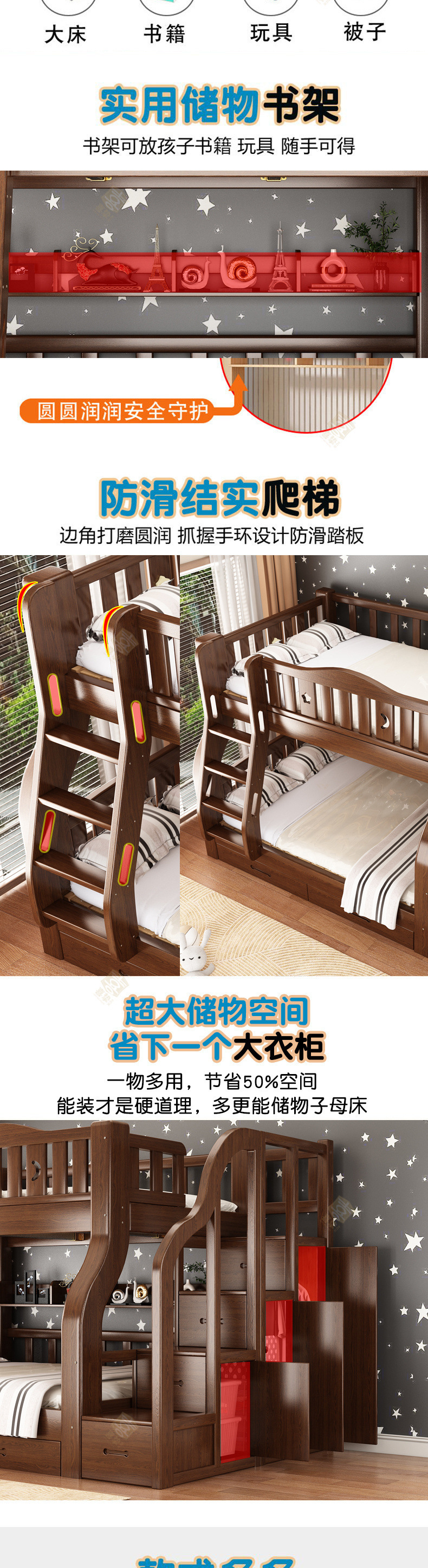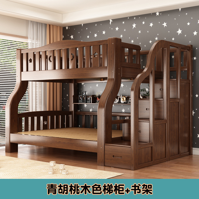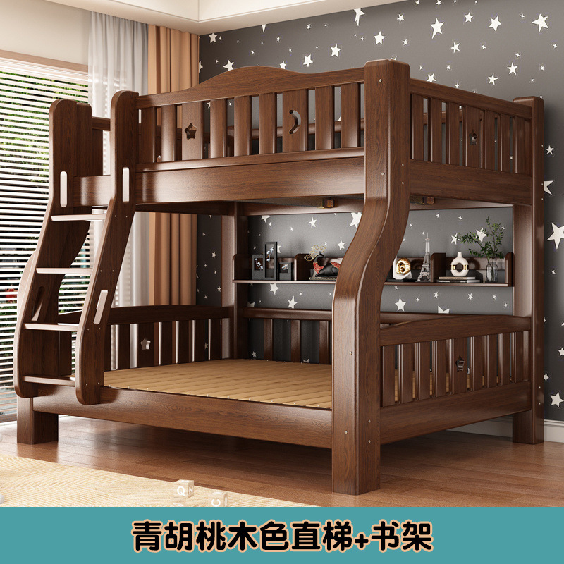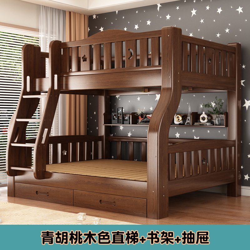 굵은 솔리드 우드 엄마와 아이 침대 높고 낮은 침대 벙크 침대 작은 아파트 2 층 침대 침대 침대 어린이 상단 및 다운 침대