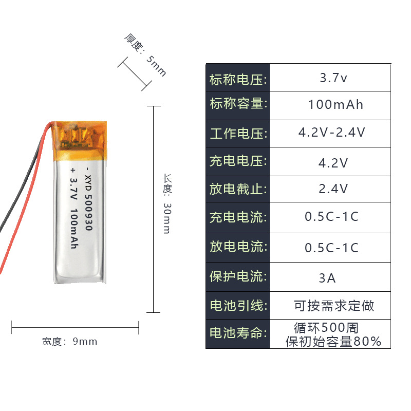 • 500930-100mAh 배터리 셀