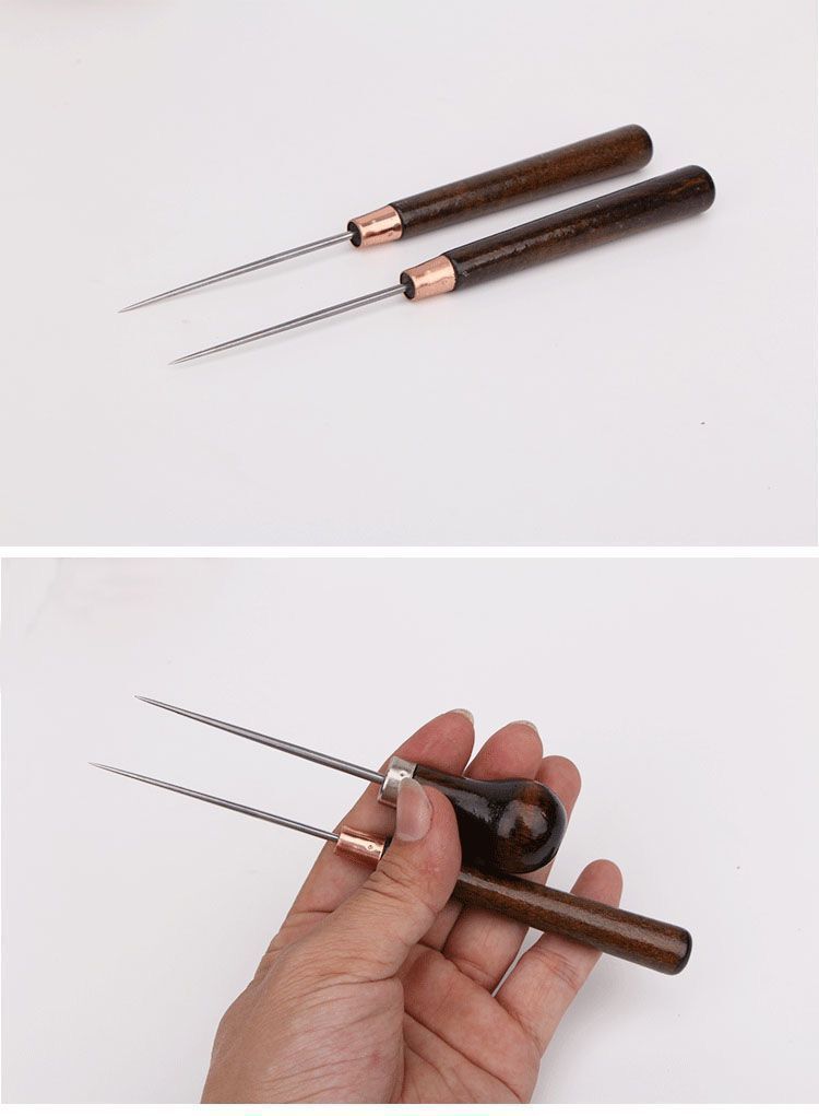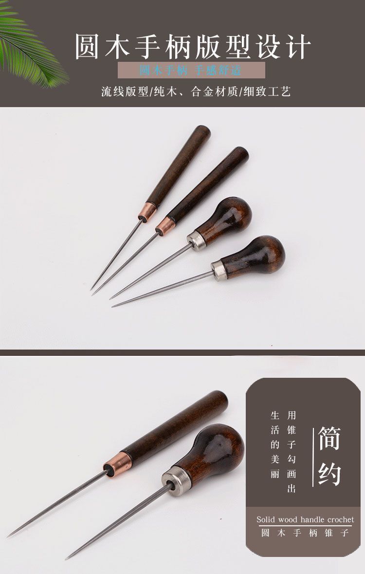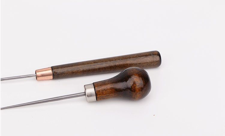 매우 긴 날카로운 날 송곳 스테인리스 스틸 바늘 나무 손잡이 송곳 수제 구식 바늘 콘 얇은 송곳 포지셔닝 드릴스토어 가기